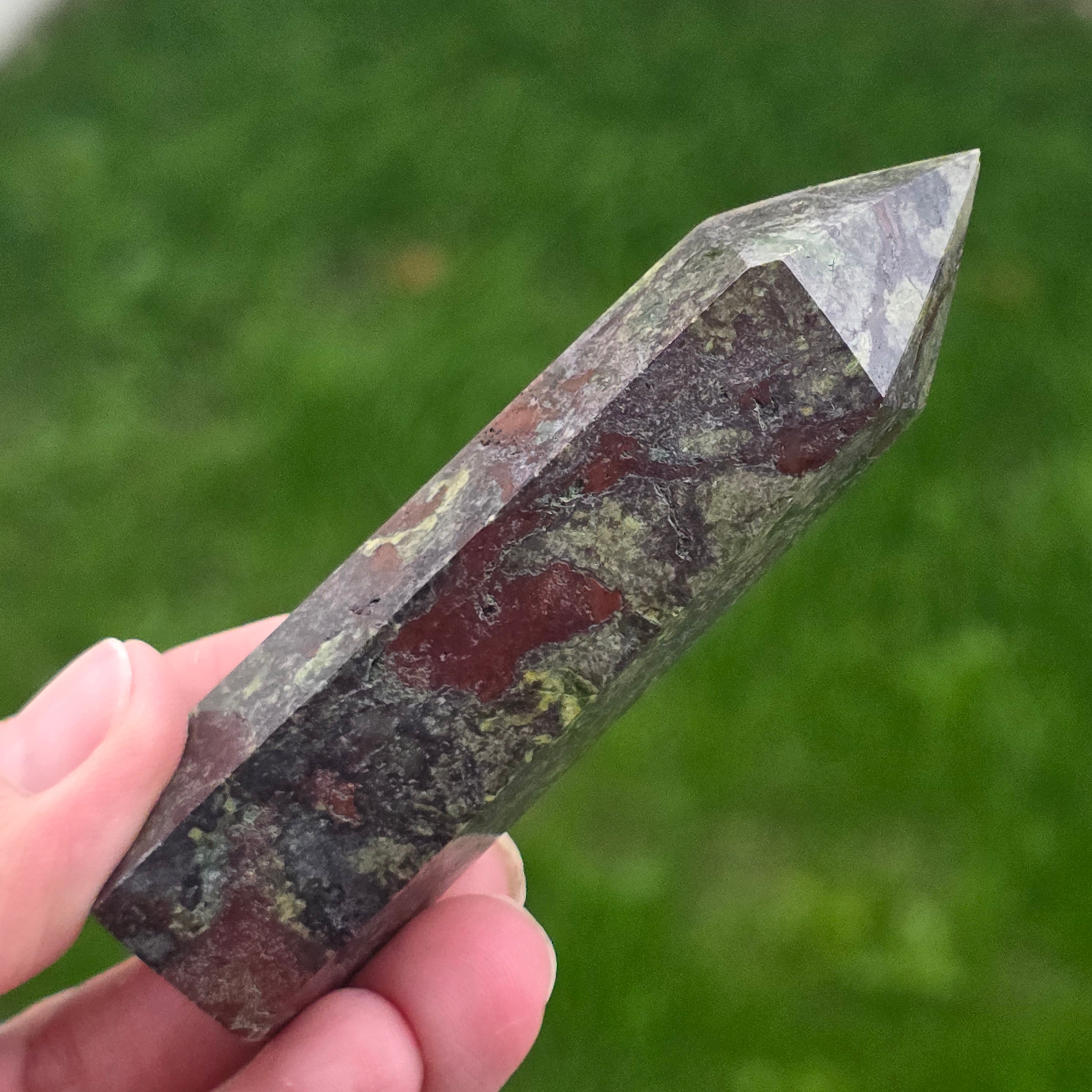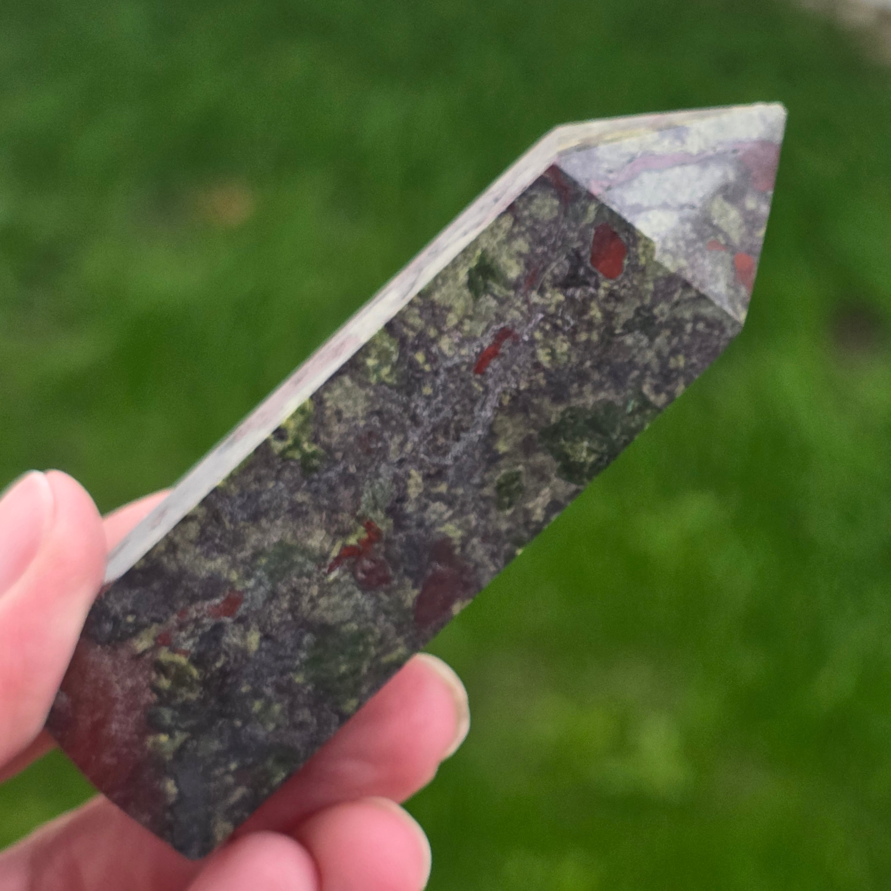 Obélisque mini pierre de sang de dragon (épidote & piémontite) m5
