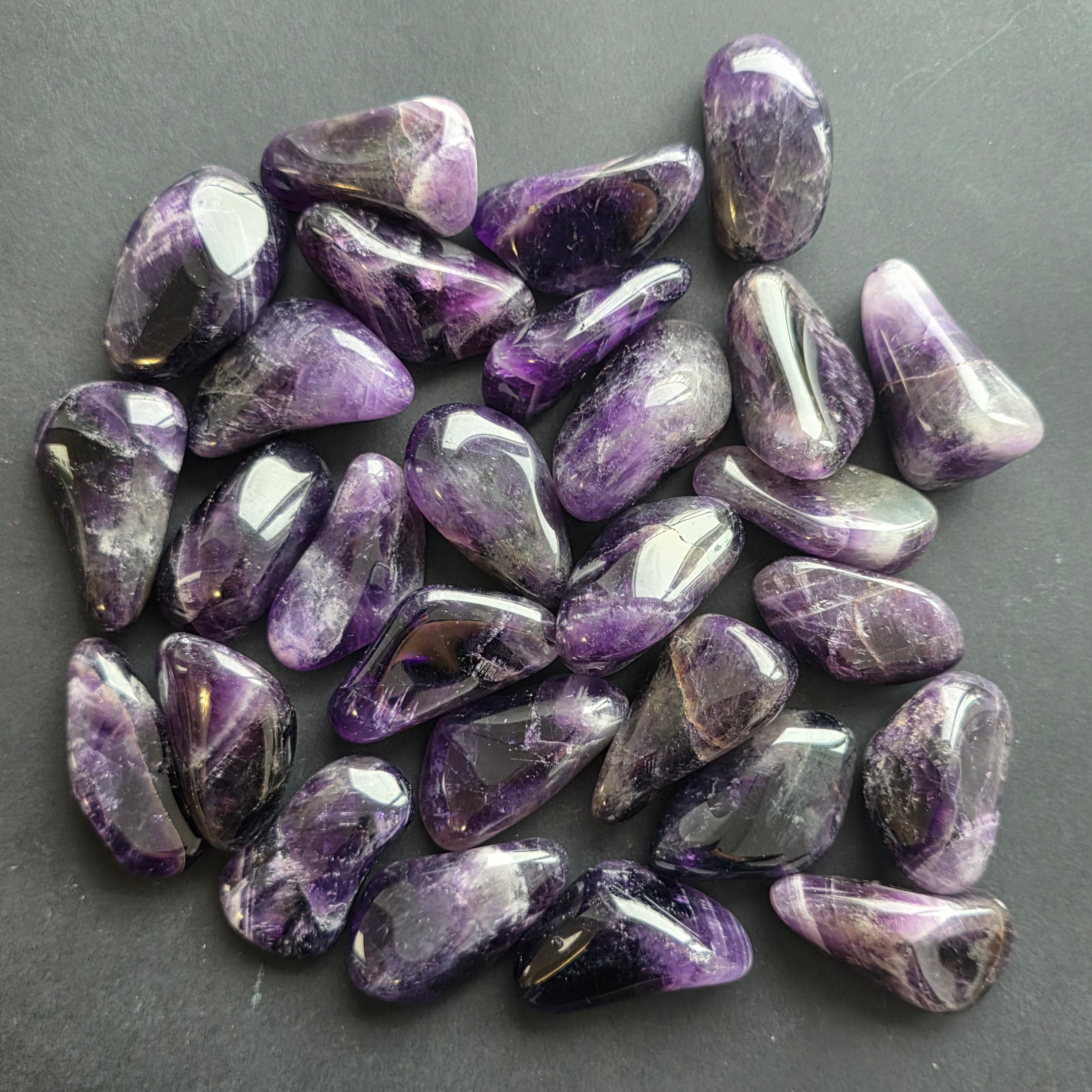 Mini pierre laminée d’Afrique améthyste foncée, tailles entre 2,5 et 4,5 cm. Le prix diffère en fonction de la taille de la pierre, veuillez sélectionner la taille souhaitée.
