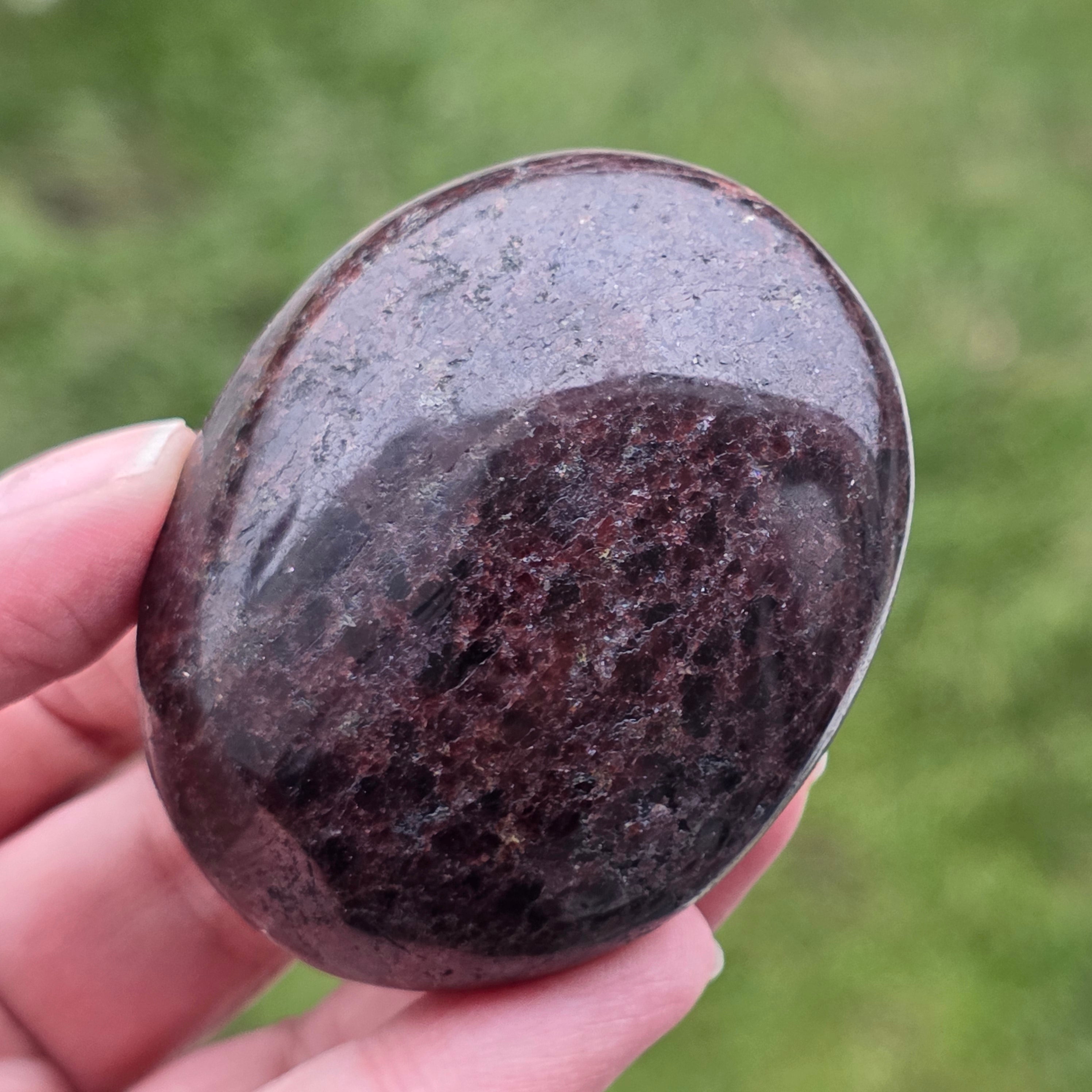 Cette palmstone en grenat naturel est parfaite pour la méditation, l'introspection ou simplement pour la garder près de vous dans les moments où vous avez besoin d'ancrage et de stabilité. Son énergie profonde résonne avec le chakra racine, apportant vitalité et protection.