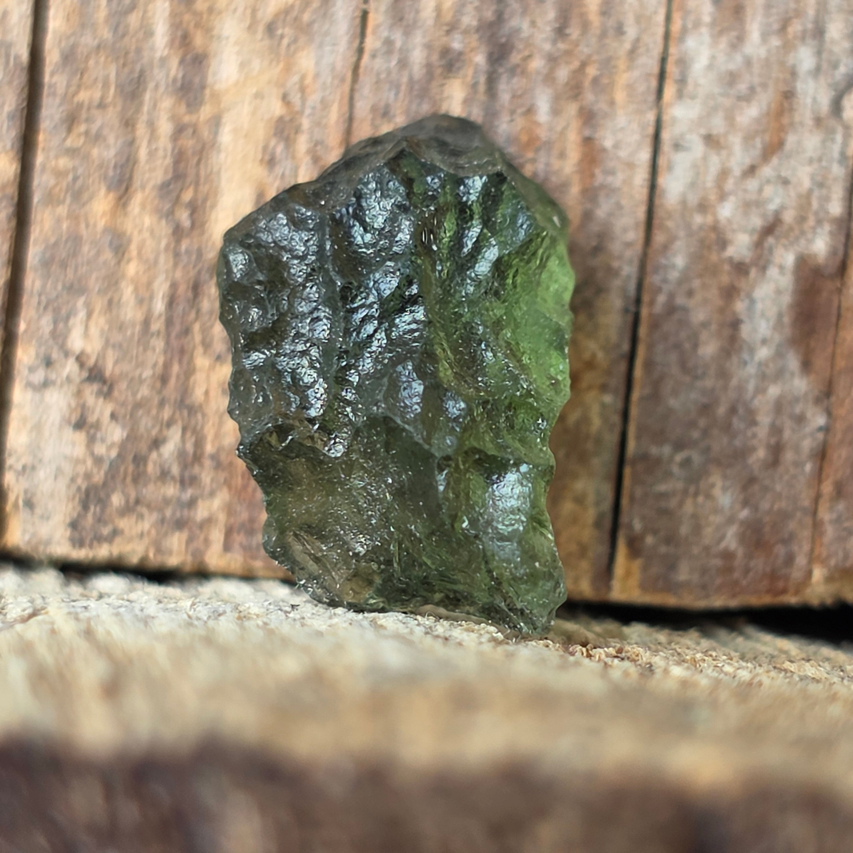 Moldavie est une pierre née de la fusion de la Terre avec le ciel, formée il y a 15 millions d'années par l'impact d'une météorite en Bohême. Son vert translucide et ses formes sculptées par le feu cosmique en font non seulement un cristal rare, mais une véritable relique stellaire.