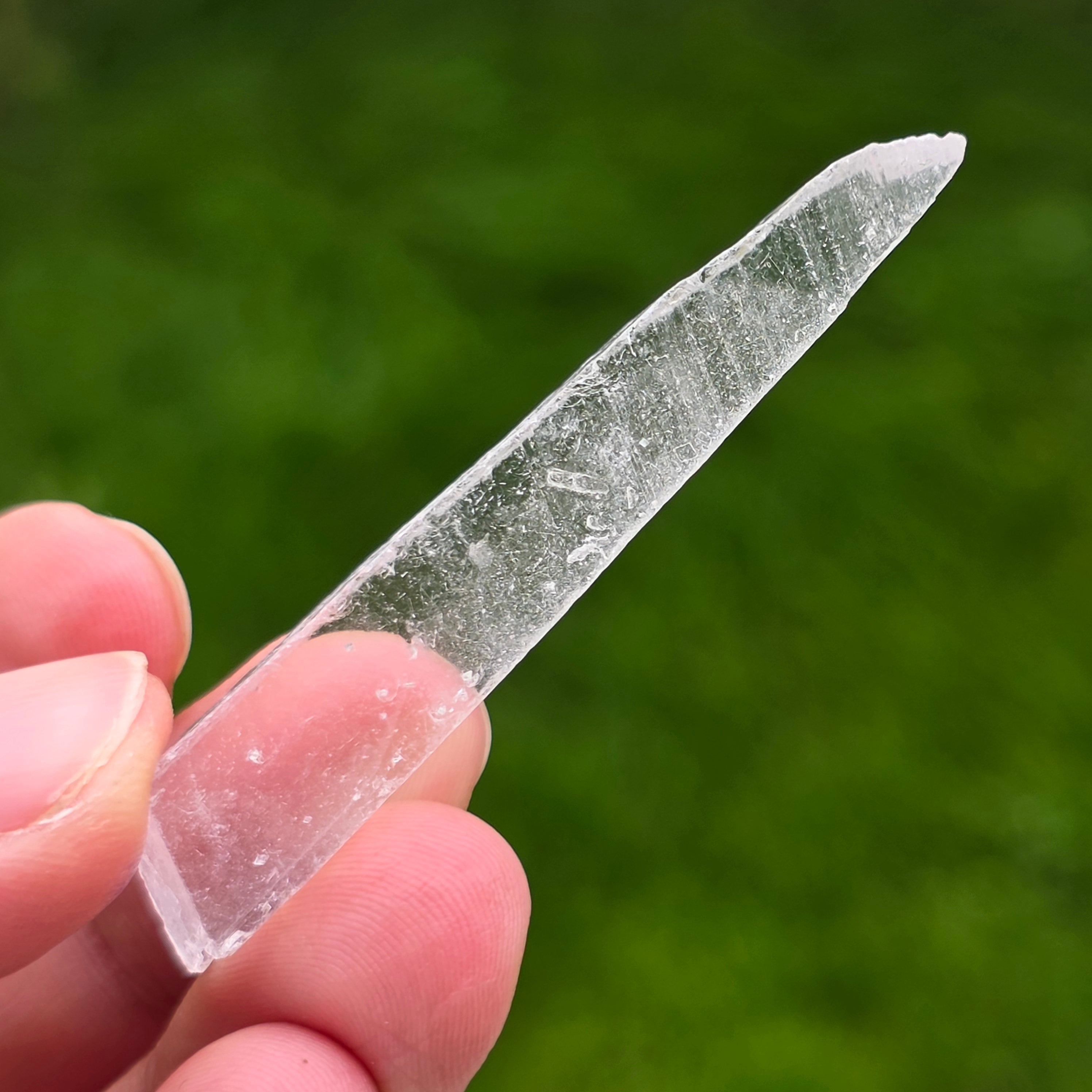 Cristalele se prezintă sub formă prismatică, subțire, cu terminații clare, având o transparență ridicată și un luciu discret, aproape sticlos. Forma lor alungită și modul de creștere conferă fiecărui exemplar un caracter aerat, fragil vizual, dar bine definit mineralogic. Aspectul curat și uniform face ca aceste piese să fie extrem de apreciate în vitrinele de colecție.