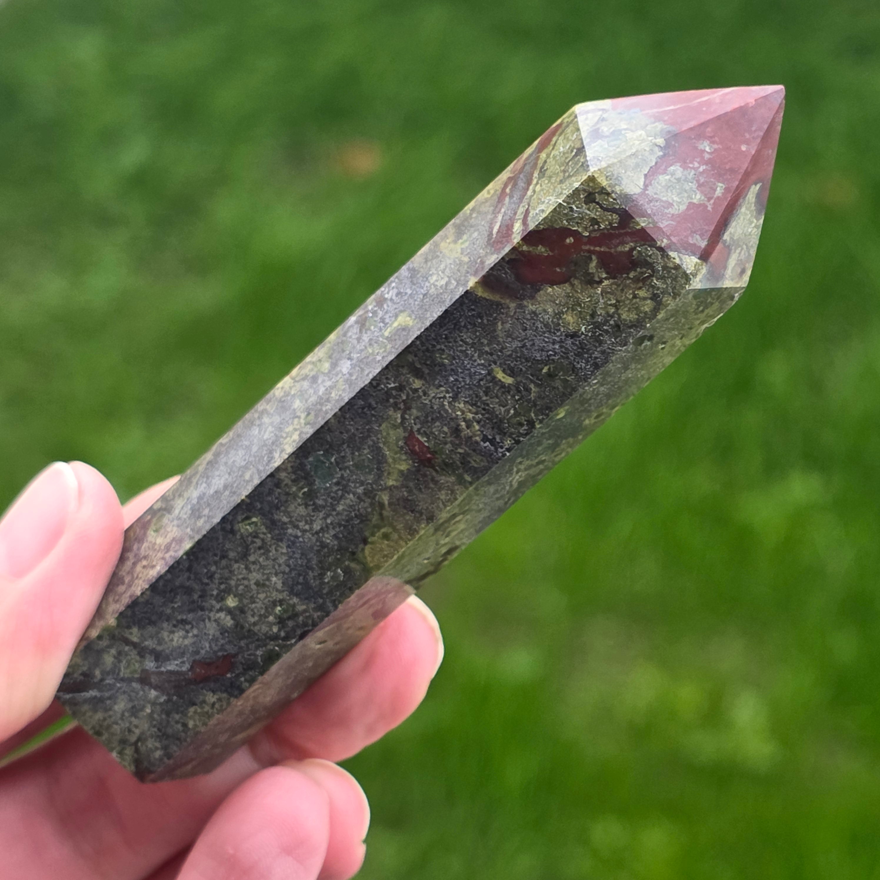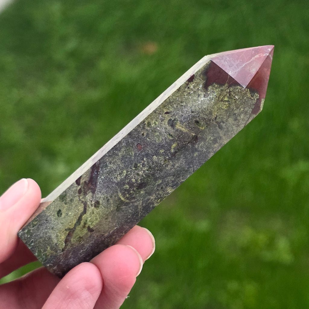 Obelisc mini piatra sangele dragonului (epidot&piedmontit) | Model 12