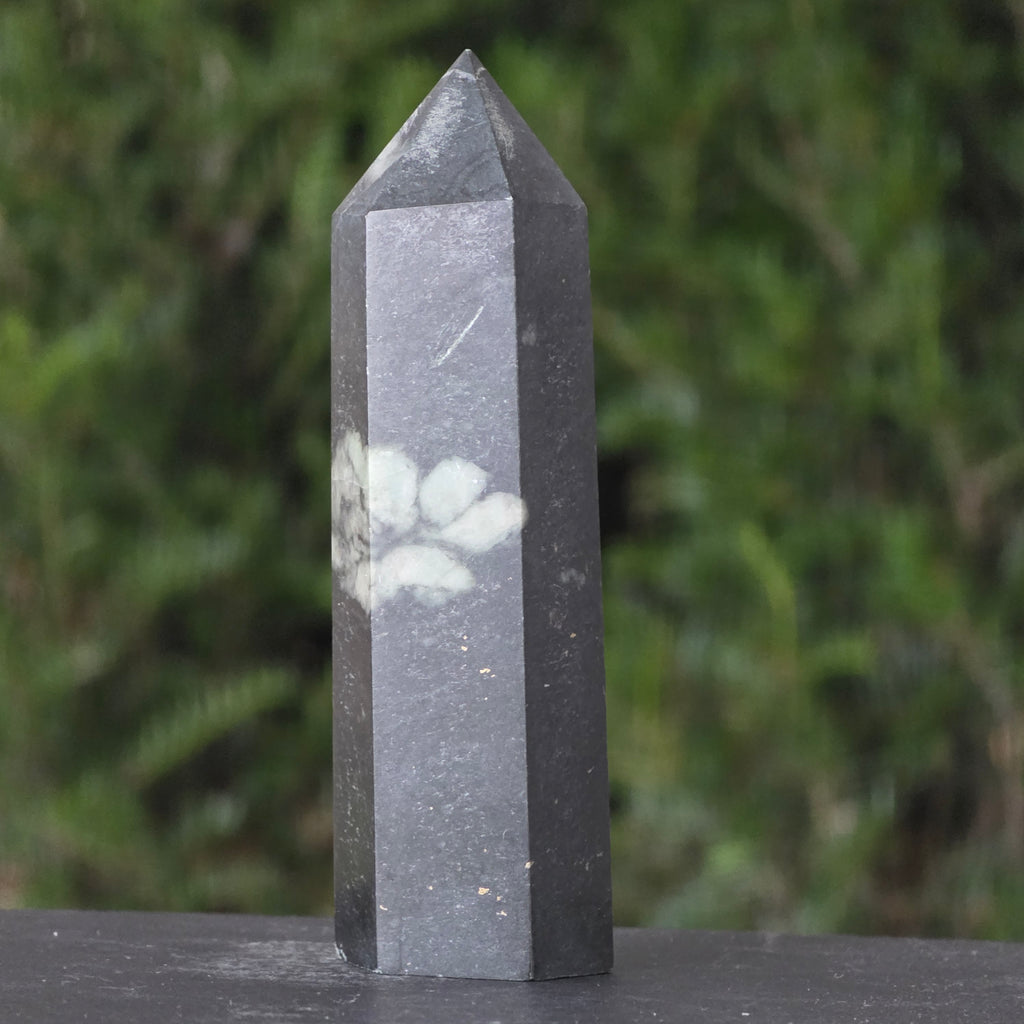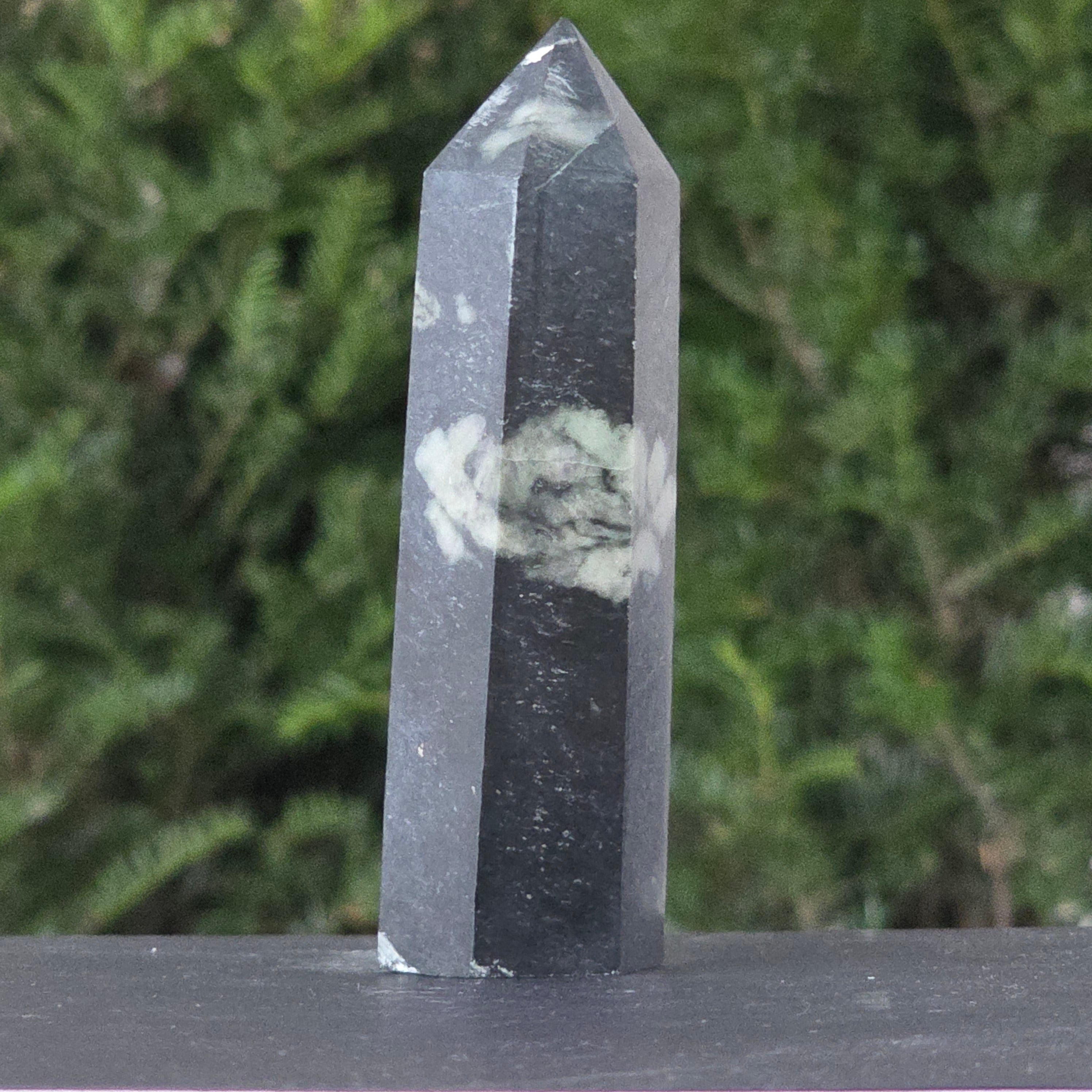 Forma de obelisc, simbol al ascensiunii spirituale, amplifică energia pietrei și o direcționează către claritate, curaj și împlinire.