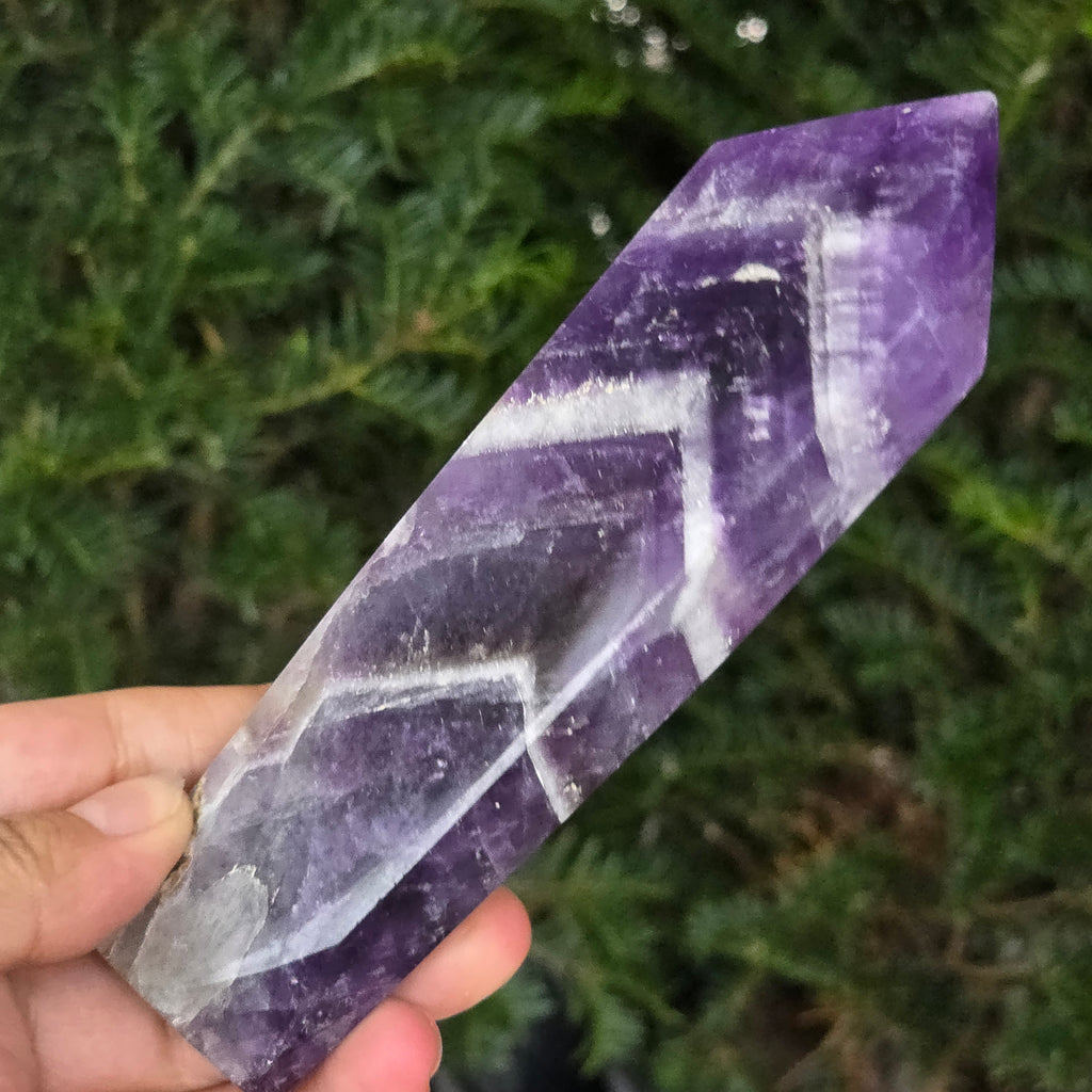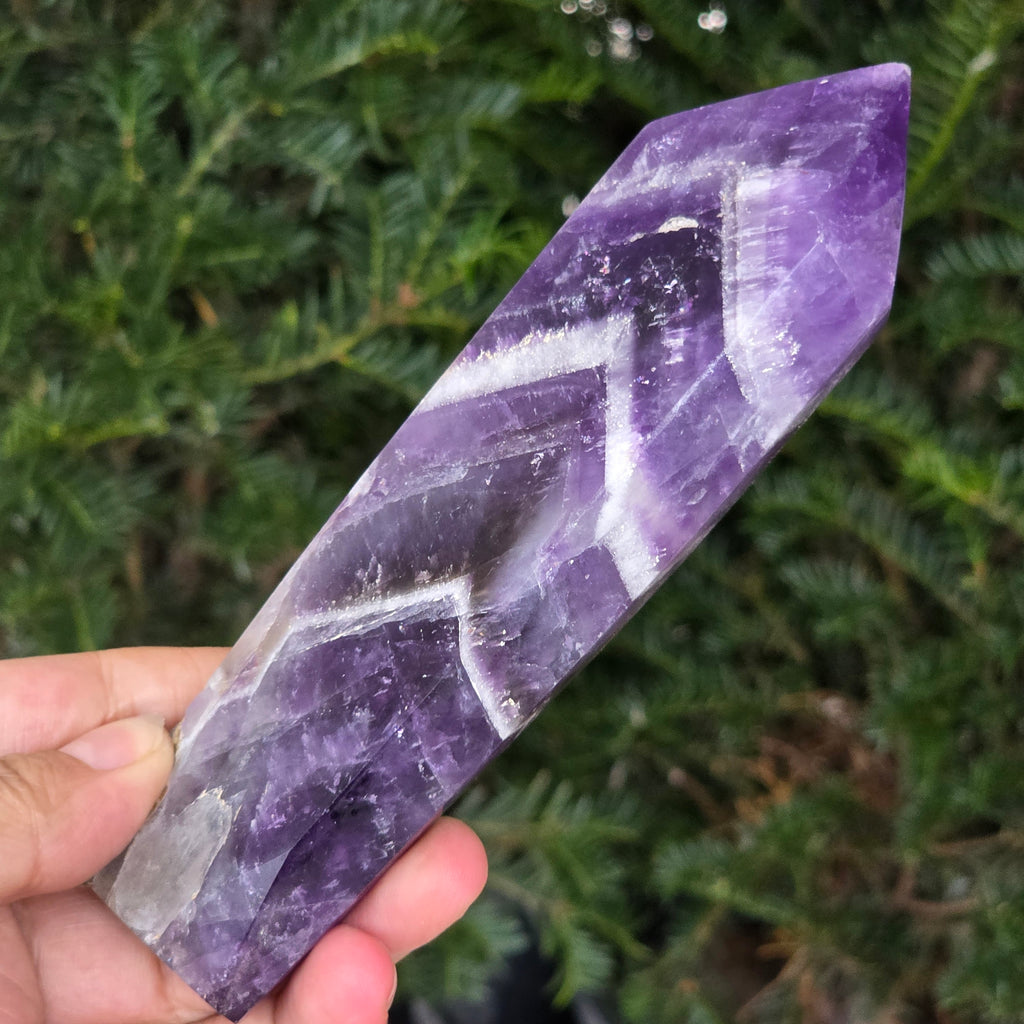 L'améthyste Chevron est connue pour ses associations avec les chakras de la couronne et du troisième œil, augmentant l'intuition et la capacité de prendre des décisions.