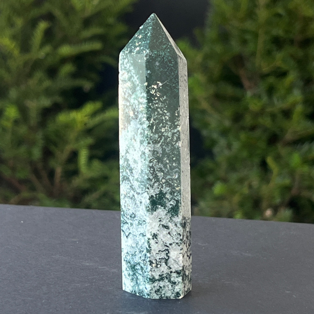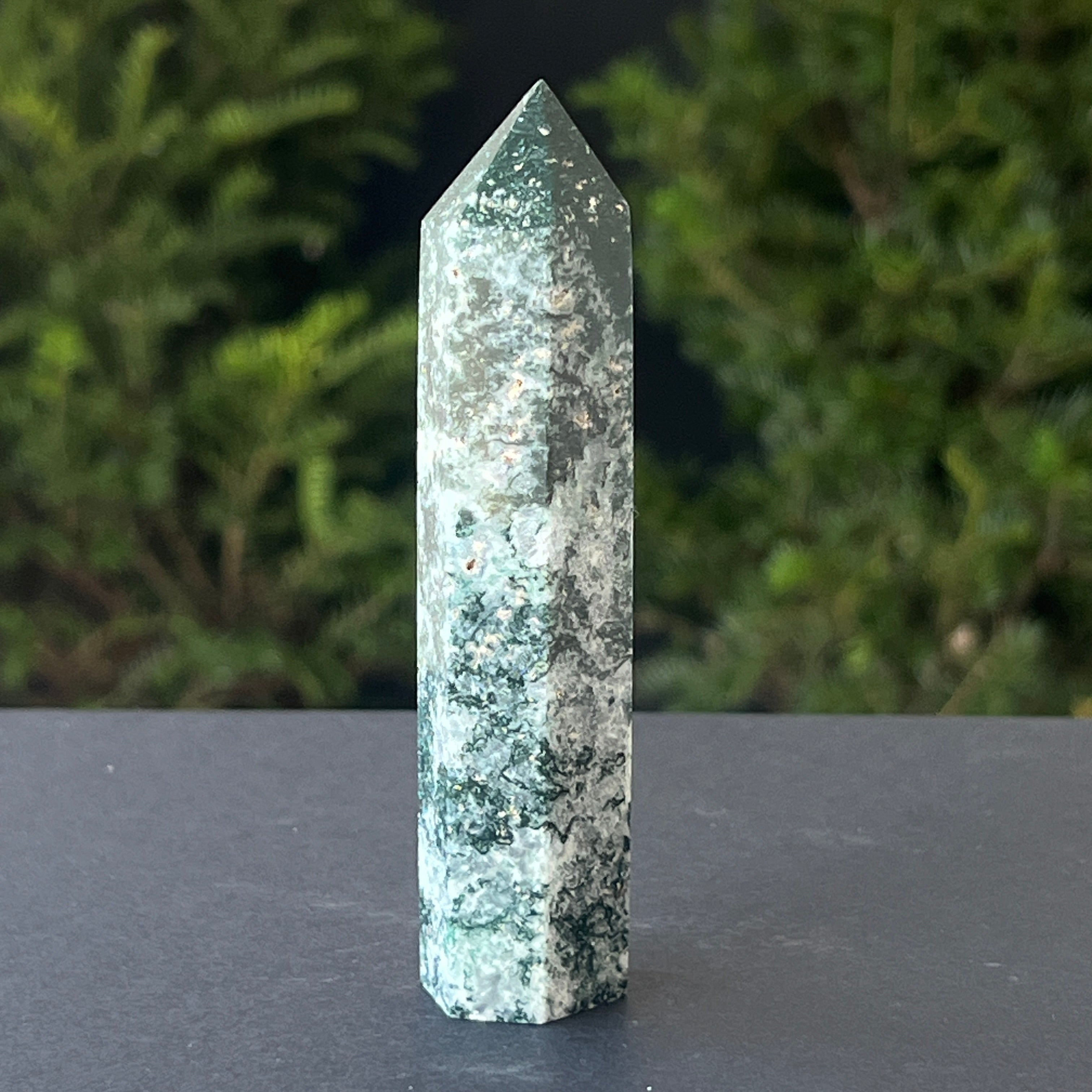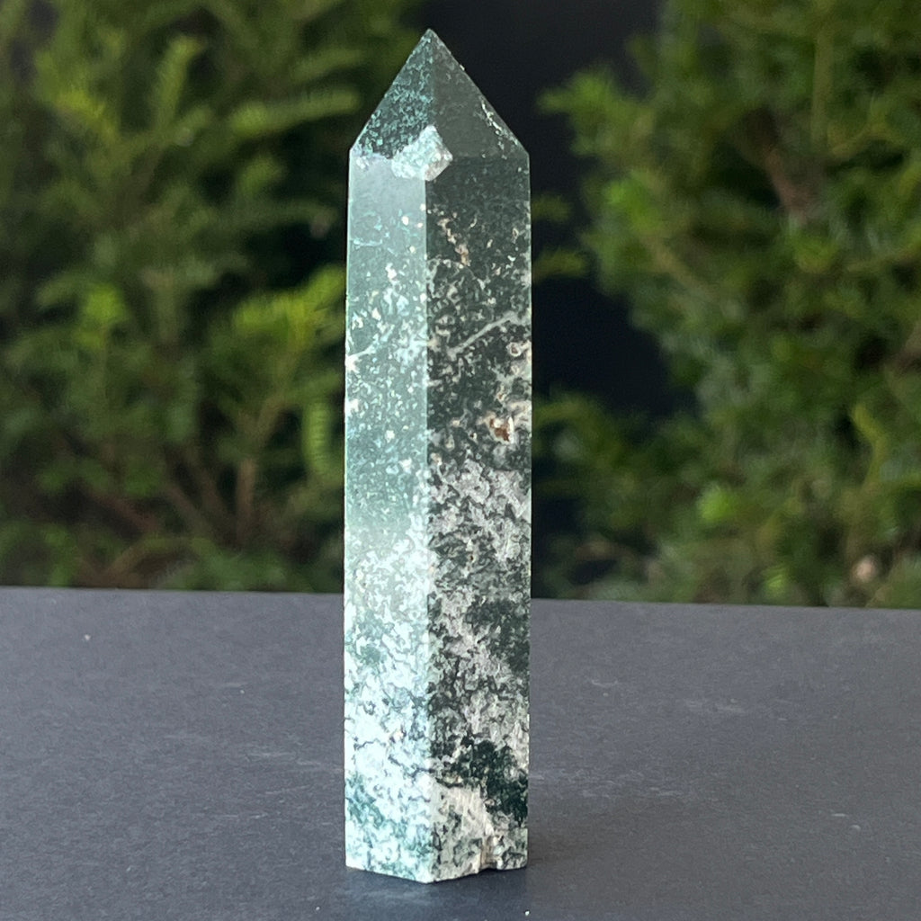 Obélisque d’agate mousse modèle 1, Taille : 8.8 * 2.5 * 2,1 cm