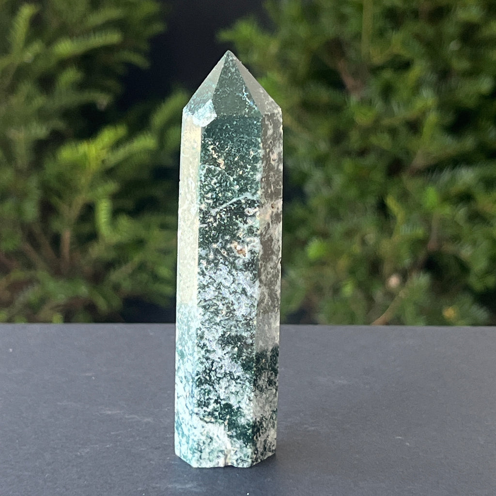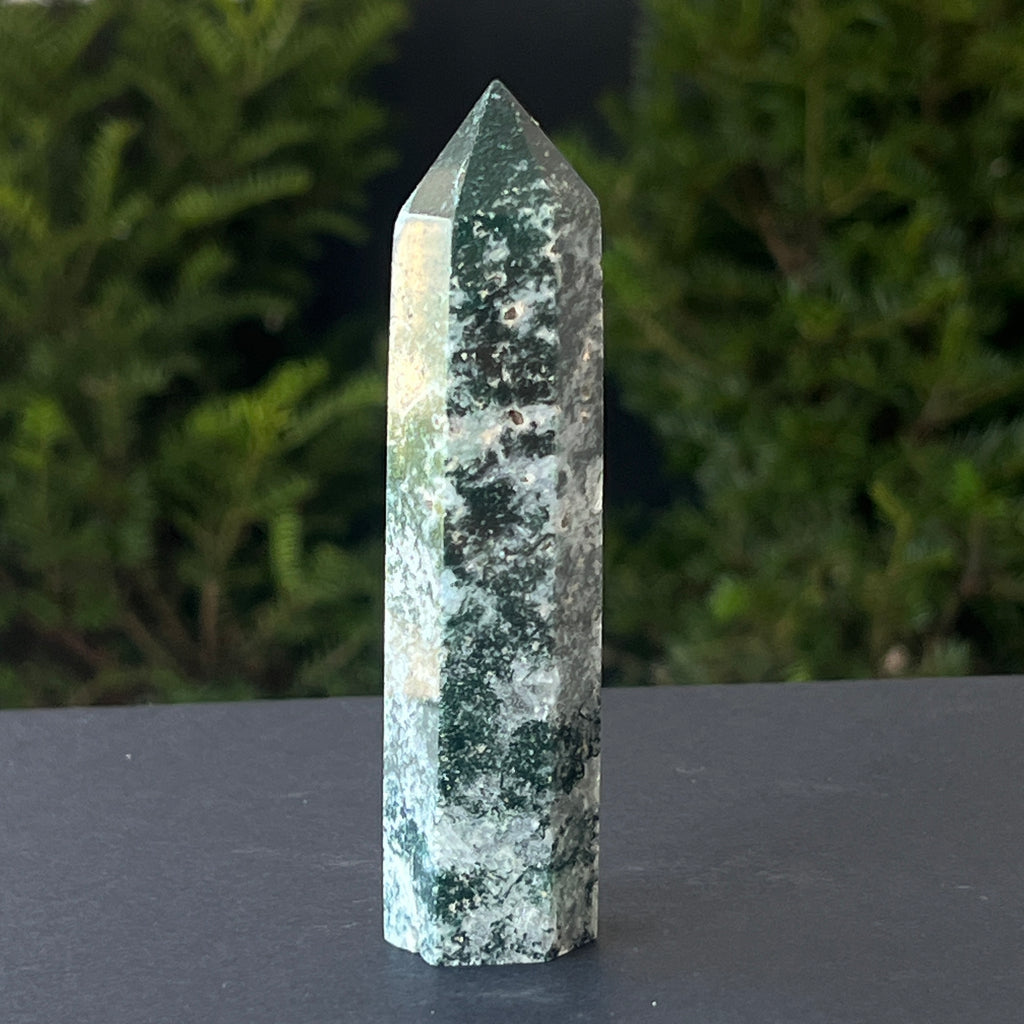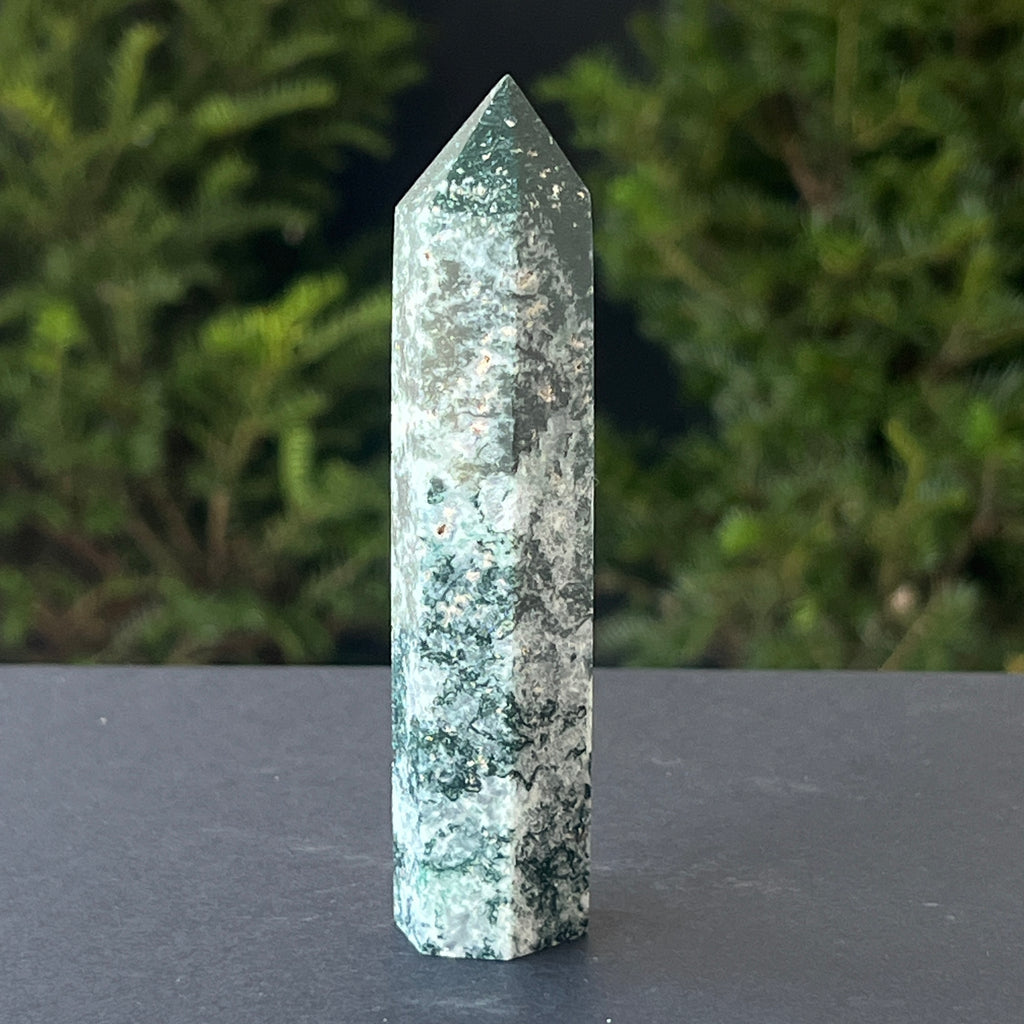 Obélisque d’agate mousse modèle 1, Taille : 8.8 * 2.5 * 2,1 cm