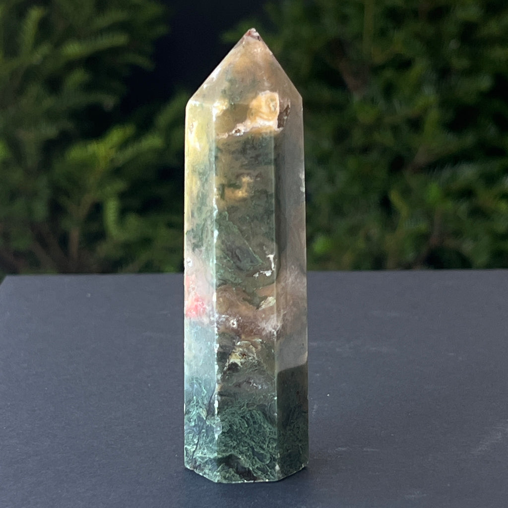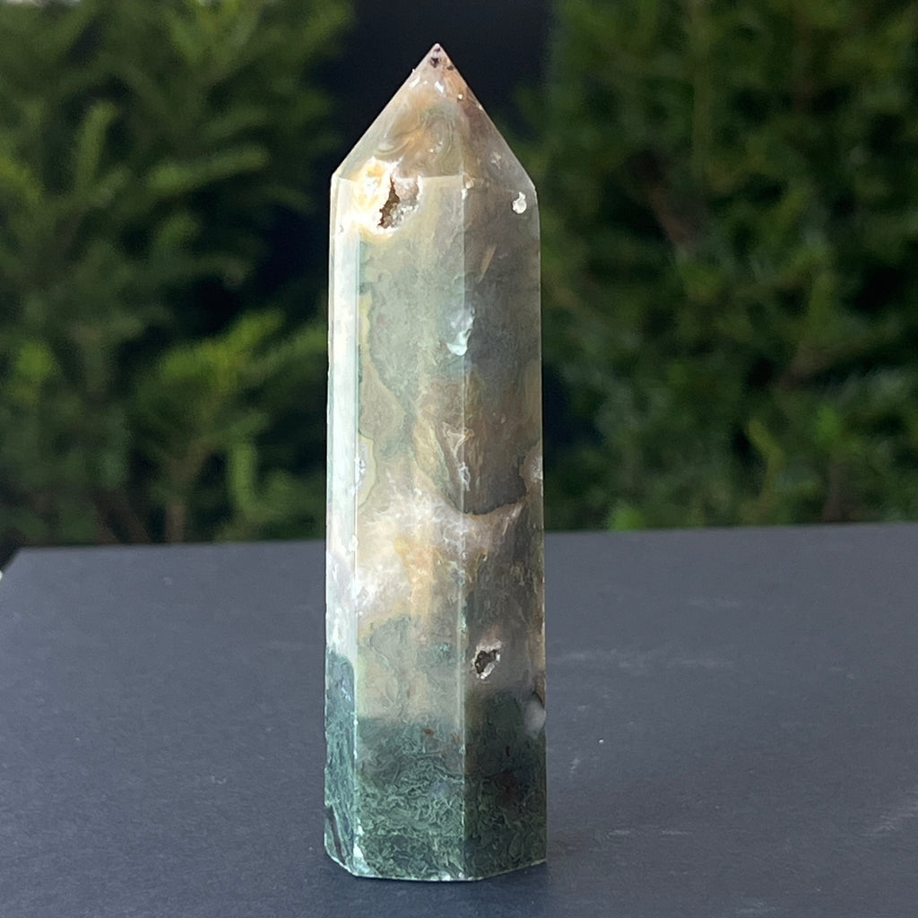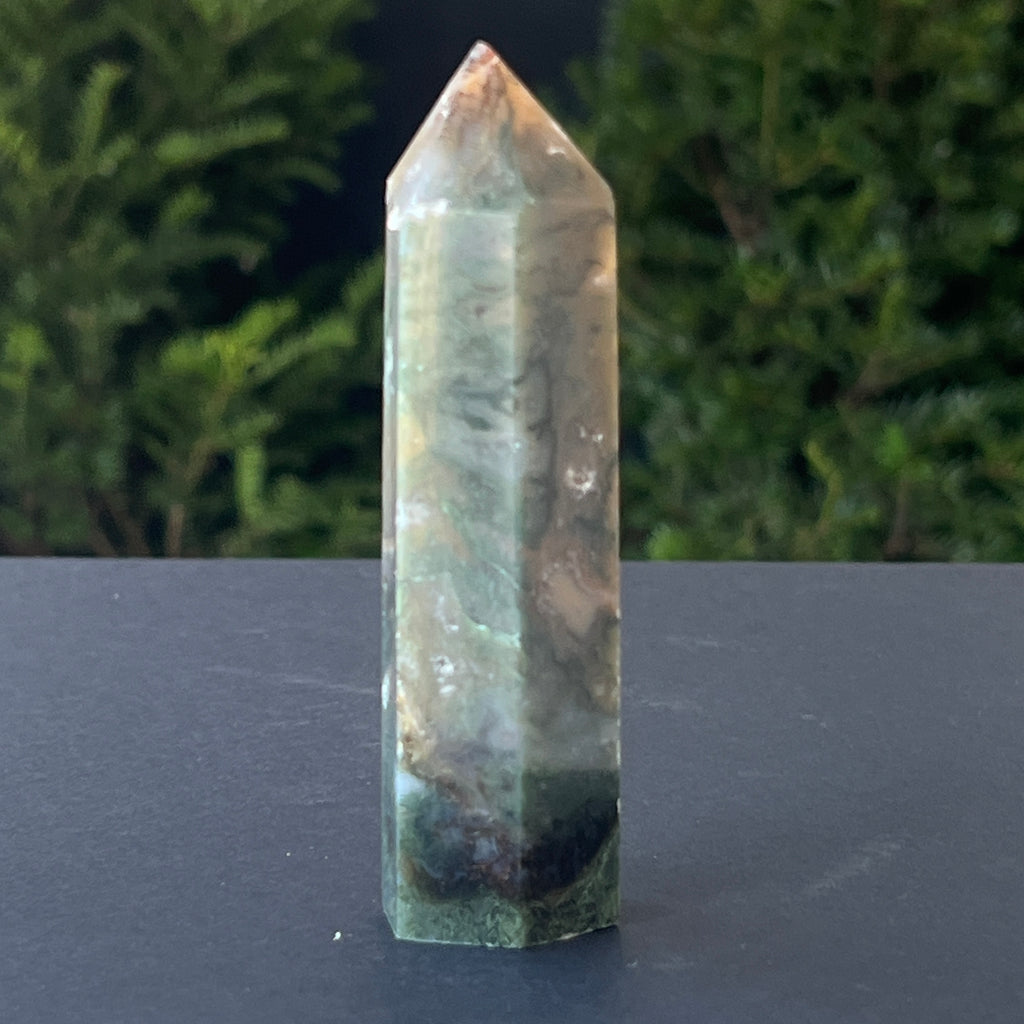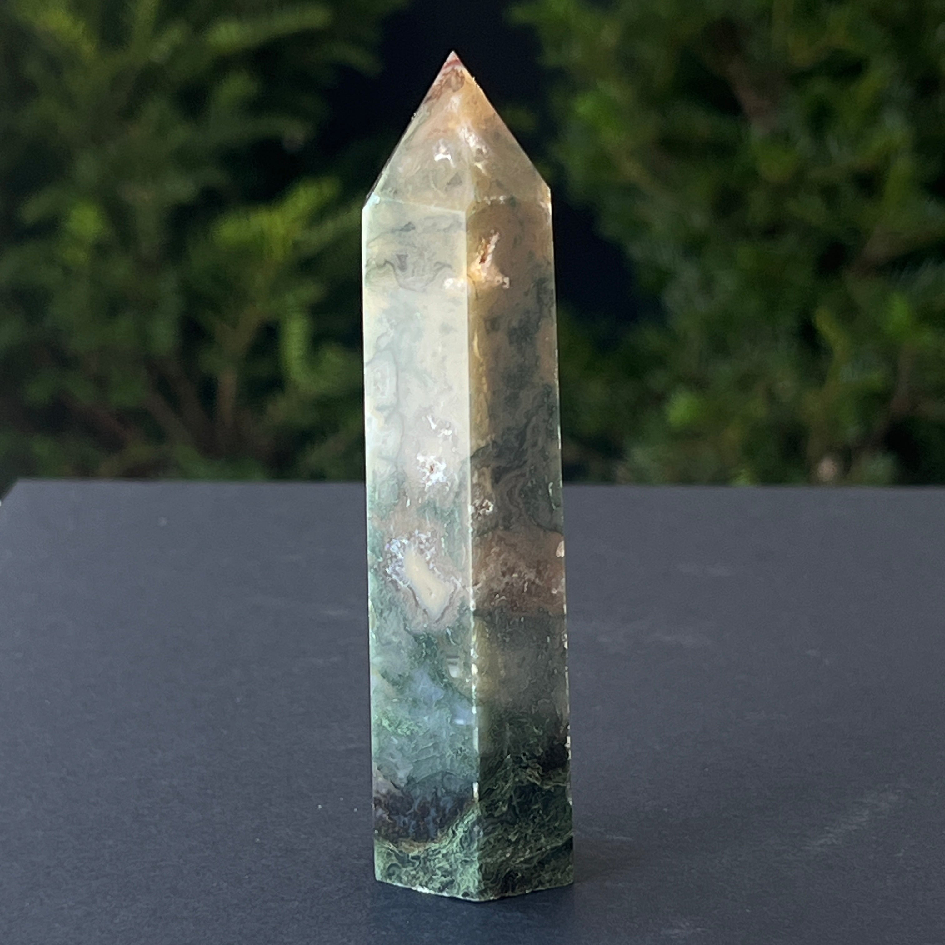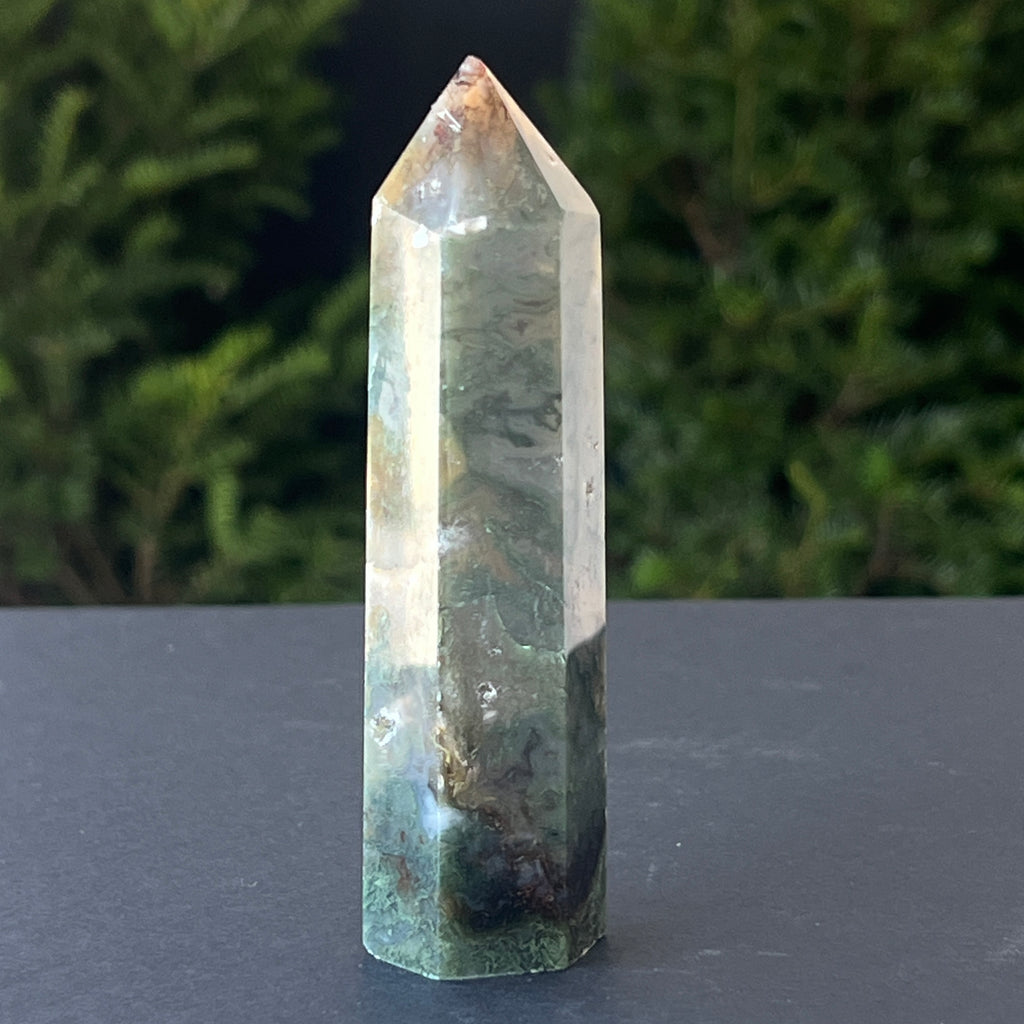 Obélisque Agate Mousse Modèle 2, Taille : 7.4 * 2 * 1.7cm