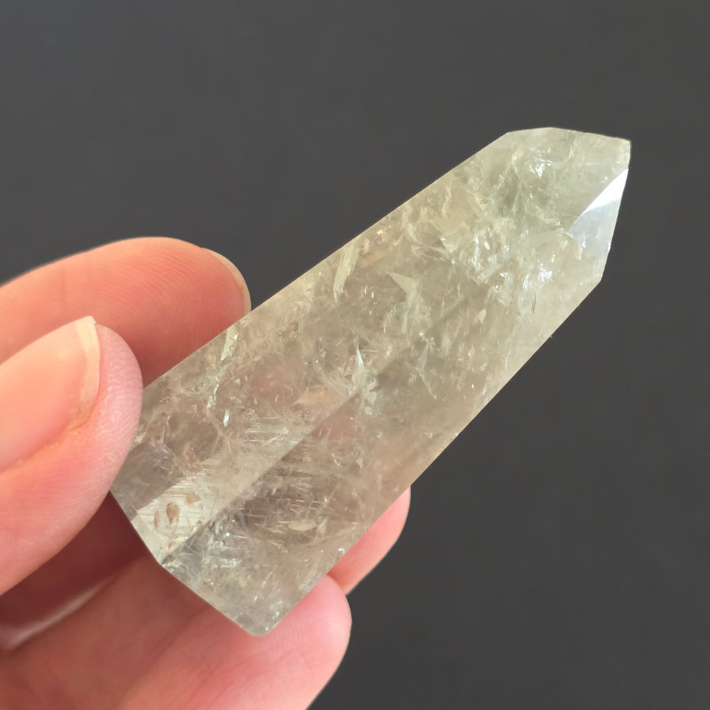 Obélisque d’améthyste verte (Prasiolite) Modèle 4, Taille : 5 * 1,8 * 1,8 cm