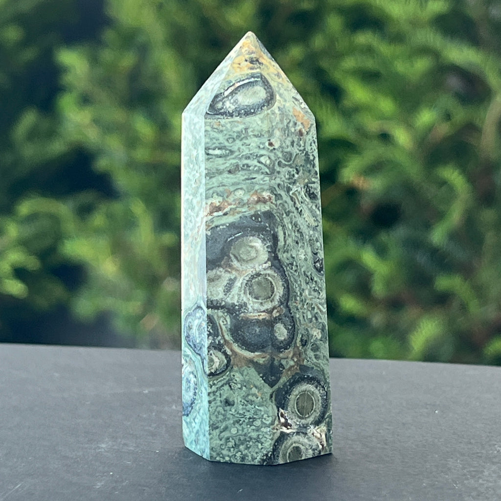Le jaspe de Kambaba, également connu sous le nom de jaspe Kambala, est une variété de jaspe d’origine volcanique. Il est composé d’une combinaison de cristaux verts et noirs, créant un motif magnifique et distinctif. Il porte le nom de la région de Kambaba à Madagascar, où on le trouve communément.