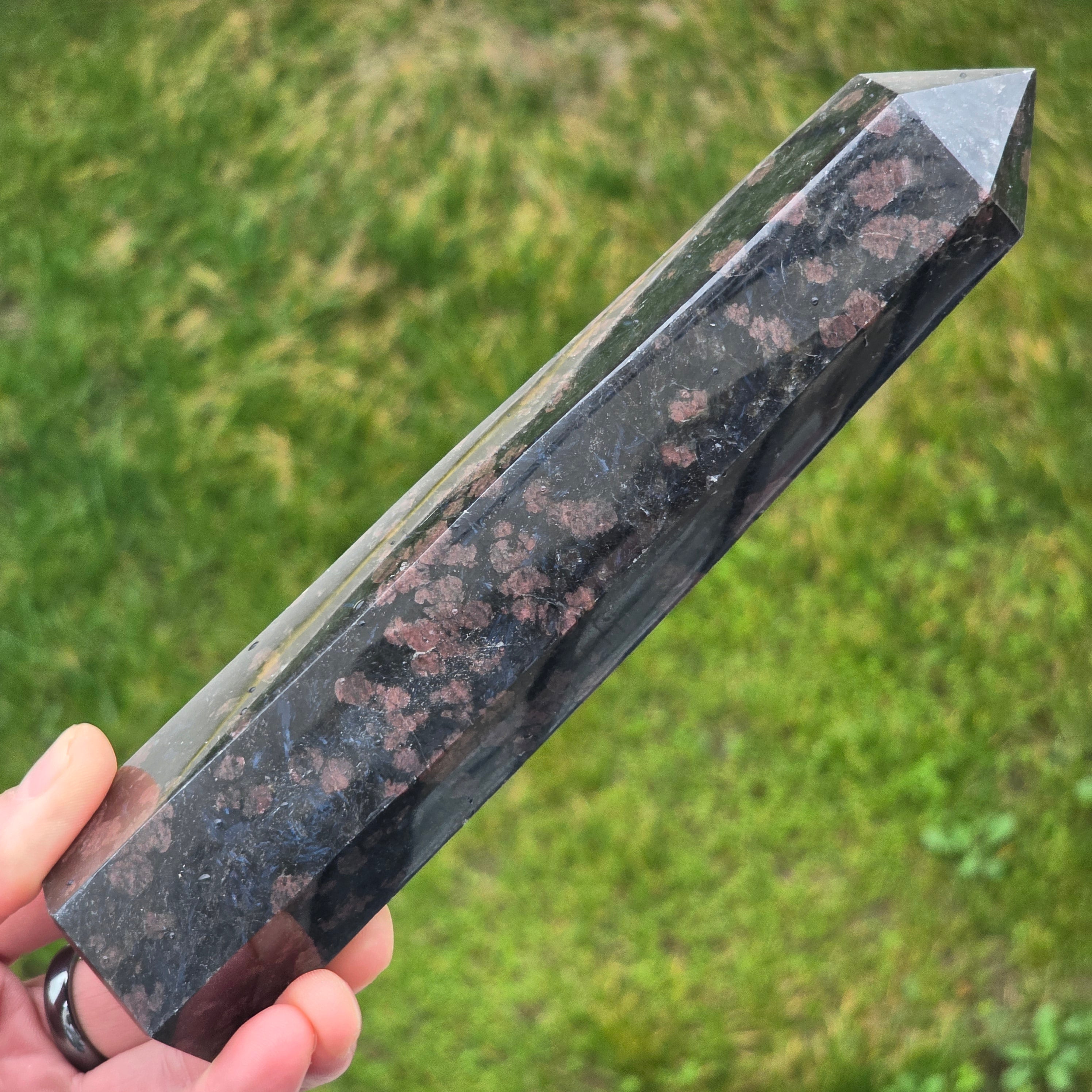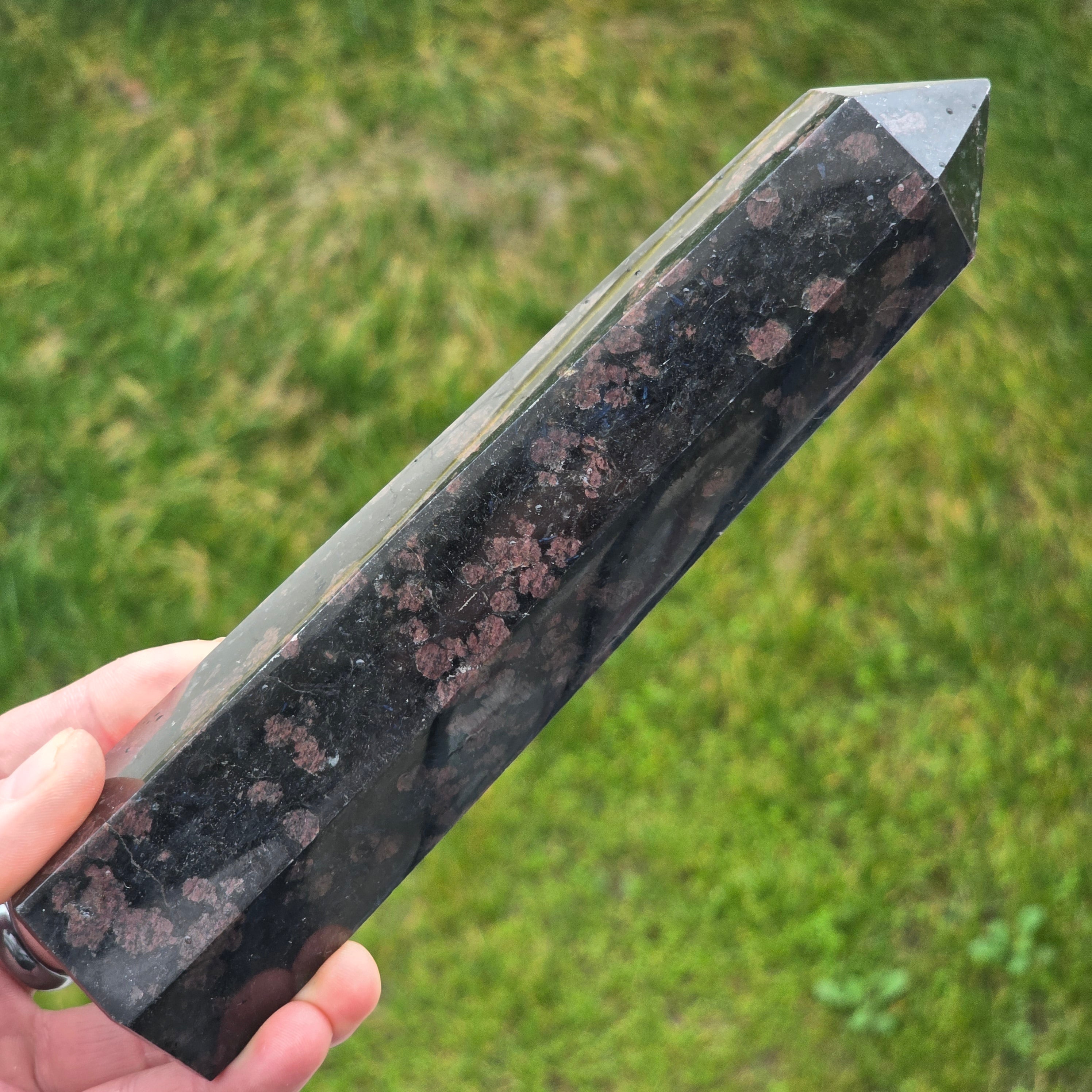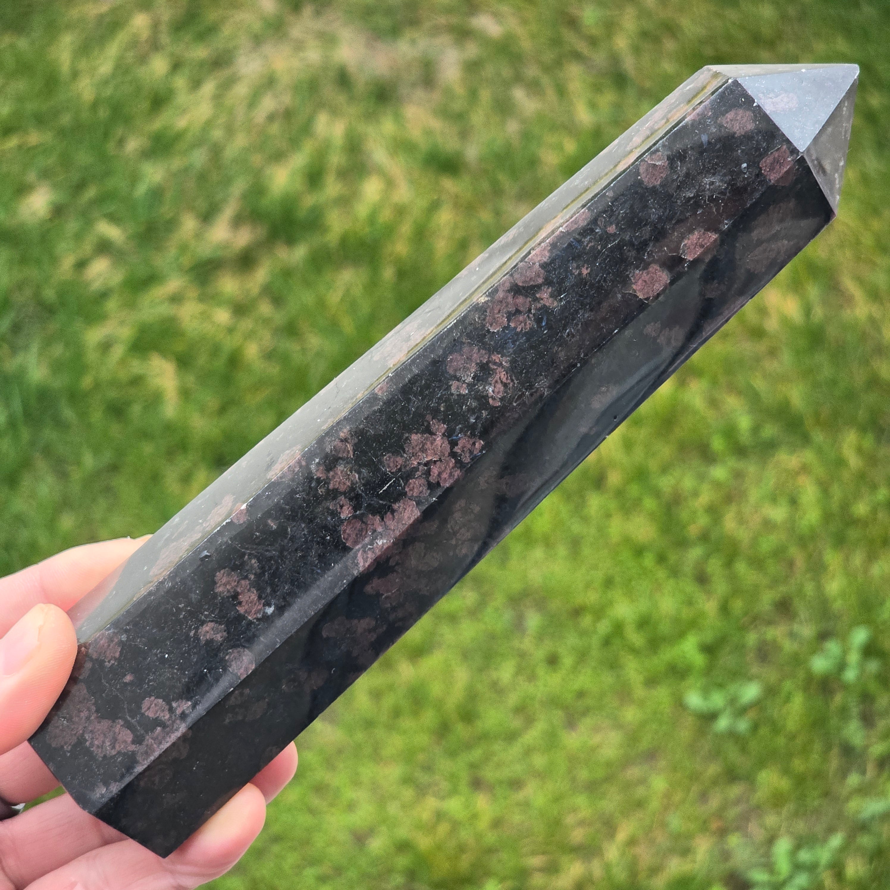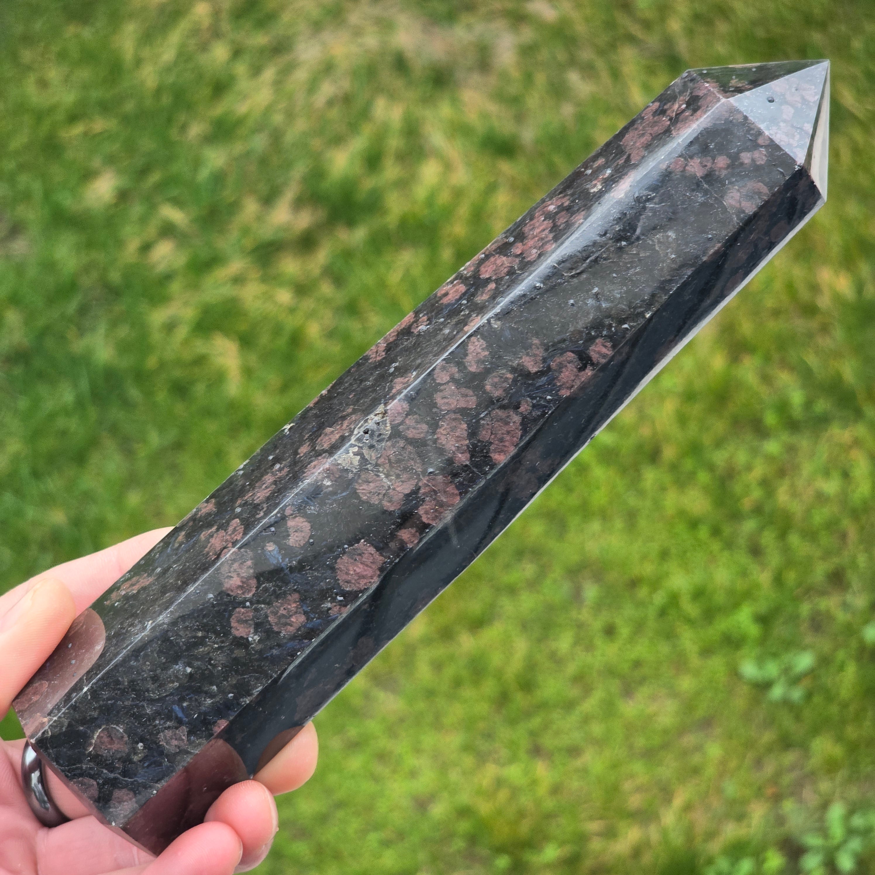 Description - Obélisque de tourmaline noire avec grenat | Modèle 26