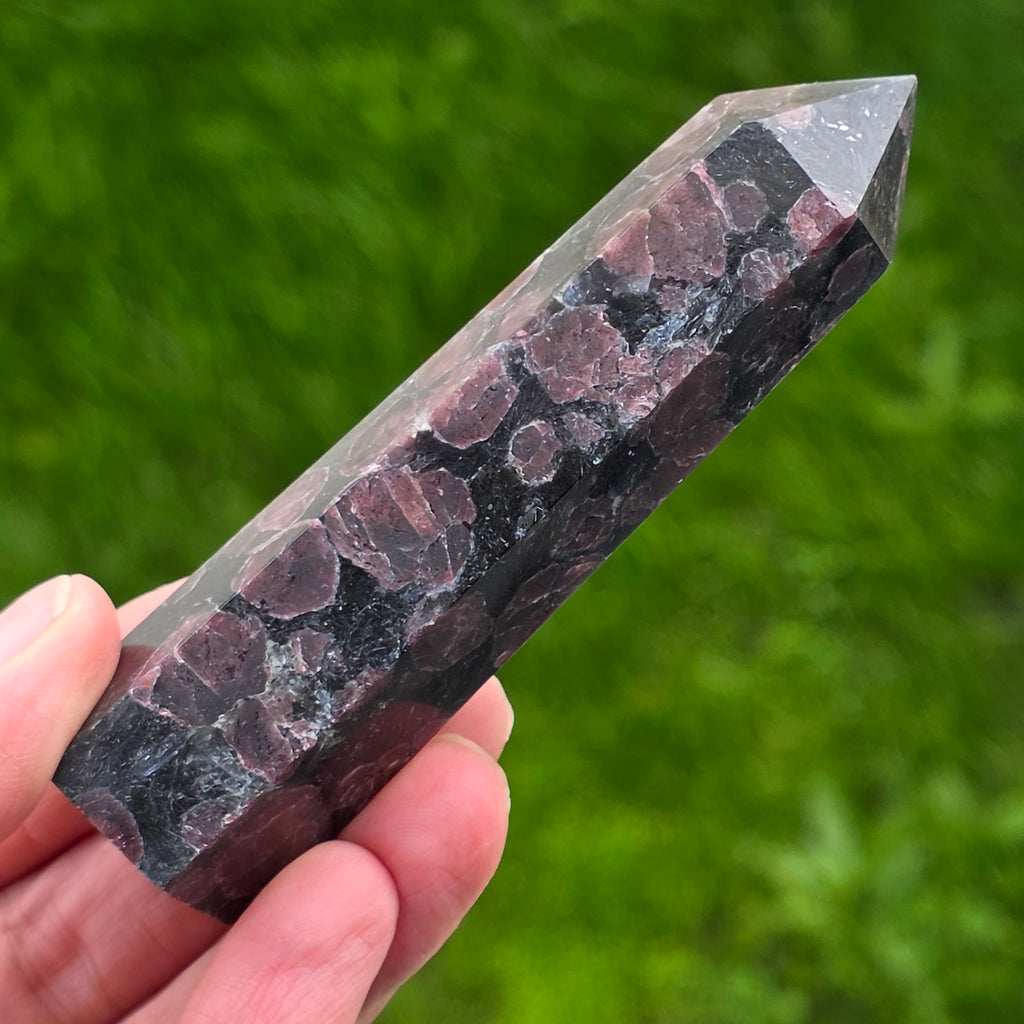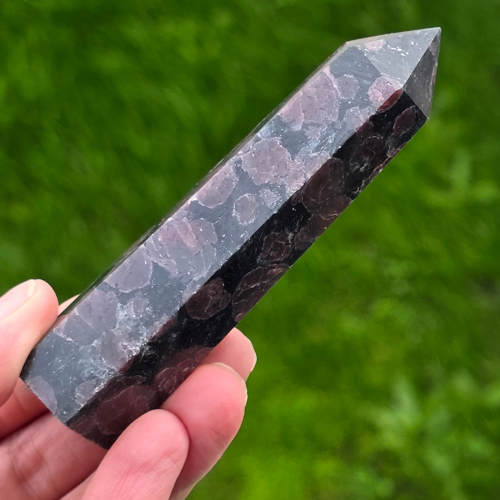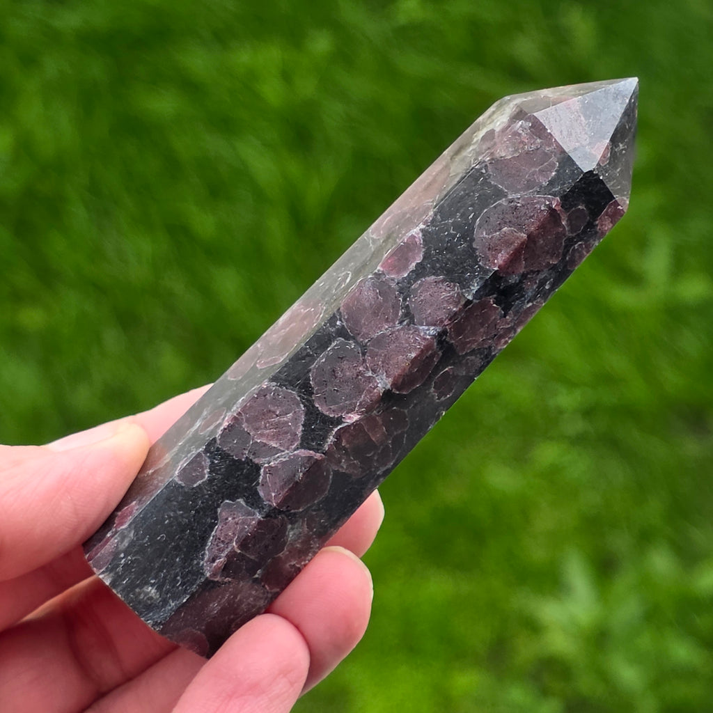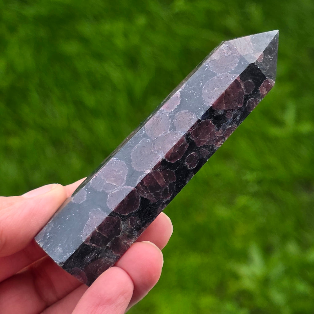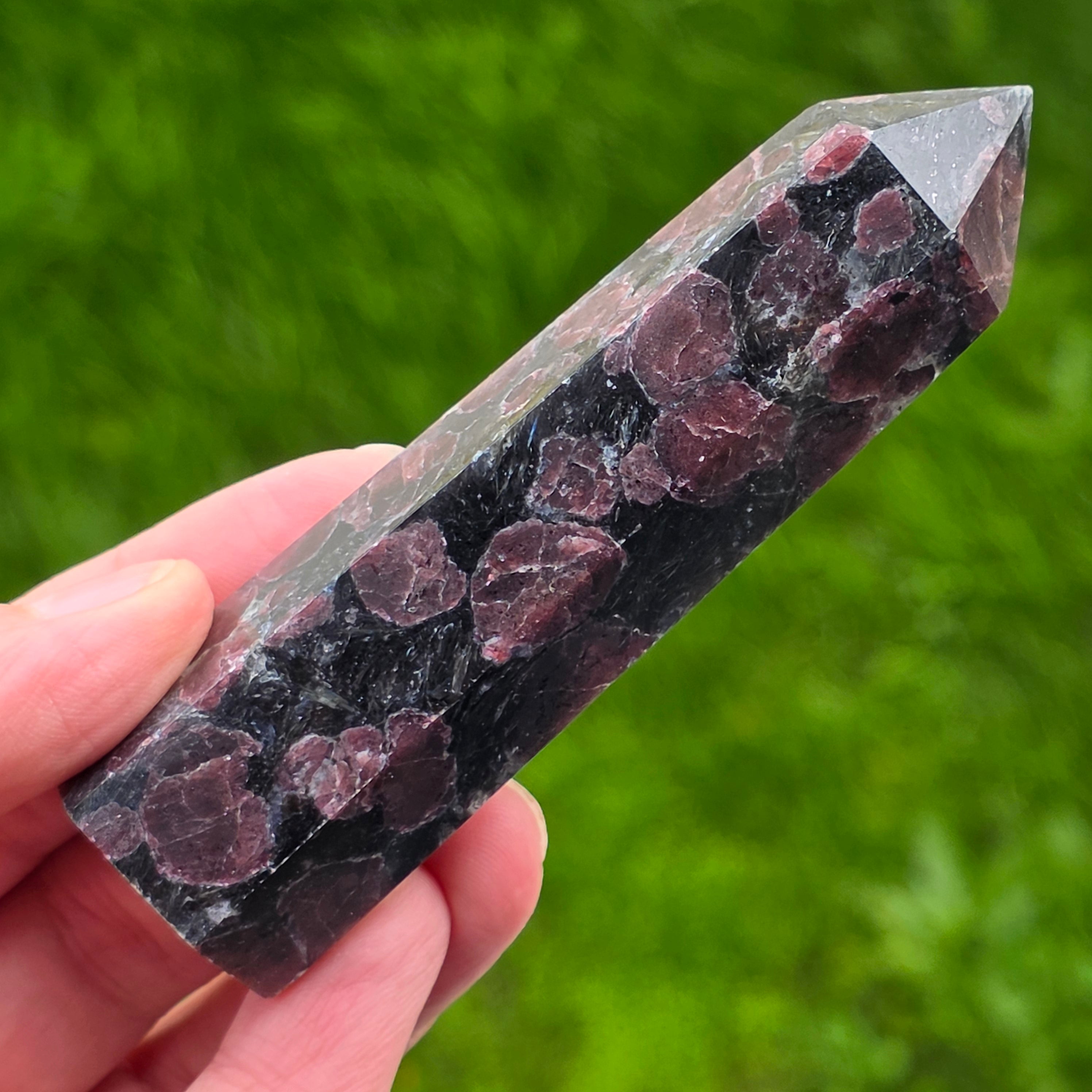 Critiques- Obélisque en tourmaline noire avec grenat modèle 22