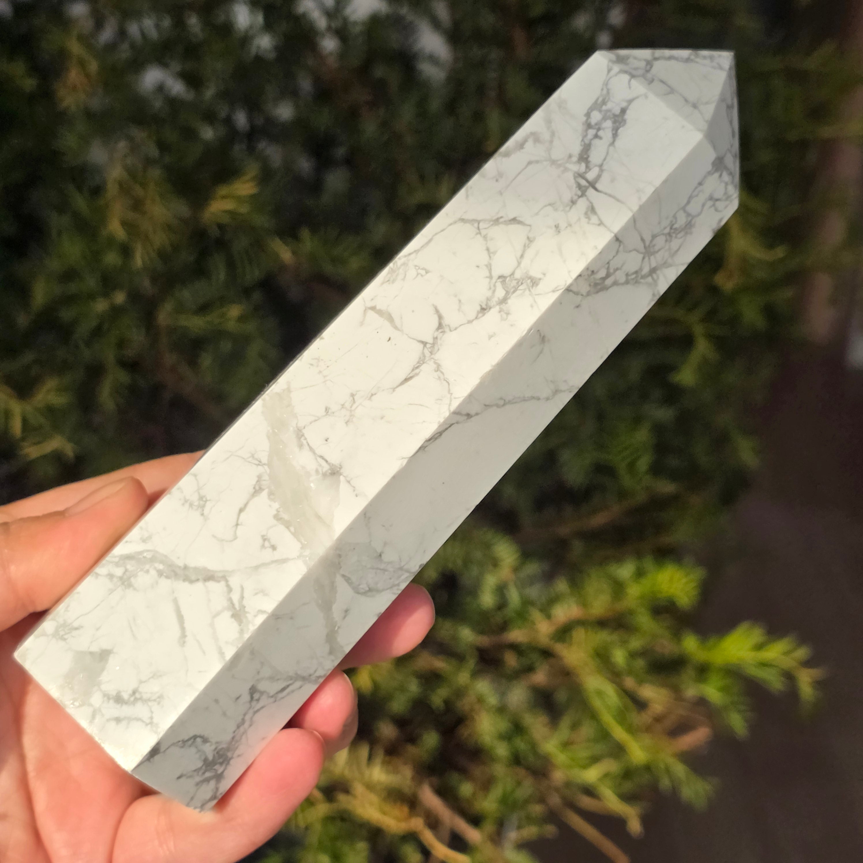 La howlite est une pierre semi-précieuse composée de silicate de calcium et est connue pour ses propriétés d'apaisement de l'esprit et de réduction du stress et de l'anxiété.