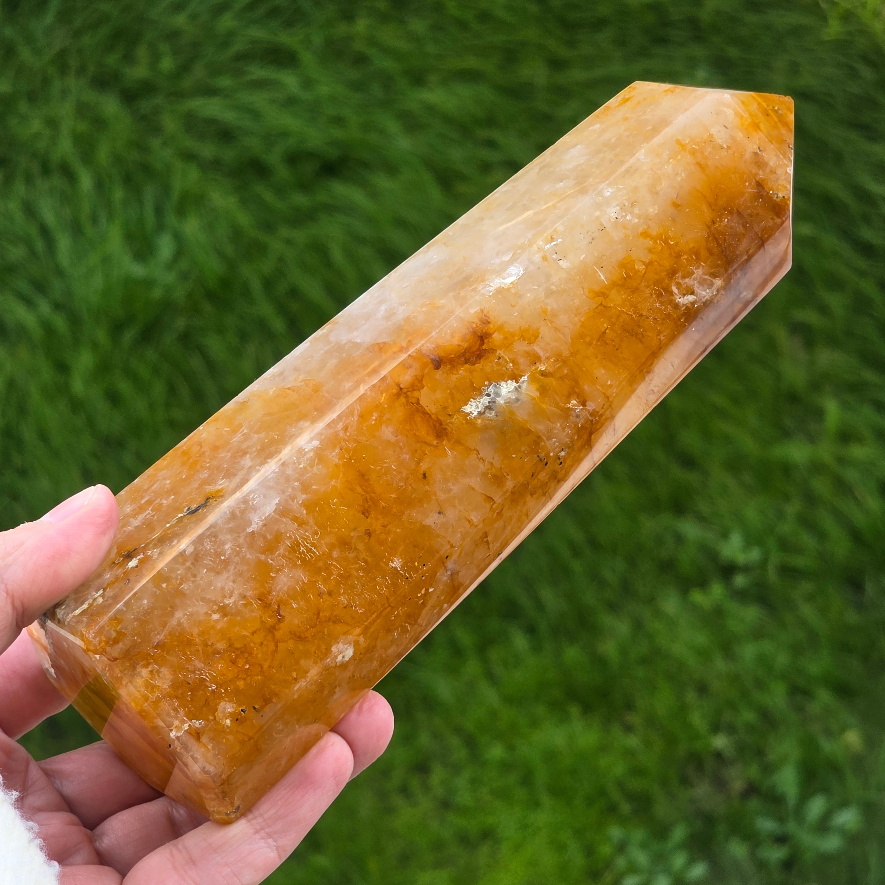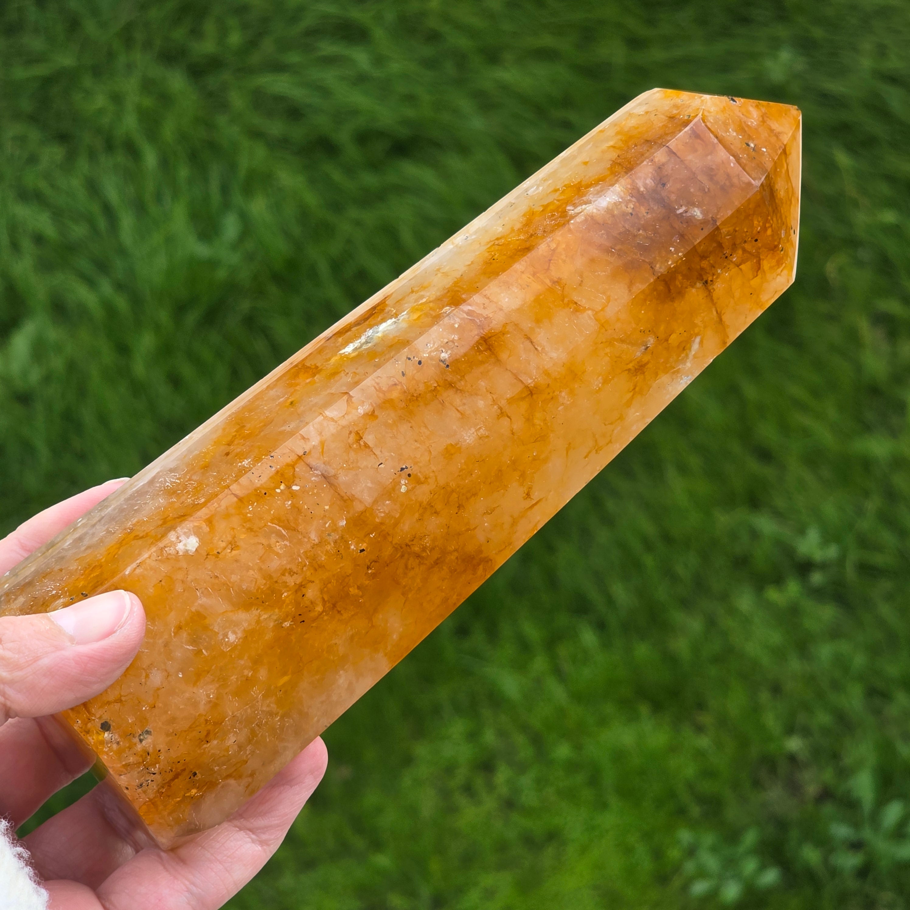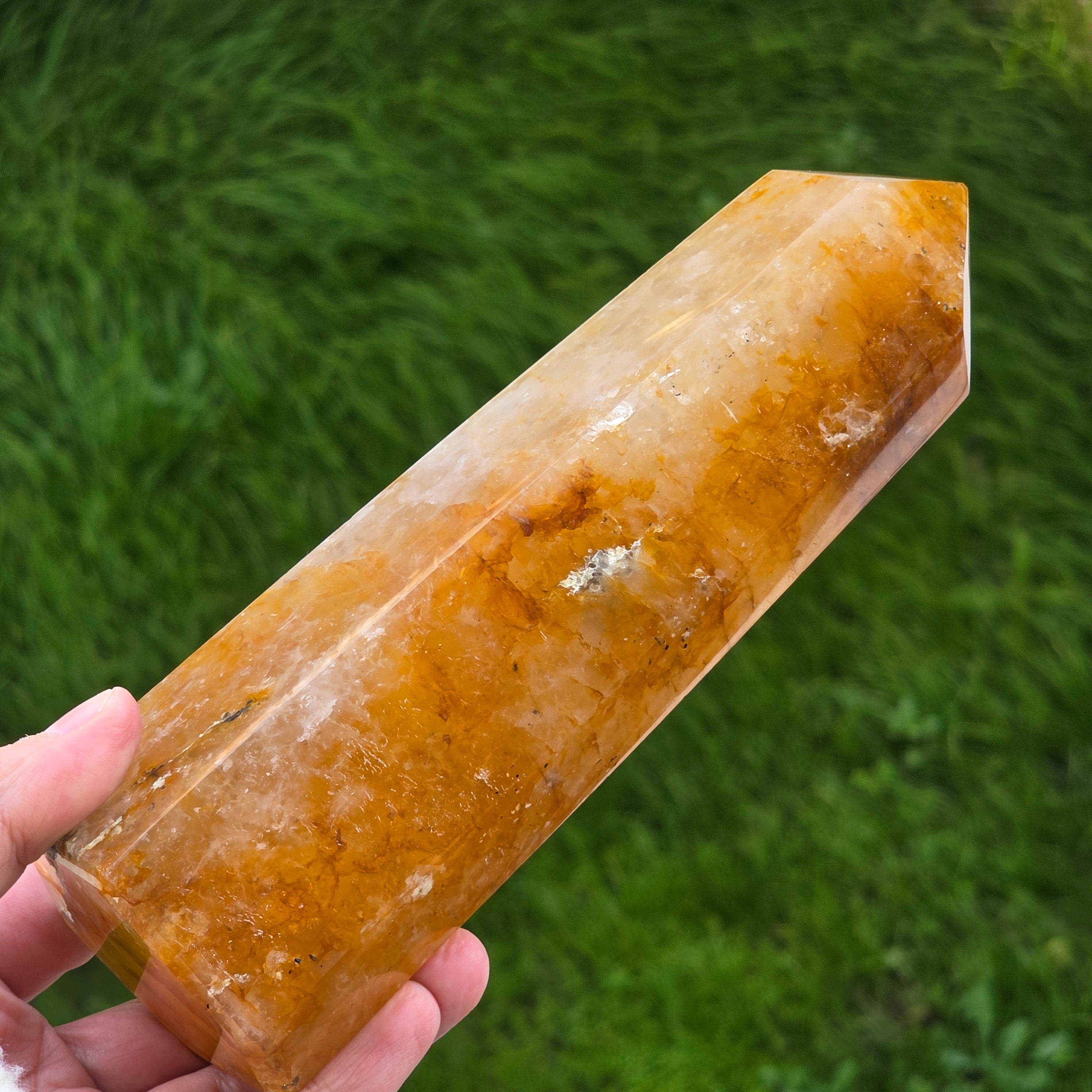 Description - Obélisque quartz citron / limonite Madagascar | Modèle 4