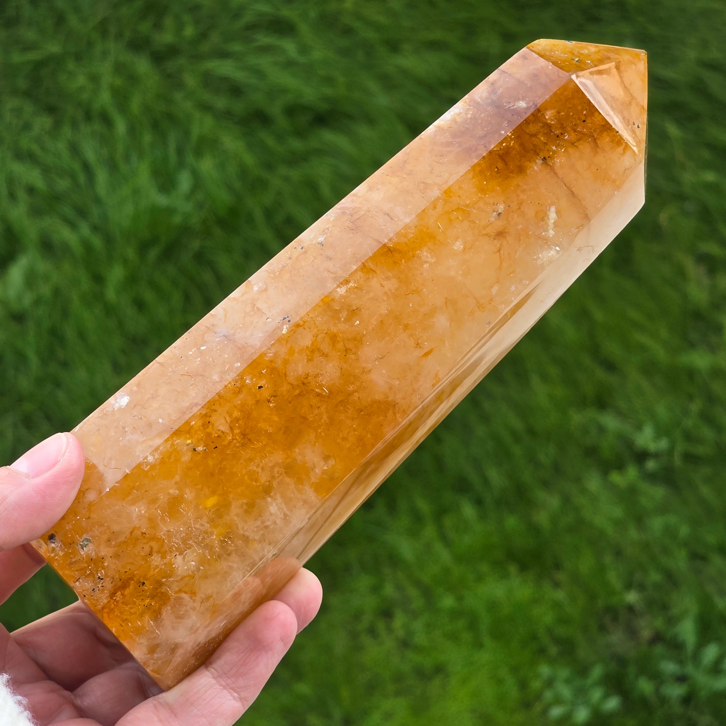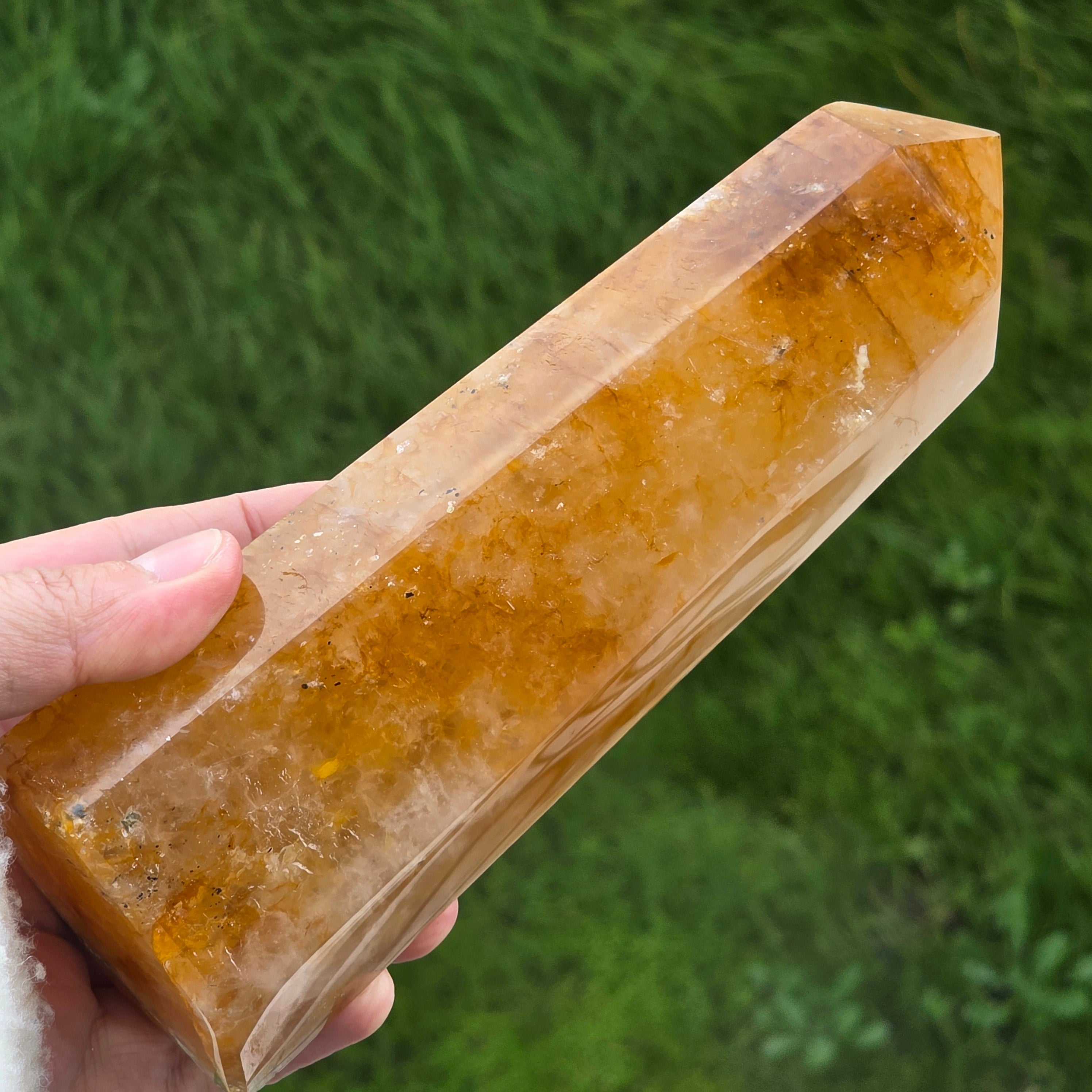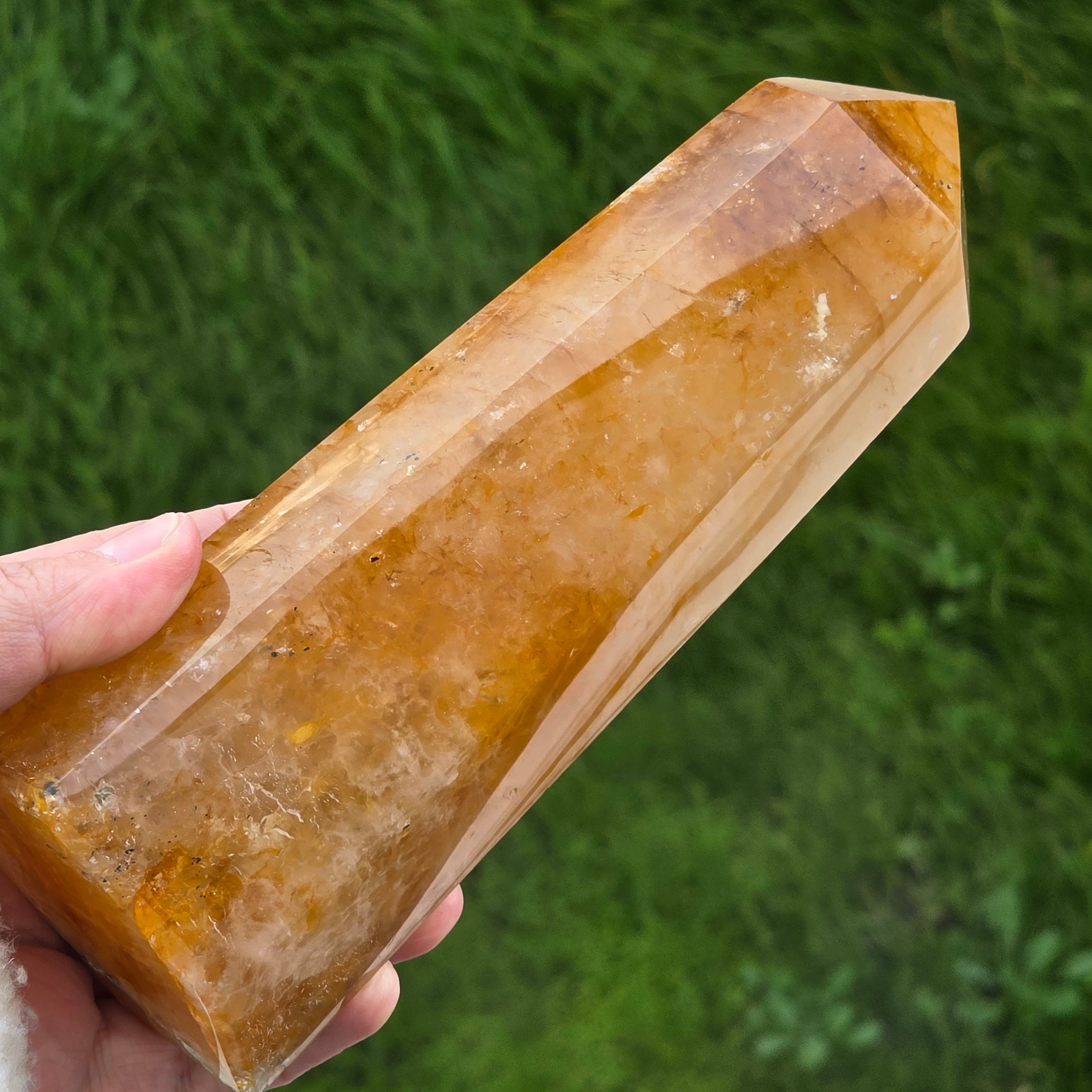 Description - Obélisque quartz citron / limonite Madagascar | Modèle 4