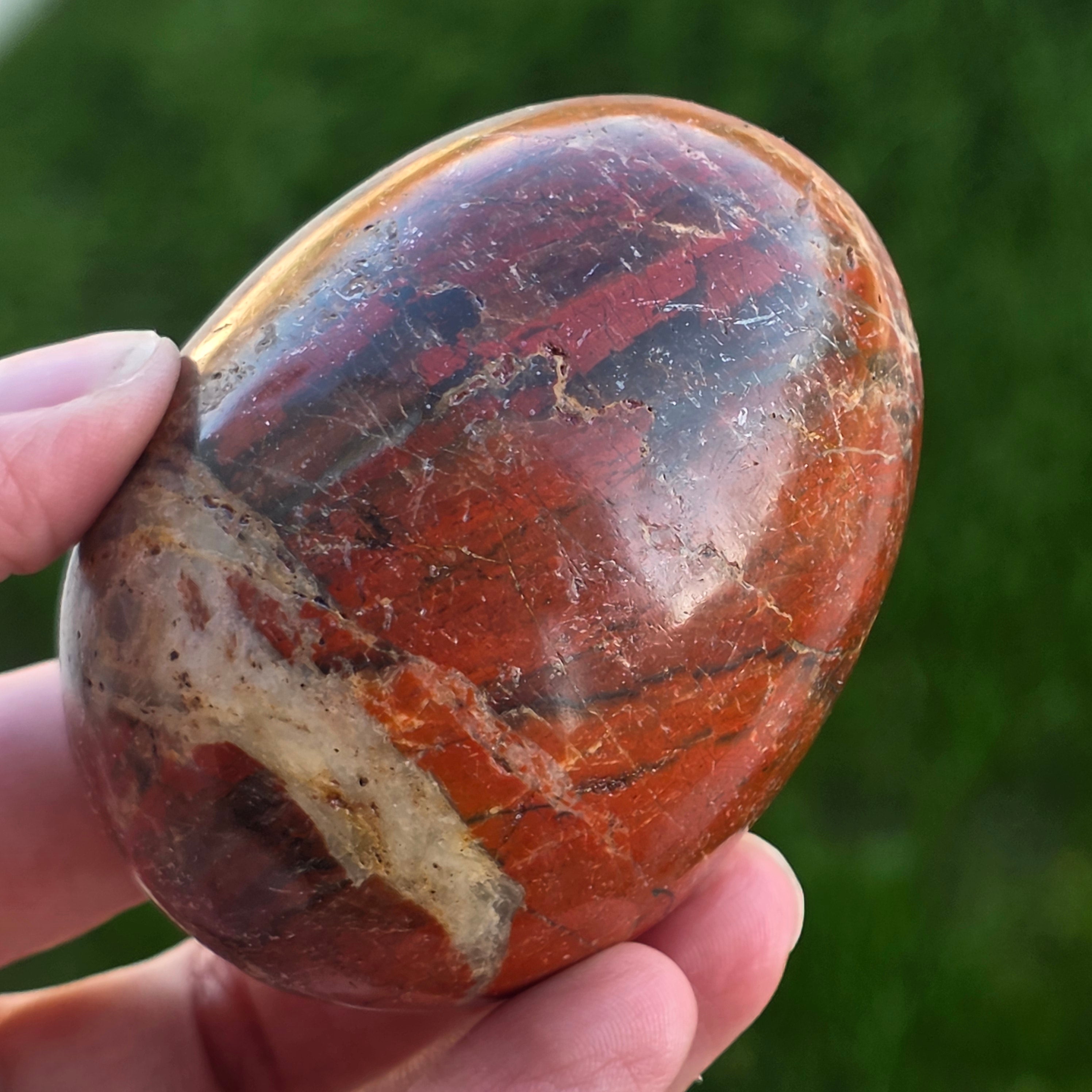 Le jaspe rouge est aussi appelé la pierre du courage et de la force. Cette pierre augmente les niveaux d’énergie, stimule la circulation et le désir de vivre.