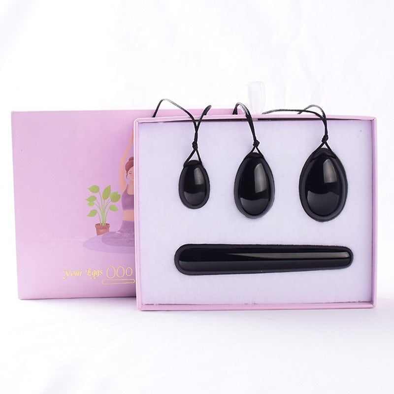Œufs Yoni et baguette en obsidienne - Set de 3 pièces