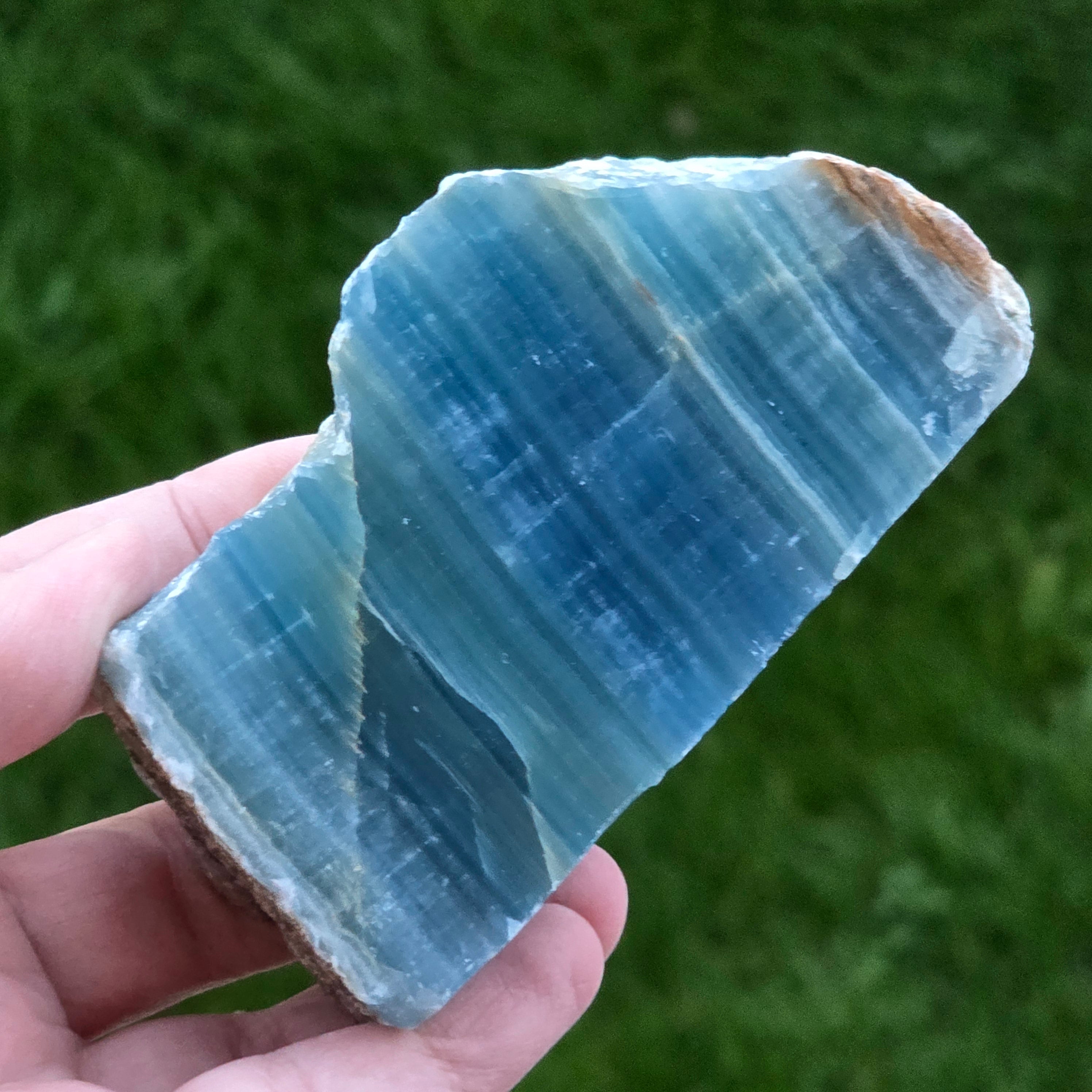 Onix albastru piatra bruta polisata pe o față | Model 3