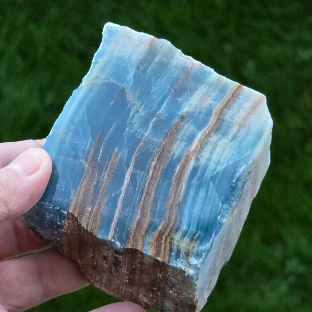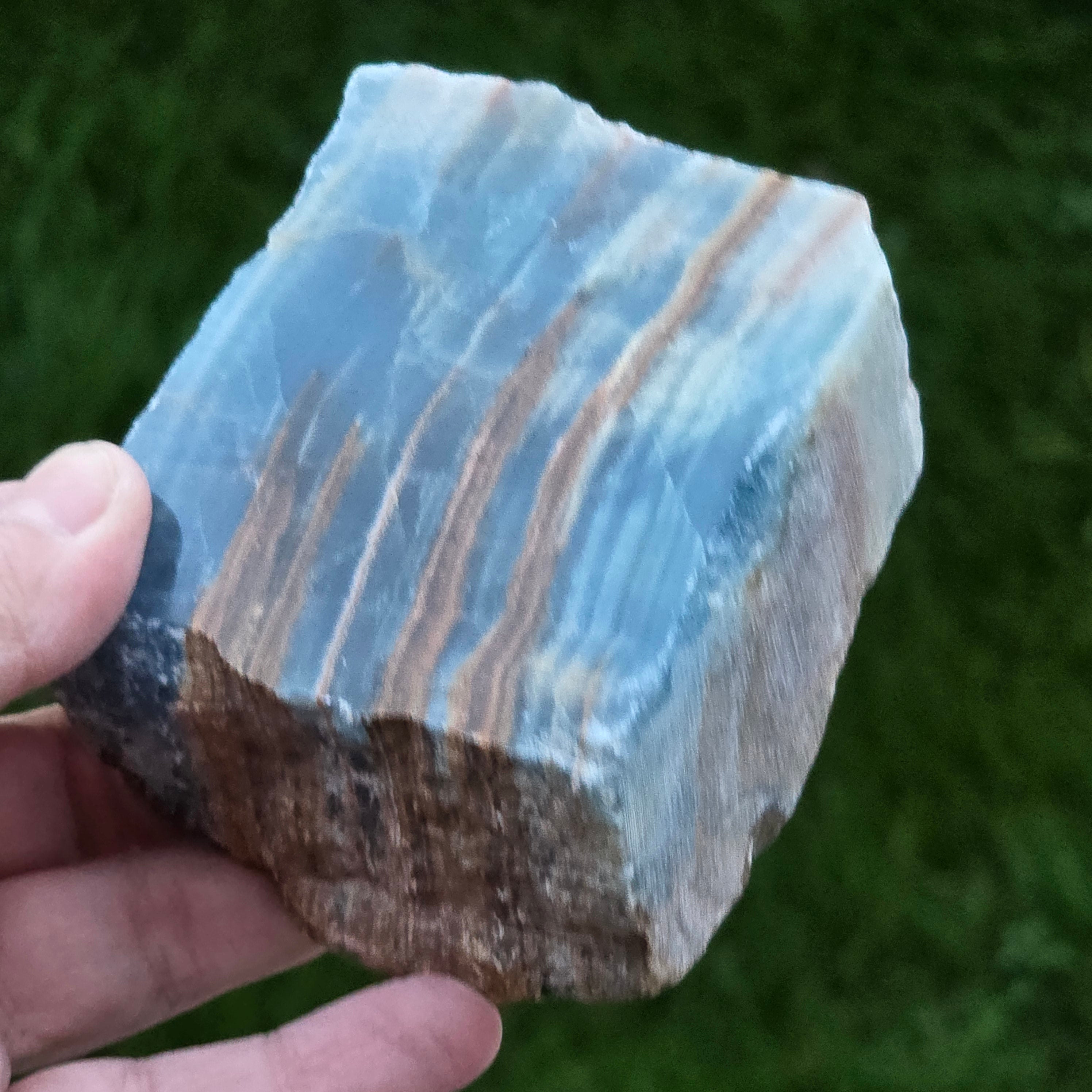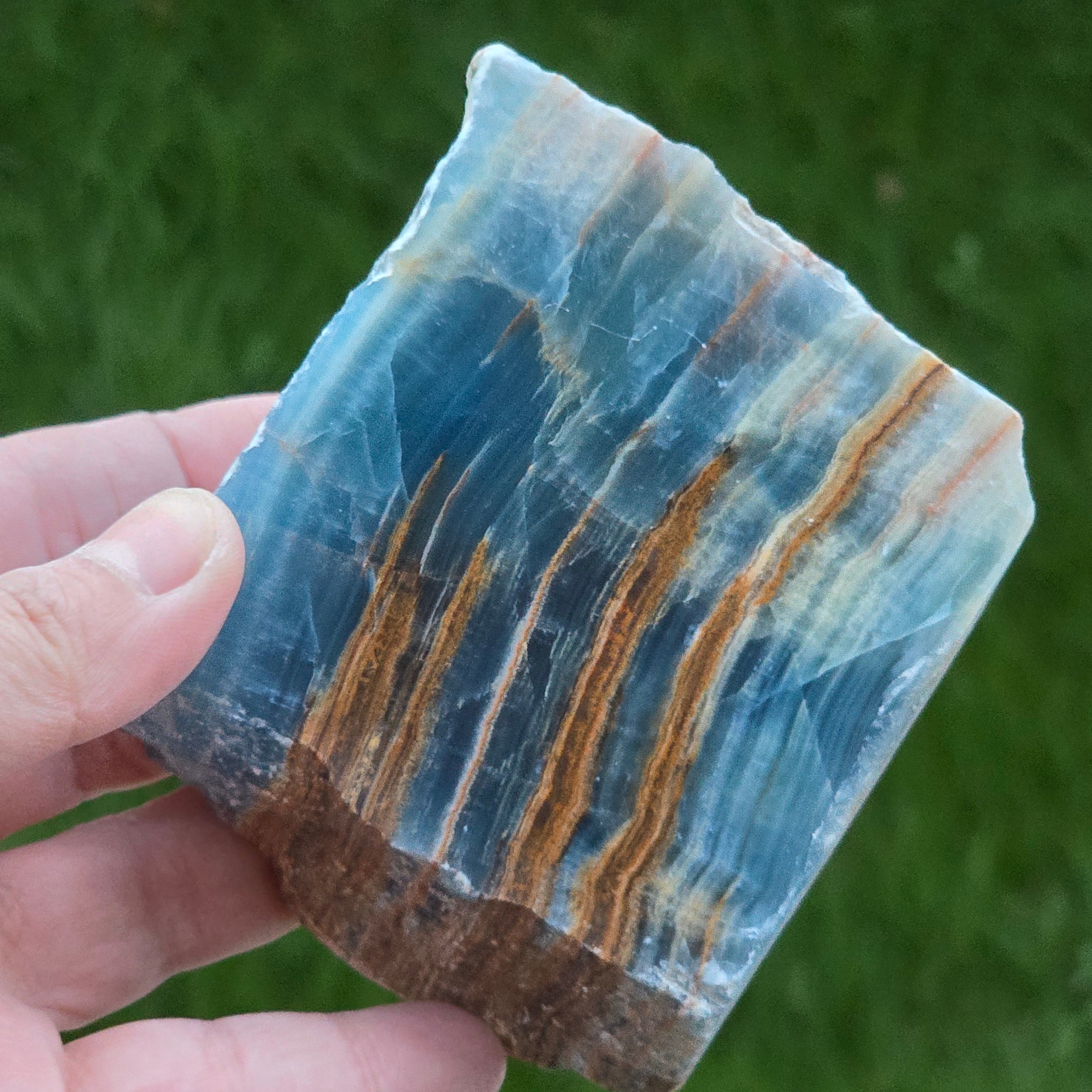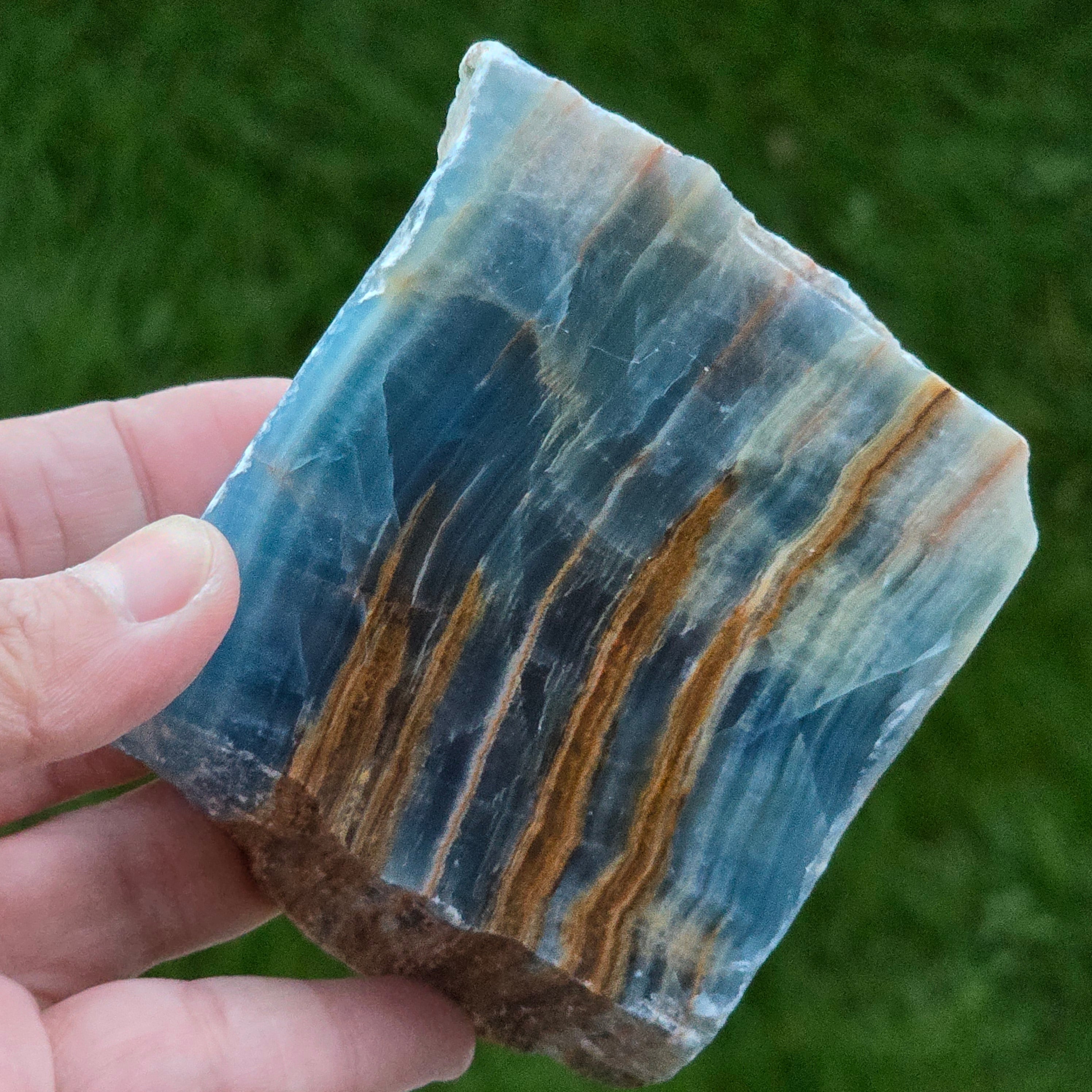 Onix albastru piatra bruta polisata pe o față | Model 5