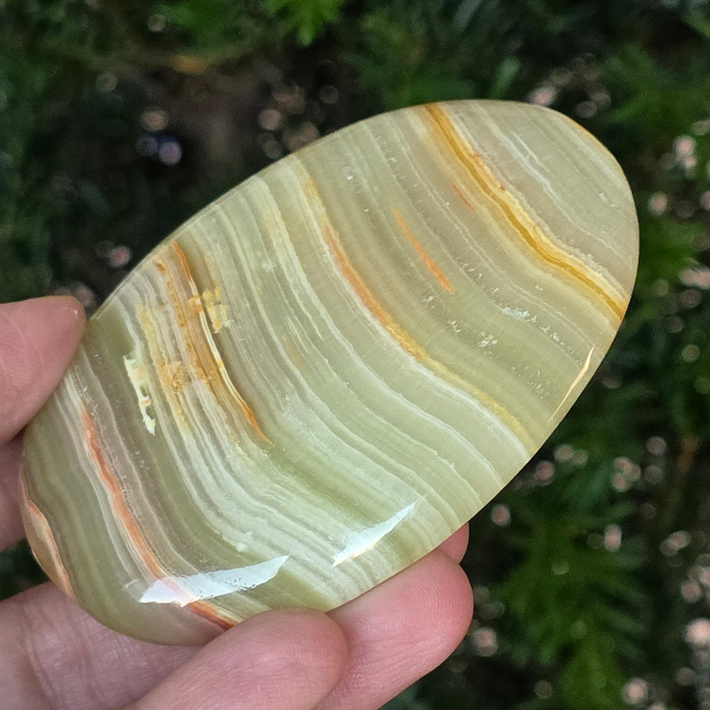 Ținut între palme, acest palmstone din onix verde natural devine un aliat al echilibrului, un memento tăcut al armoniei dintre trup și spirit. Este ideal pentru meditație, relaxare sau pur și simplu ca obiect decorativ cu energie blândă și rafinată.