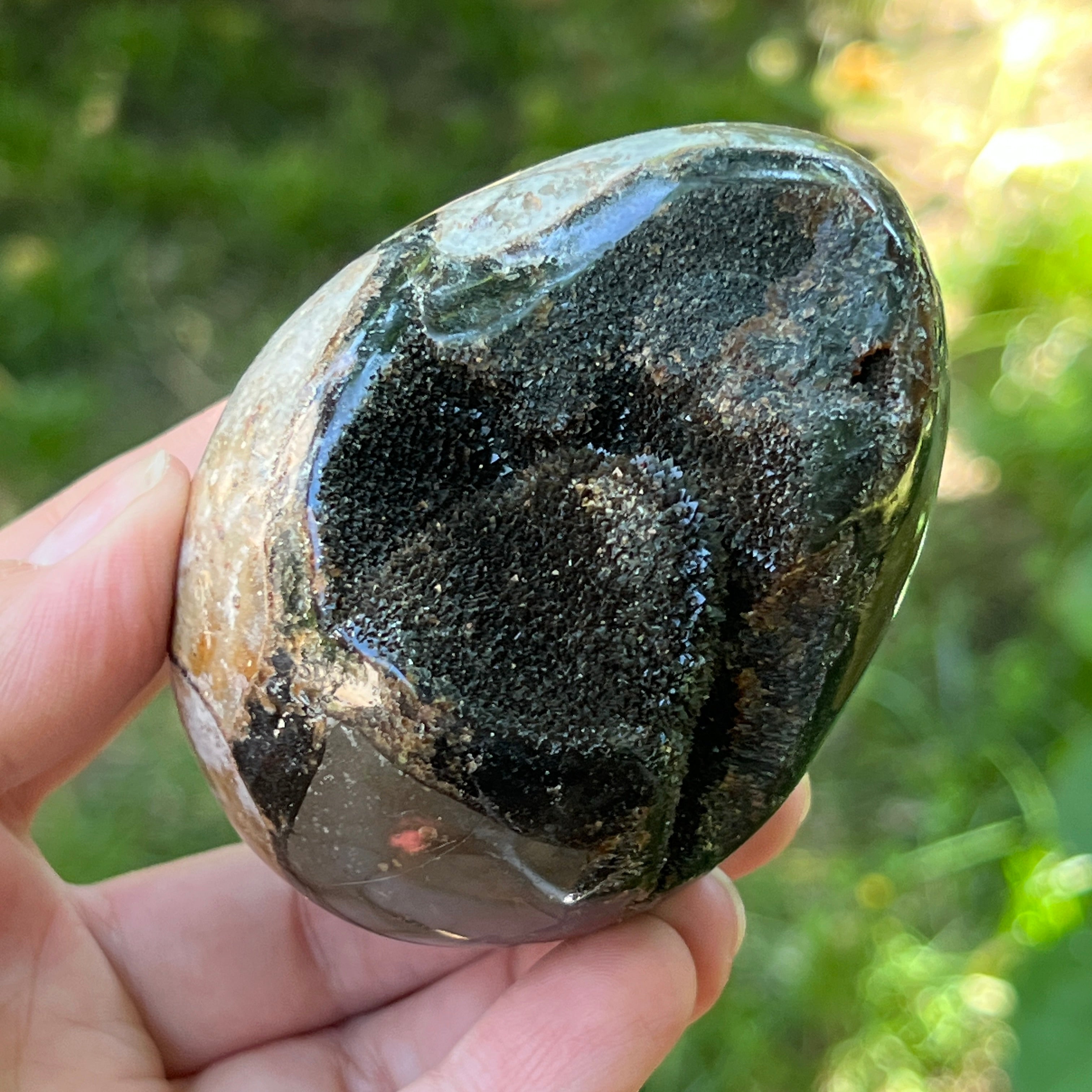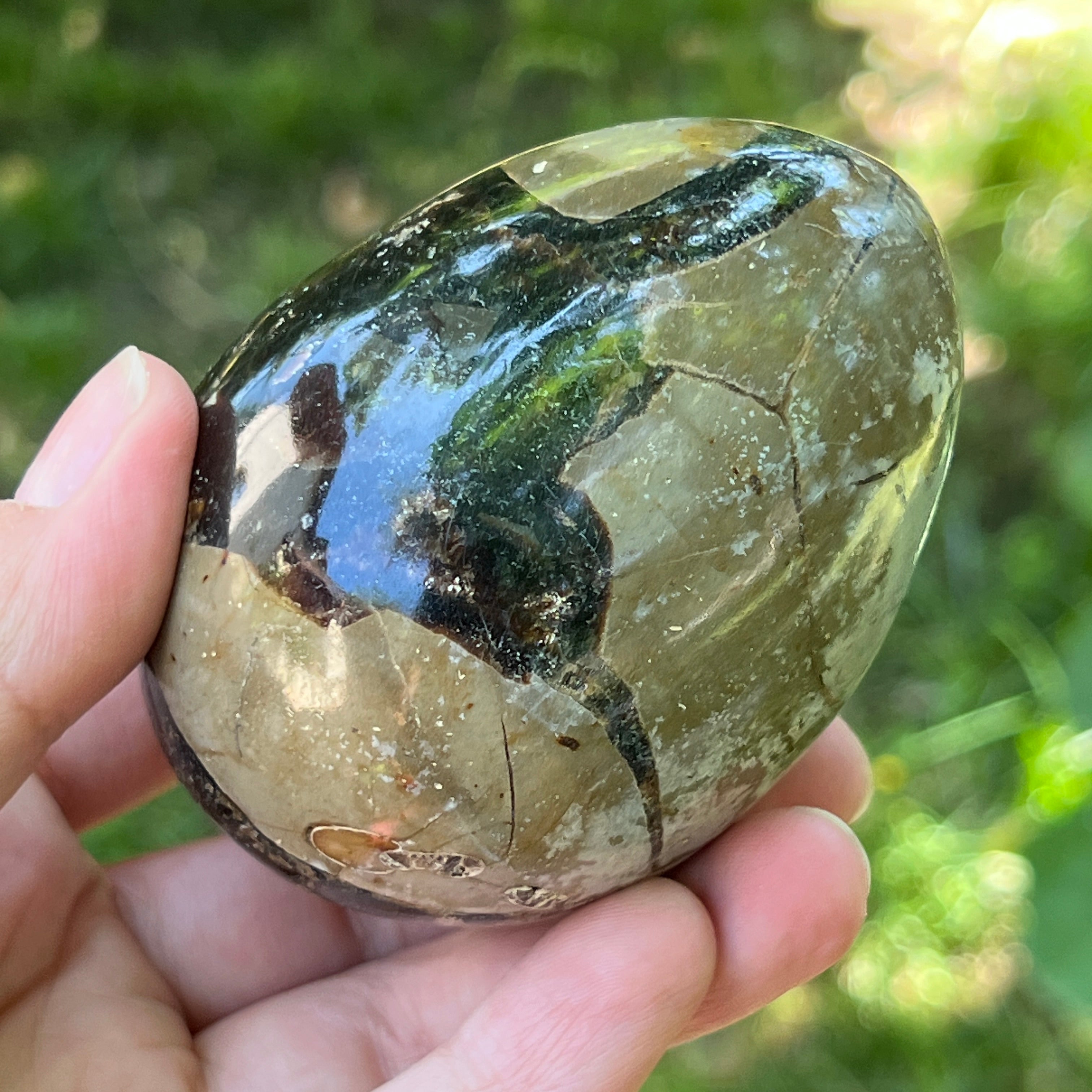 Septaria est considérée comme une pierre qui nous rapproche de l'énergie de la terre, ce qui nous donne la vigueur et la force dont nous avons besoin. Il est utilisé dans les méditations pour nous rappeler qui nous sommes, quels sont nos pouvoirs et pour nous libérer des traumatismes émotionnels.