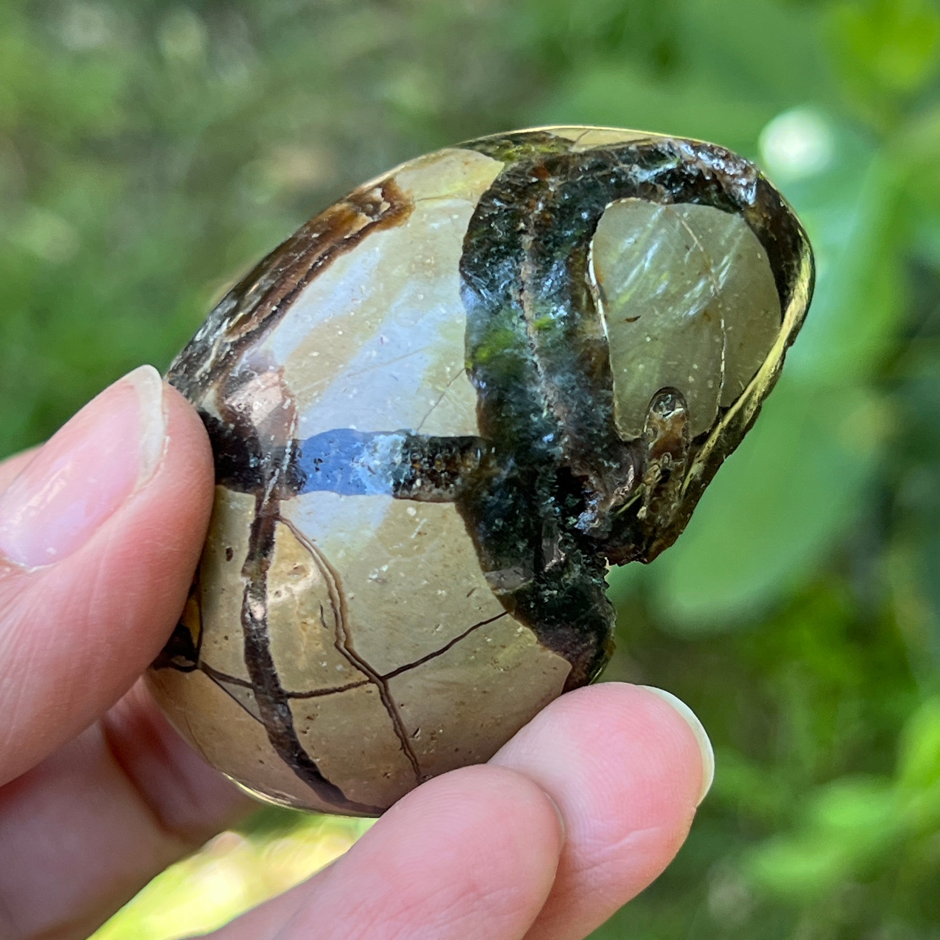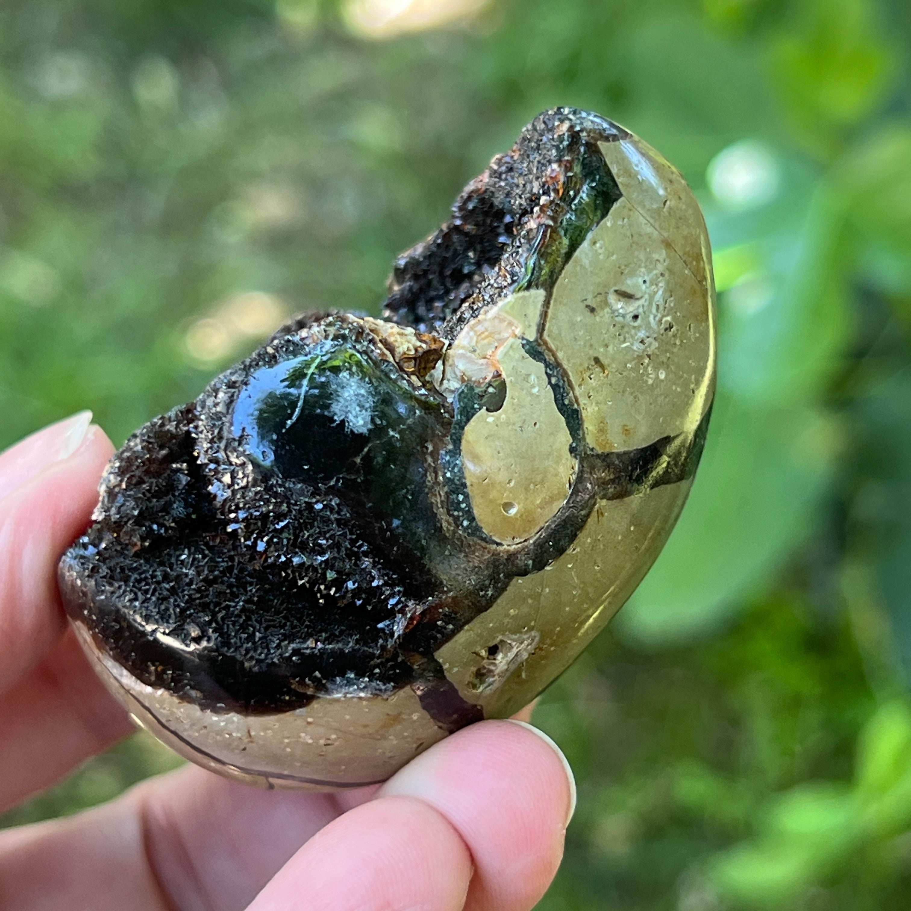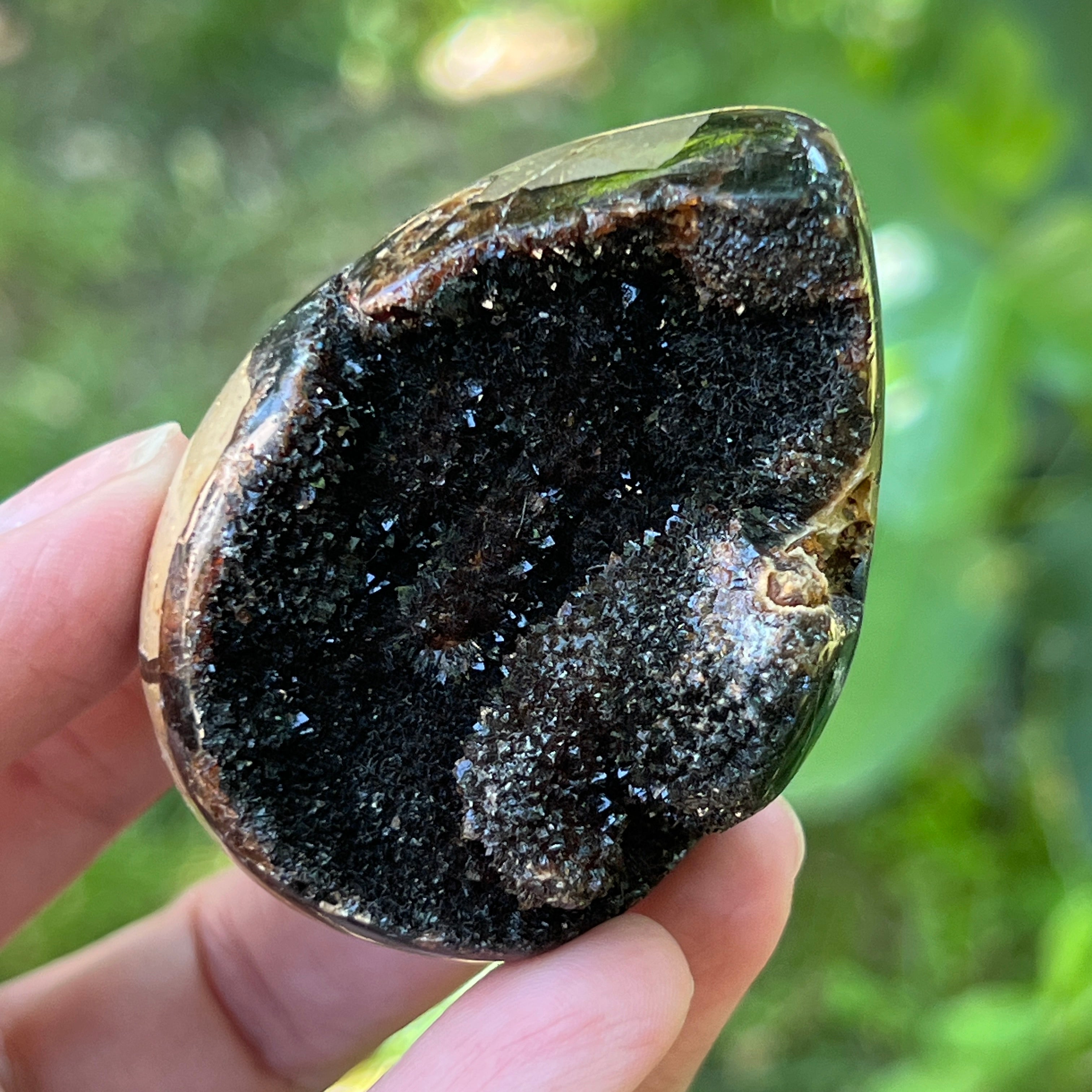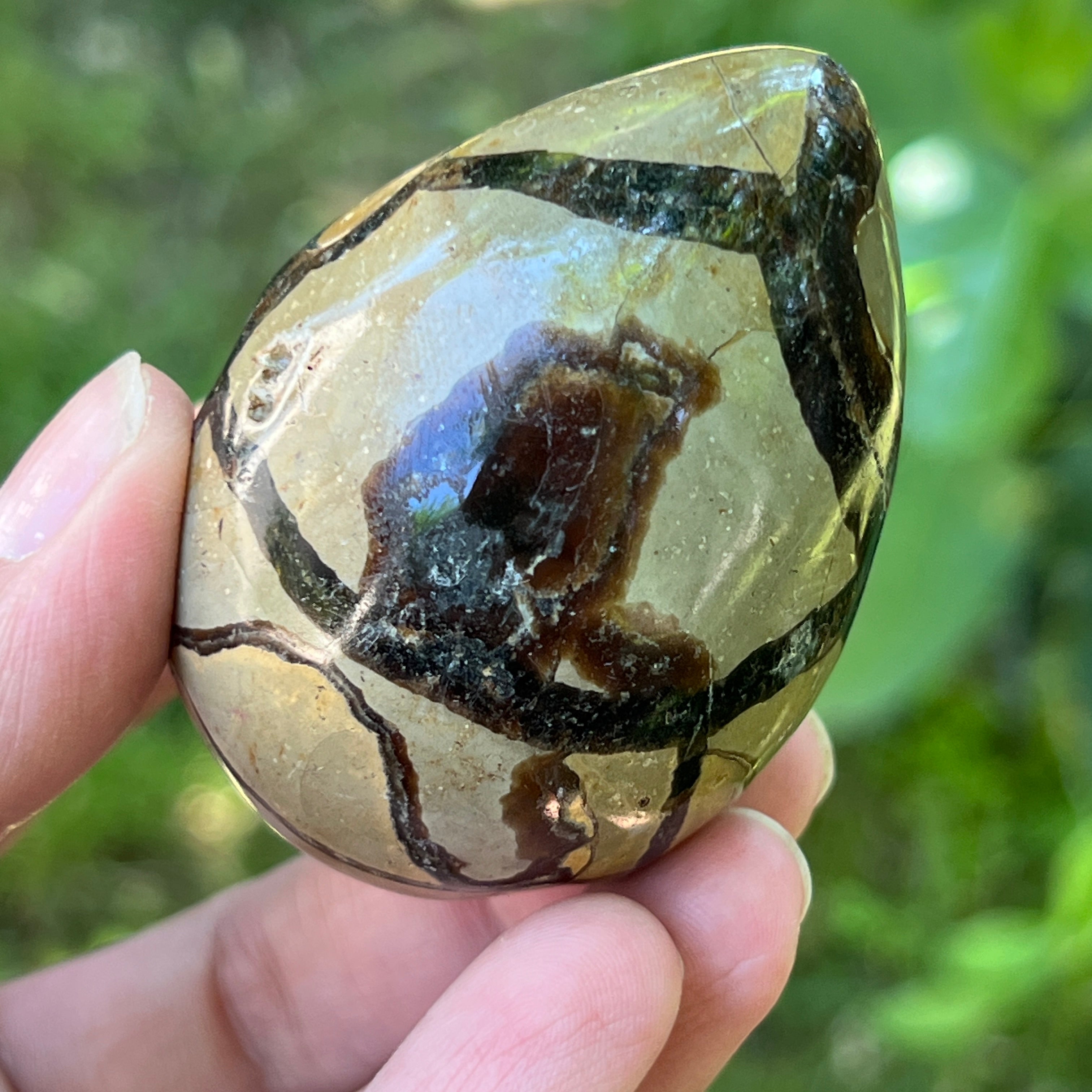 Septaria est considérée comme une pierre qui nous rapproche de l'énergie de la terre, ce qui nous donne la vigueur et la force dont nous avons besoin. Il est utilisé dans les méditations pour nous rappeler qui nous sommes, quels sont nos pouvoirs et pour nous libérer des traumatismes émotionnels.