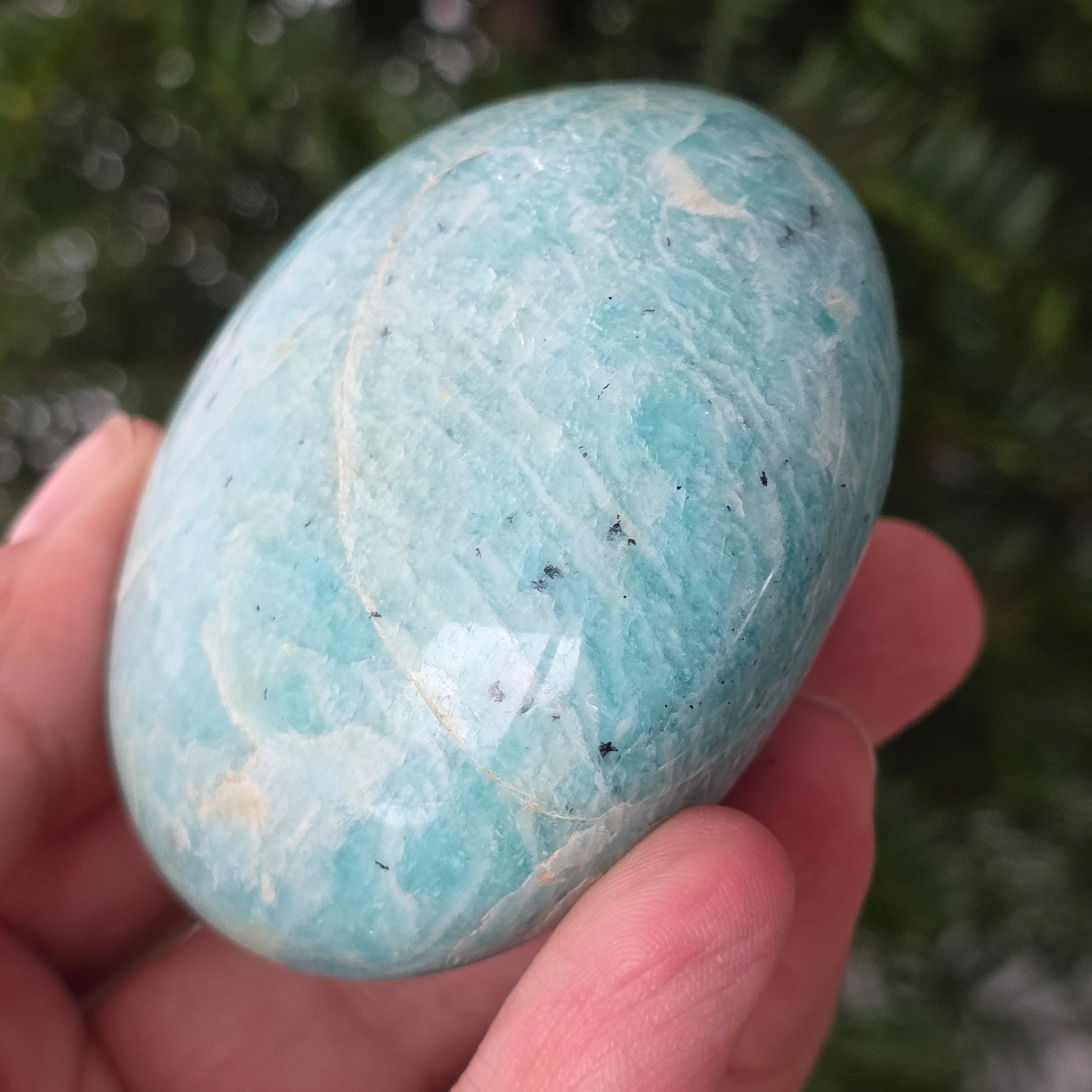 L'Amazonite est aussi appelée la porteuse de paix. Elle est considérée comme une pierre d’équilibre, qui peut aider à calmer la nervosité, les émotions, et qui encourage l’expression authentique et améliore les relations avec ceux qui vous entourent.