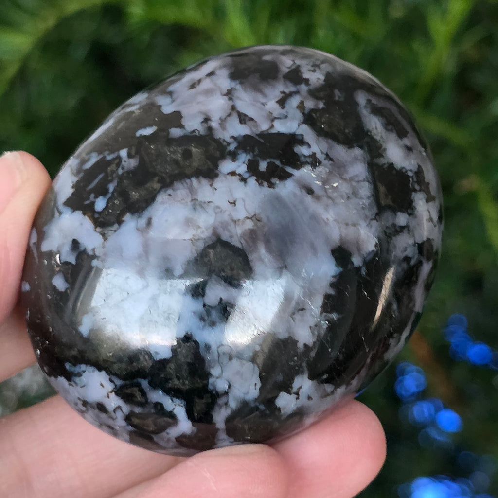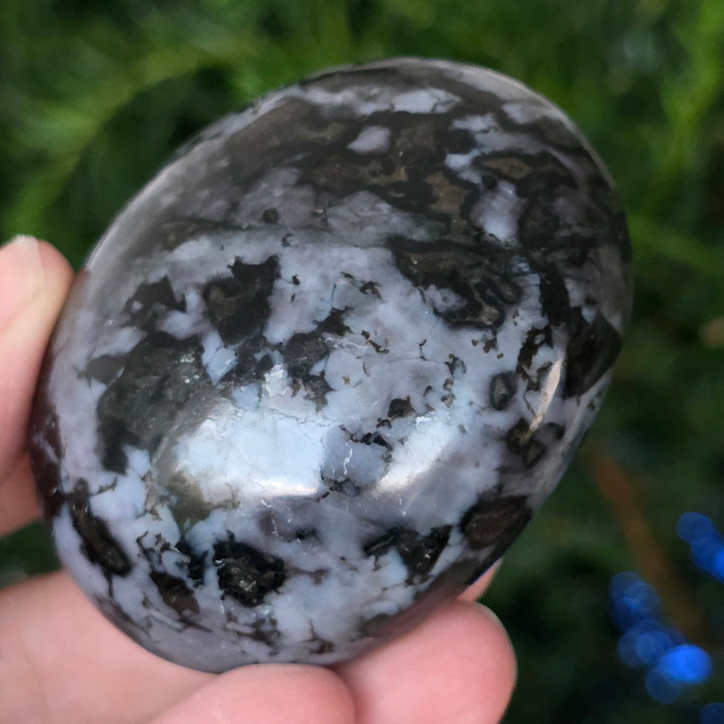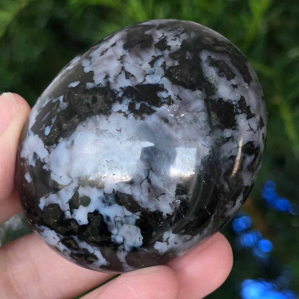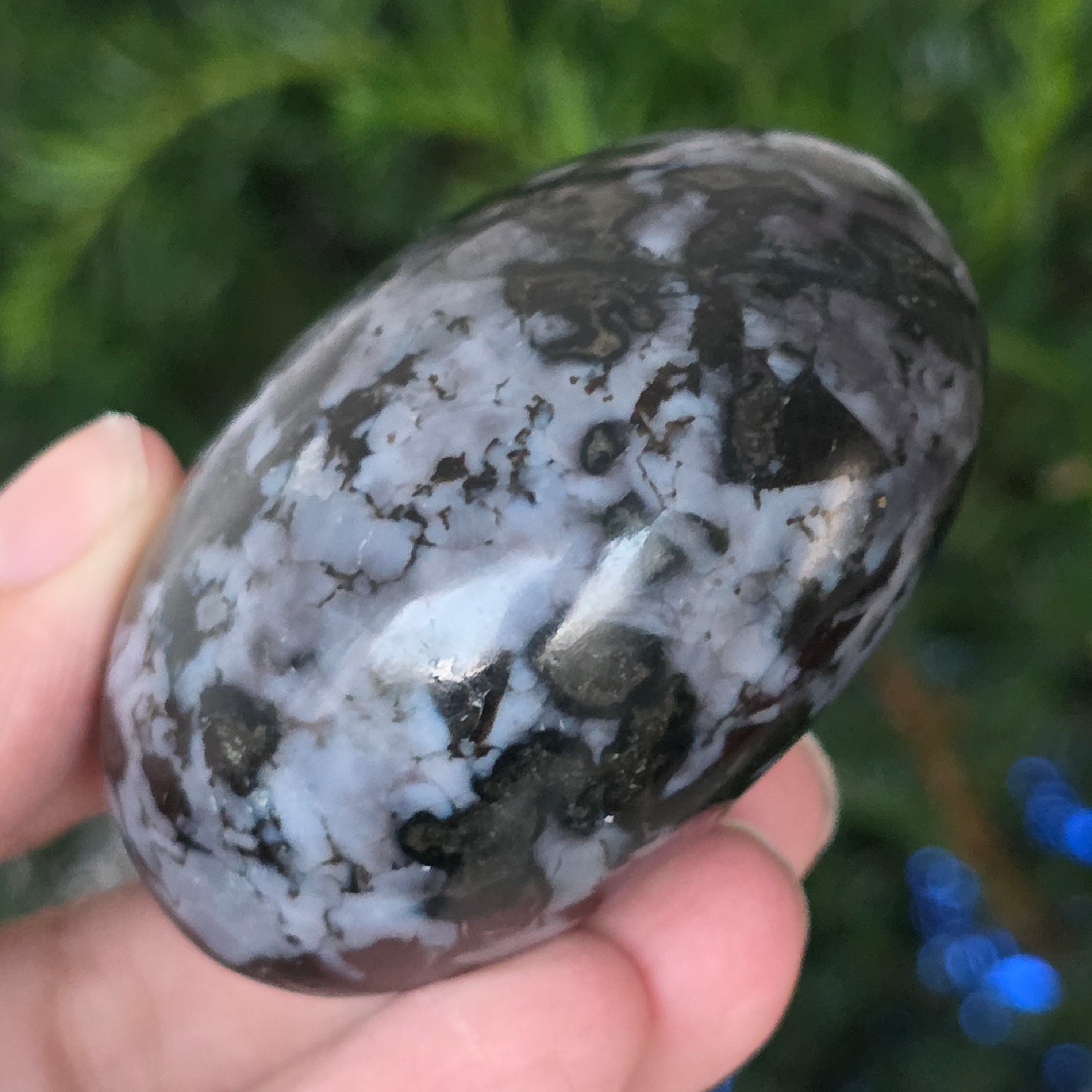 Le merlinite est une pierre semi-précieuse rare et fascinante, reconnue pour sa combinaison de couleurs contrastées, blanc et noir, qui lui confère un aspect unique. Elle est considérée comme une variété d’opale dendritique ou comme une combinaison de quartz et d’autres minéraux, et sa structure complexe la rend appréciée tant pour sa beauté que pour ses propriétés énergétiques supposées. La merlinite est connue dans le domaine de la cristallothérapie pour ses énergies mystiques et son association avec l’intuition, la clairvoyance et la connaissance spirituelle.