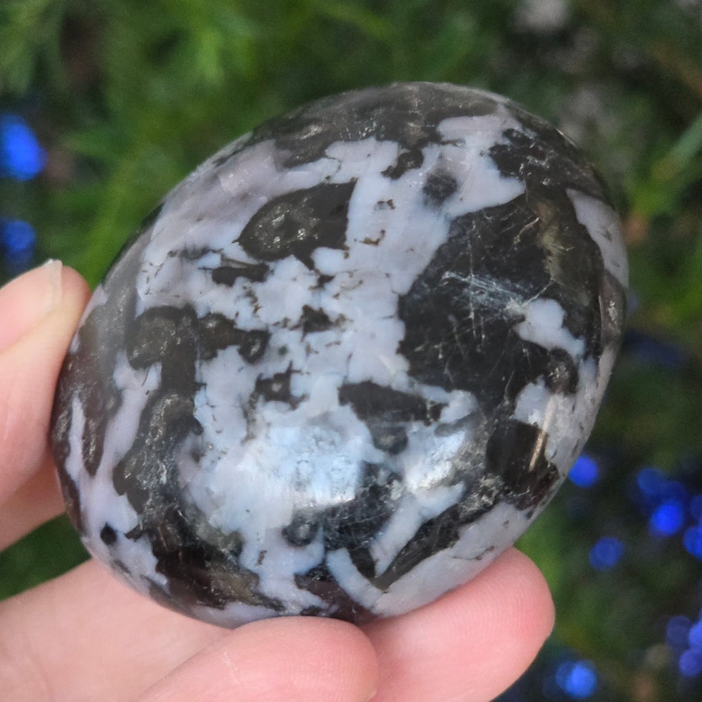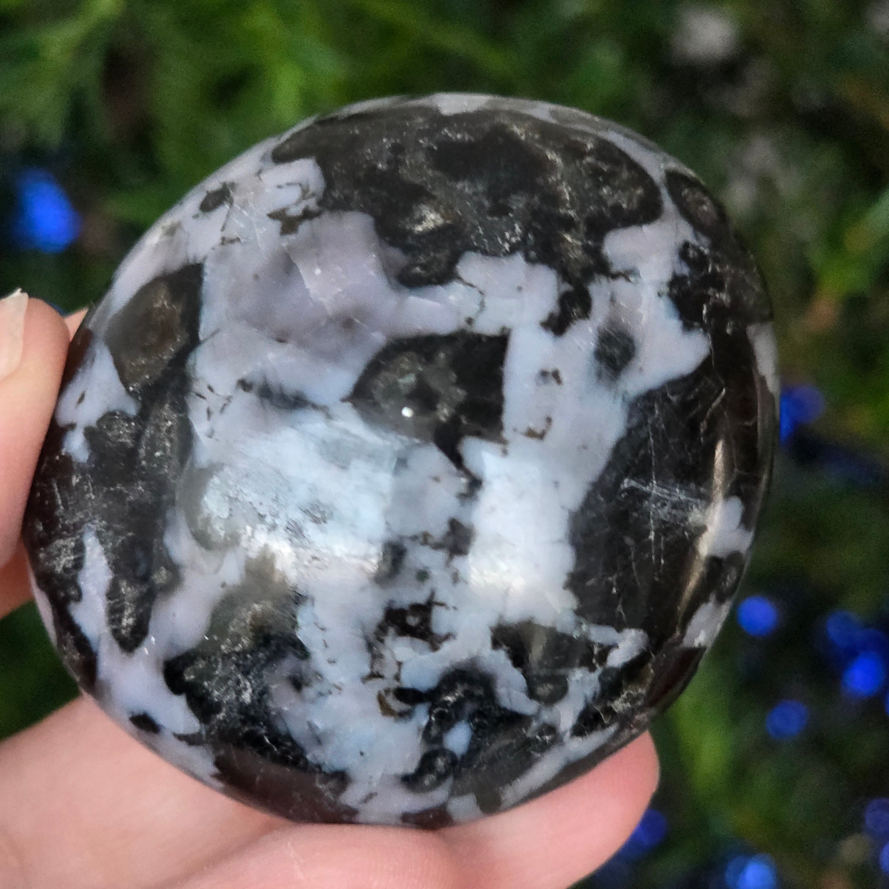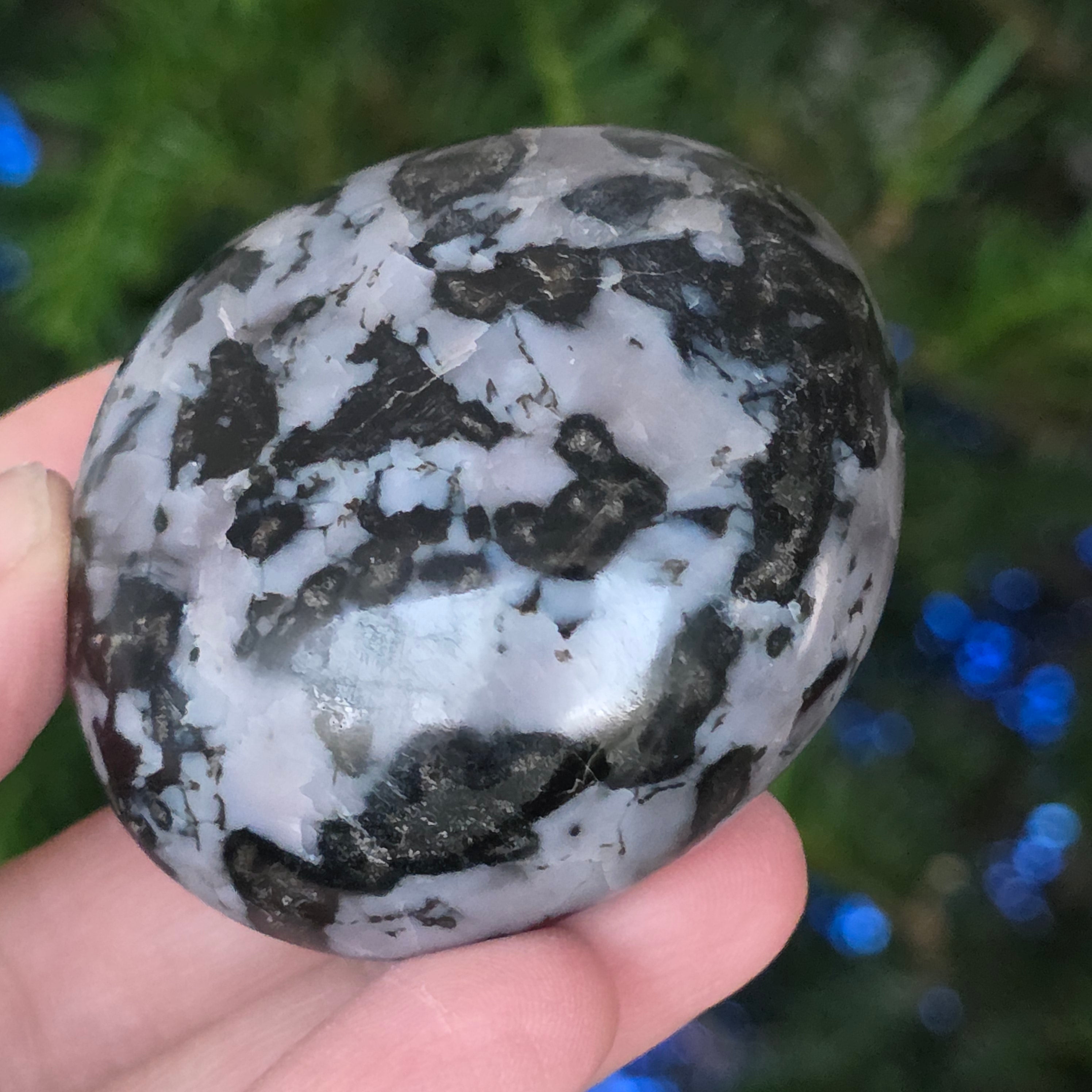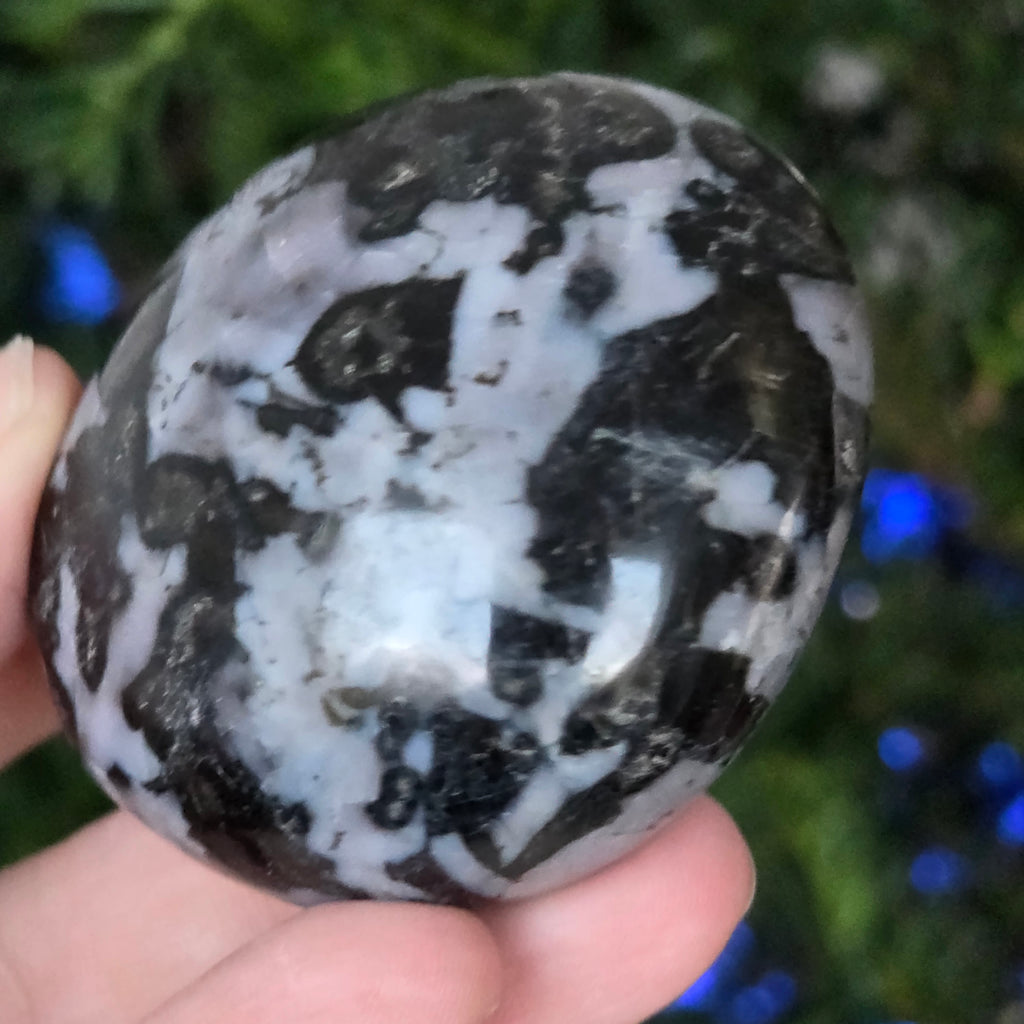 Le merlinite est une pierre semi-précieuse rare et fascinante, reconnue pour sa combinaison de couleurs contrastées, blanc et noir, qui lui confère un aspect unique. Elle est considérée comme une variété d'opale dendritique ou un mélange de quartz et d'autres minéraux, et sa structure complexe la rend appréciée tant pour sa beauté que pour ses supposées propriétés énergétiques. La merlinite est connue dans le monde de la lithothérapie pour ses énergies mystiques et son association avec l'intuition, la clairvoyance et la connaissance spirituelle.