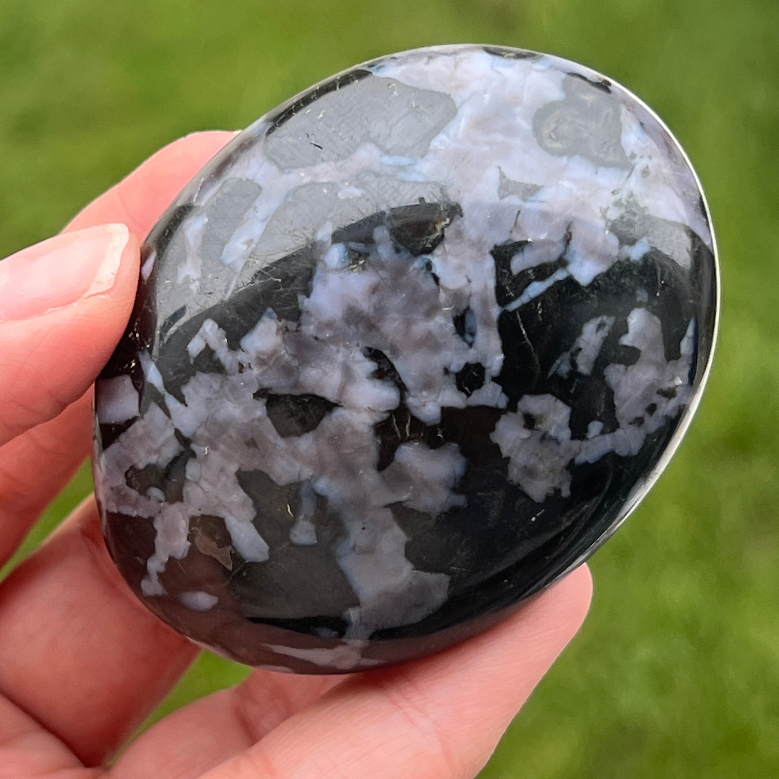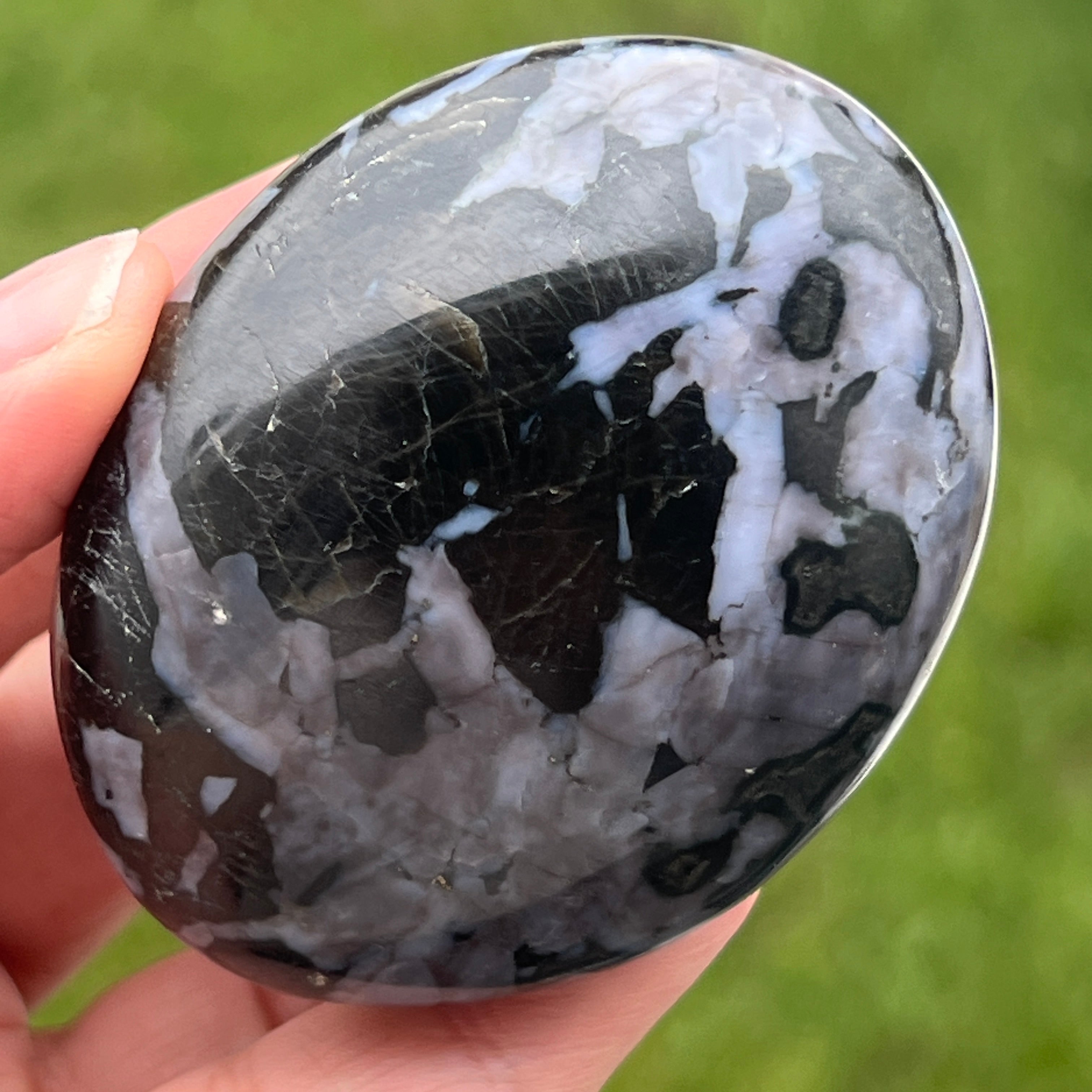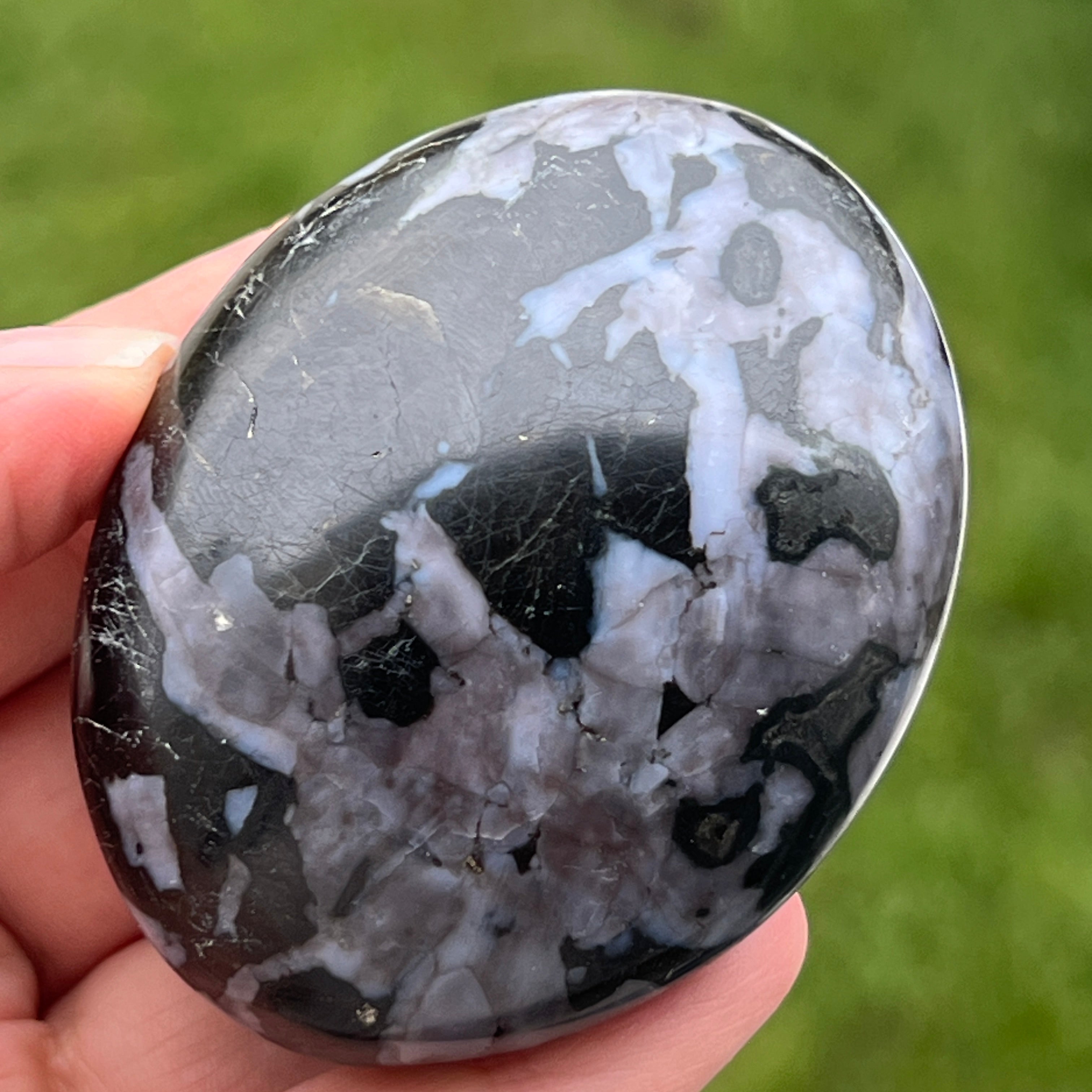 La merlinite est une pierre semi-précieuse rare et fascinante, reconnue pour sa combinaison de couleurs contrastées, blanc et noir, qui lui donne un aspect unique. Elle est considérée comme une variété d'opale dendritique ou un mélange de quartz et d'autres minéraux, et sa structure complexe lui confère une grande appréciation tant pour sa beauté que pour ses propriétés énergétiques supposées. La merlinite est connue dans le monde de la lithothérapie pour ses énergies mystiques et son association avec l'intuition, la clairvoyance et la connaissance spirituelle.
