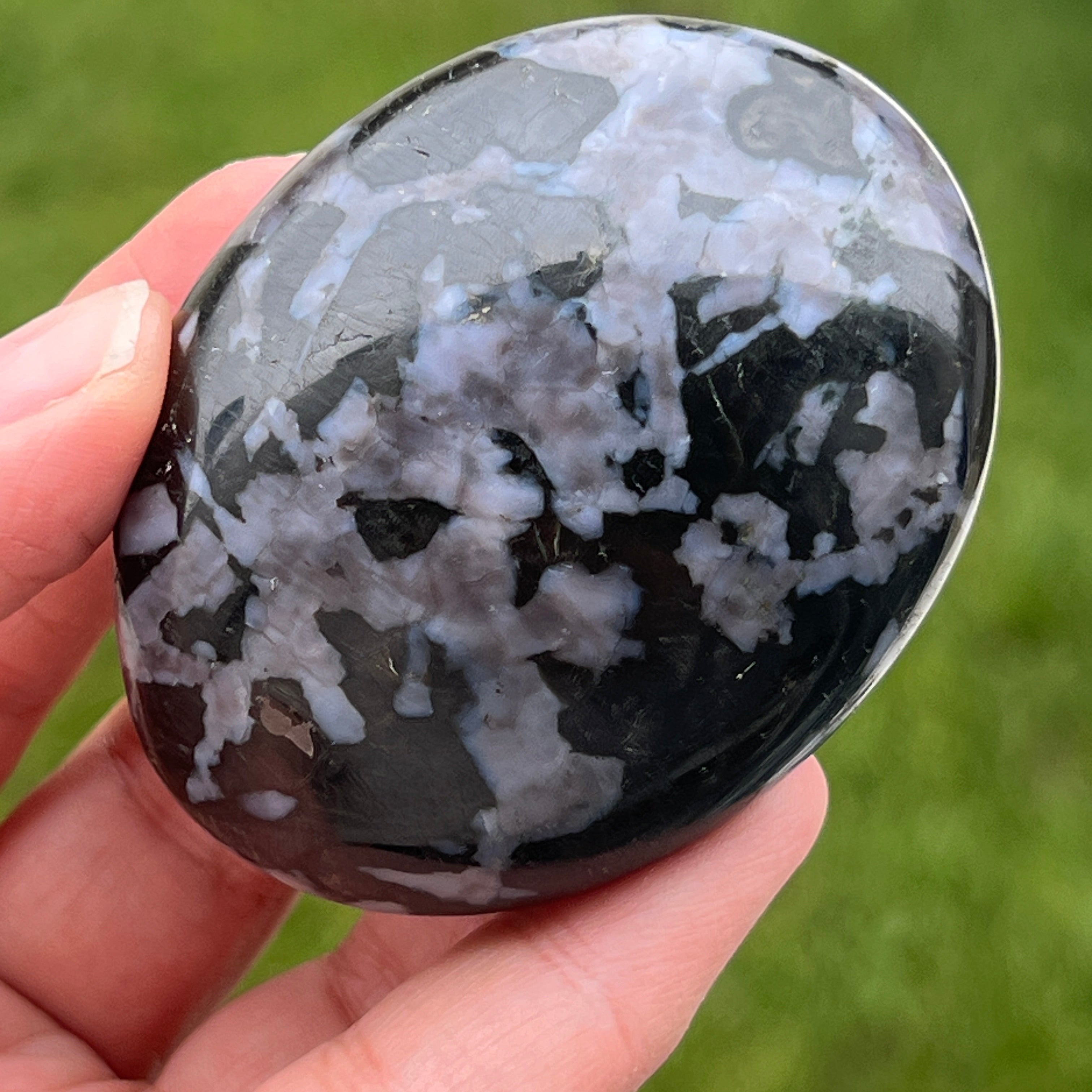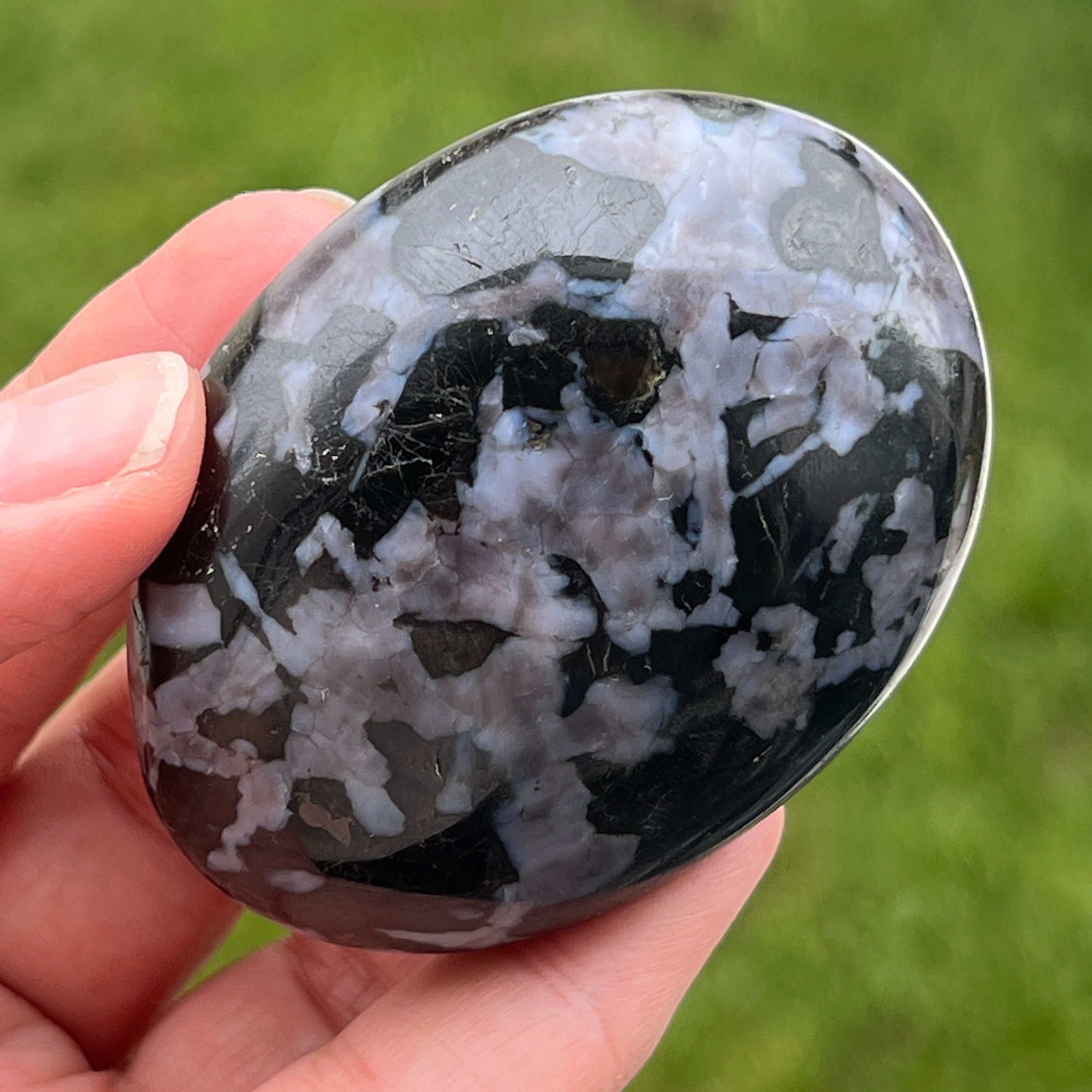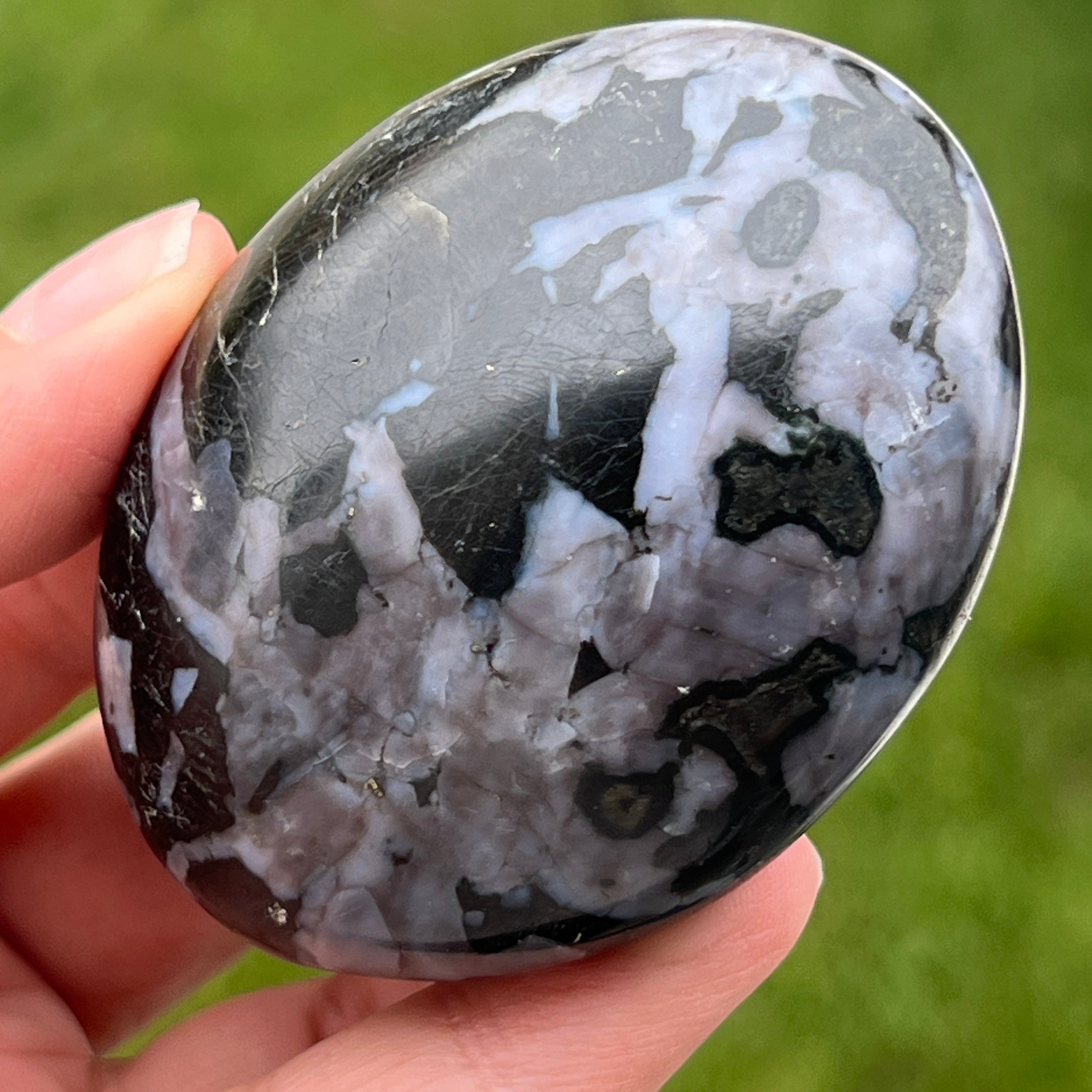 La merlinite est une pierre semi-précieuse rare et fascinante, reconnue pour sa combinaison de couleurs contrastées, blanc et noir, qui lui donne un aspect unique. Elle est considérée comme une variété d'opale dendritique ou un mélange de quartz et d'autres minéraux, et sa structure complexe lui confère une grande appréciation tant pour sa beauté que pour ses propriétés énergétiques supposées. La merlinite est connue dans le monde de la lithothérapie pour ses énergies mystiques et son association avec l'intuition, la clairvoyance et la connaissance spirituelle.