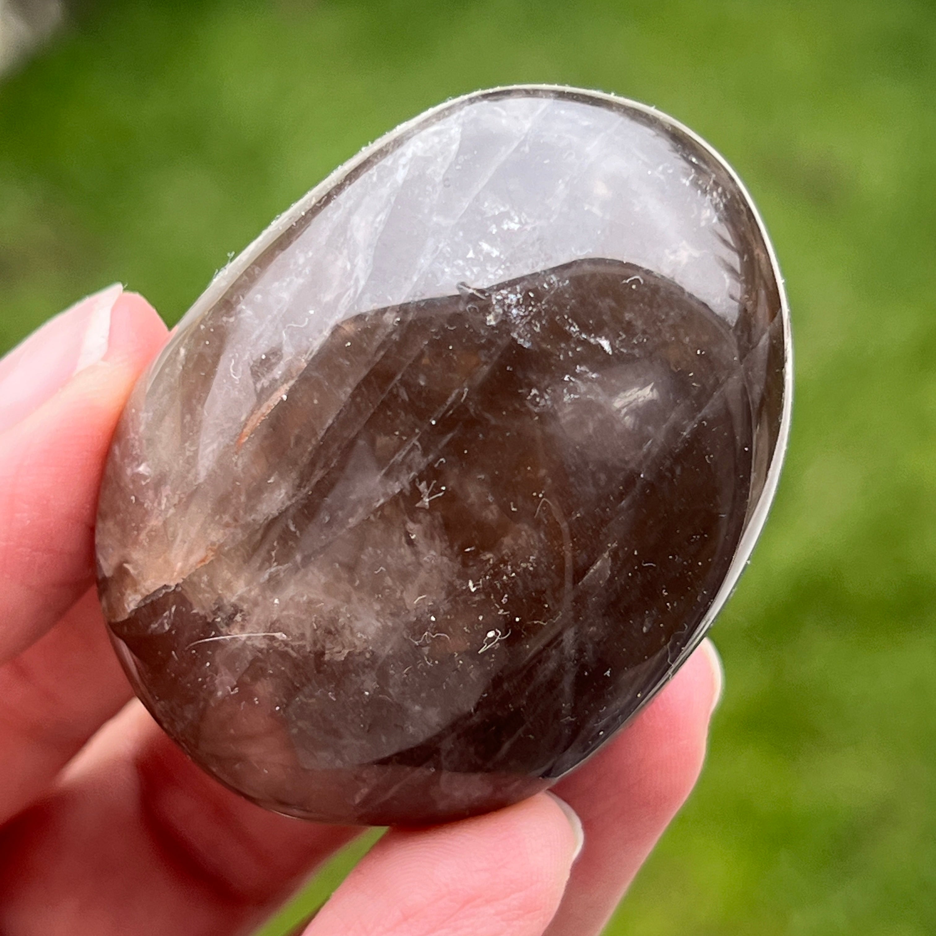Soigneusement façonnée pour s'adapter parfaitement à votre paume, cette pierre de palme en quartz fumé n'est pas seulement une pierre : c'est un point d'appui au milieu de l'agitation quotidienne. Avec ses teintes terreuses, du brun translucide aux tons plus profonds, le quartz fumé porte en lui le calme des roches anciennes et la patience des montagnes.