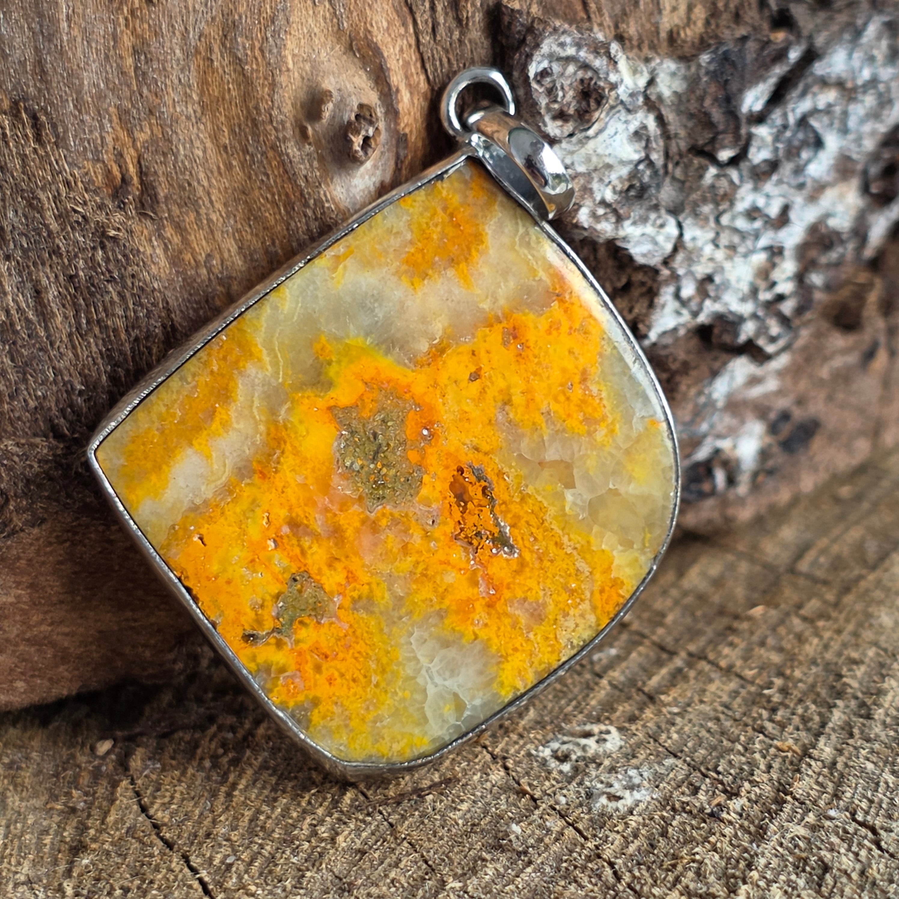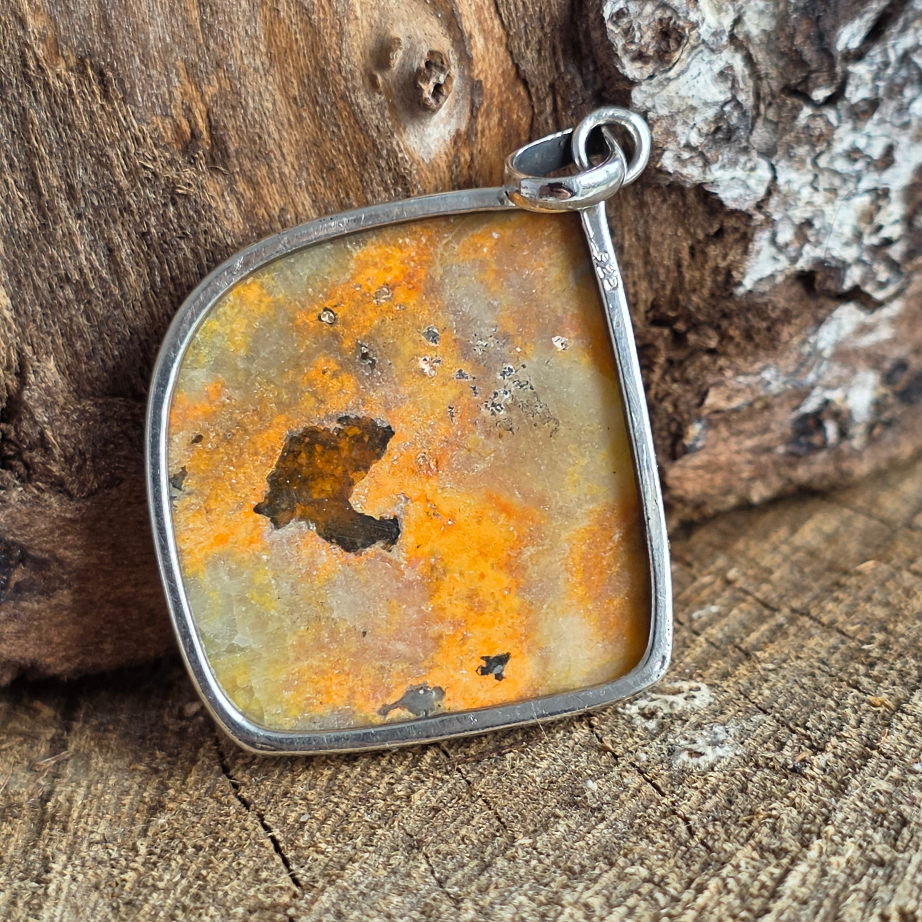 • Piatra: Bumblebee Jasp natural (nuanțe galben-portocalii cu incluziuni gri și ocru) model unicat – primești exact produsul prezentat în imagini