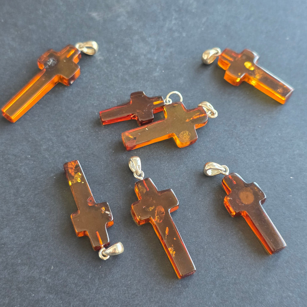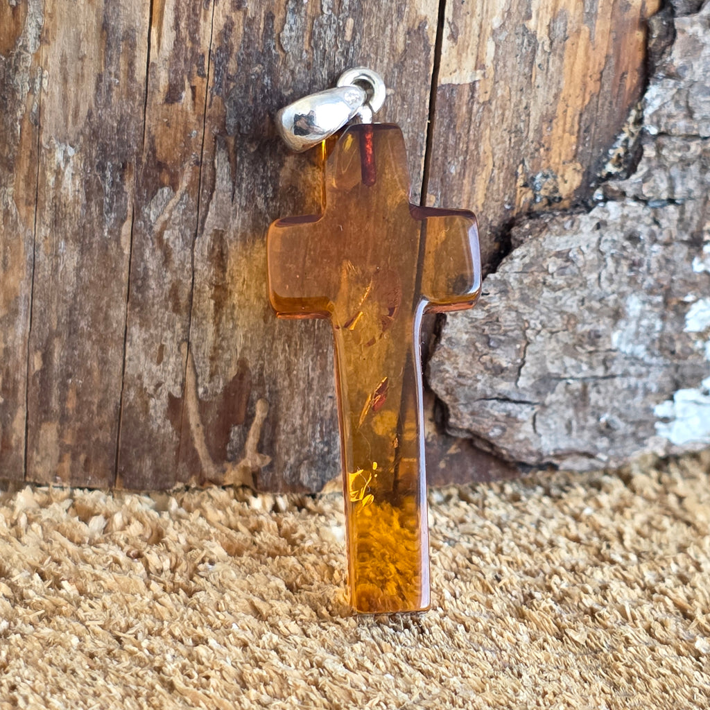În tradițiile vechi, chihlimbarul era considerat o piatră sacră a curățării și a purității, asociată cu bucuria, seninătatea și protecția divină. Sub forma unei cruci, devine un talisman al credinței liniștite și al speranței care nu se stinge.