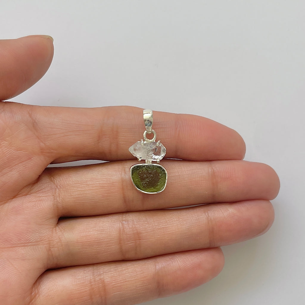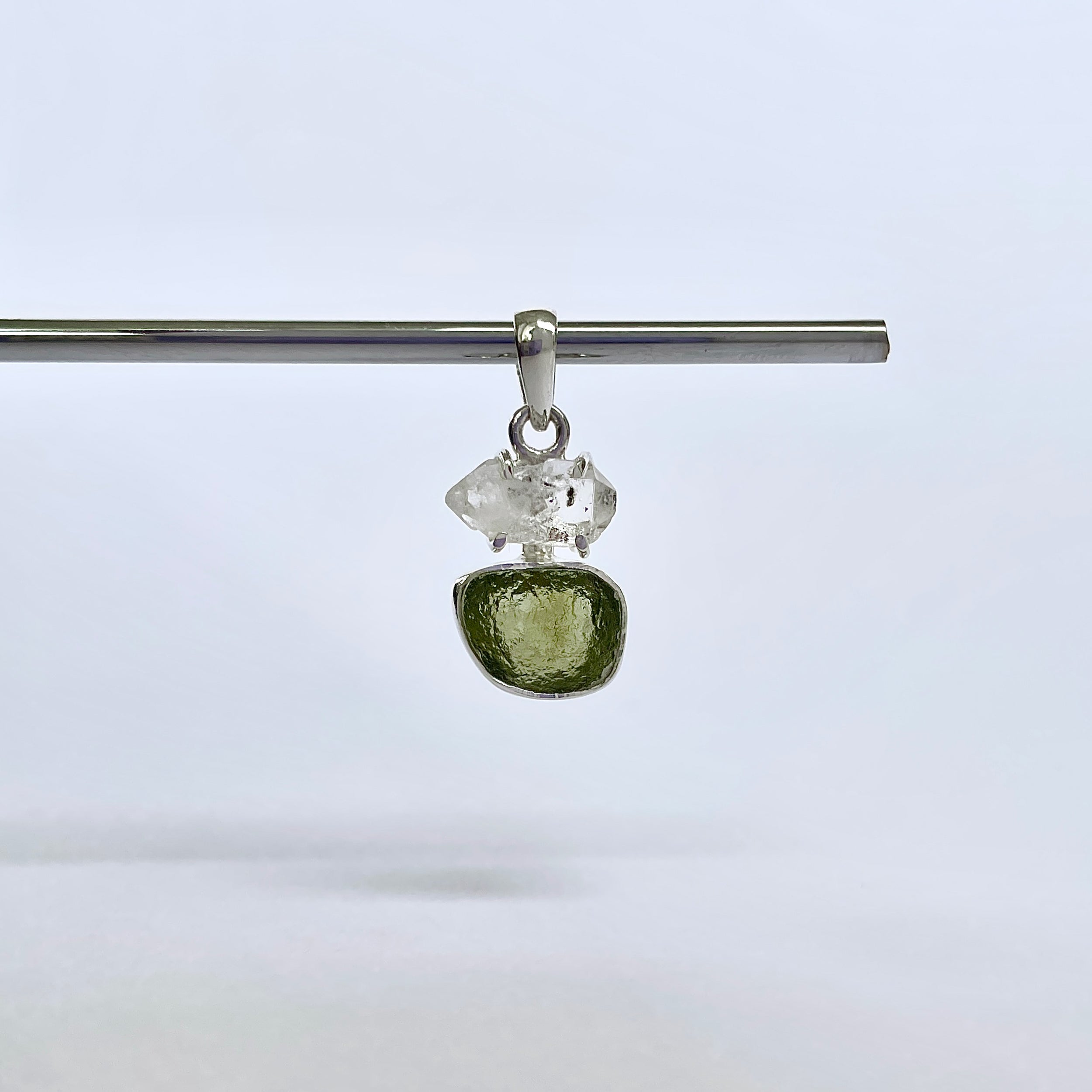 Dimensiune pietre: Moldavit ~ 1.1 x 0,8 cm, Herkimer ~ 1.2 x 0,6 cm