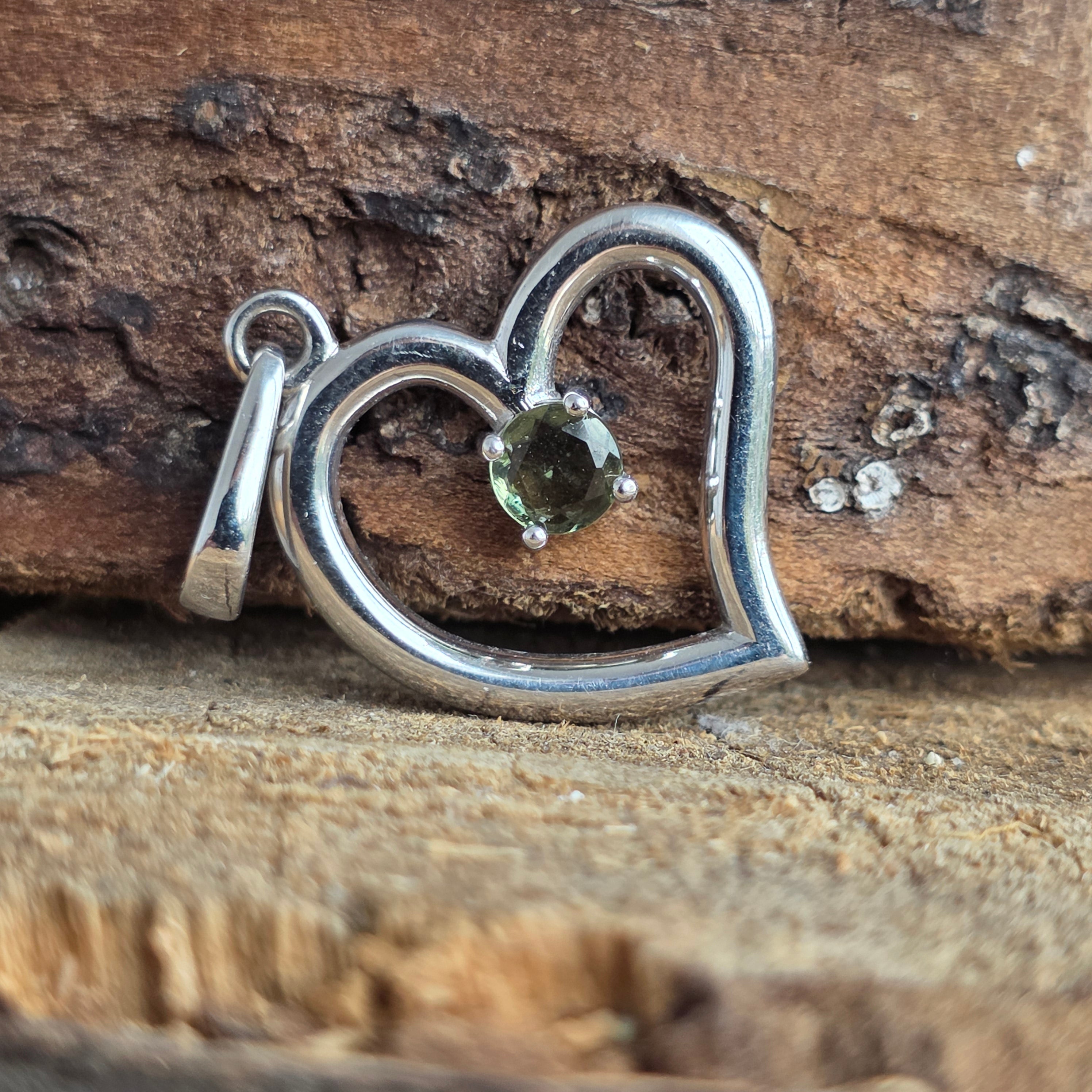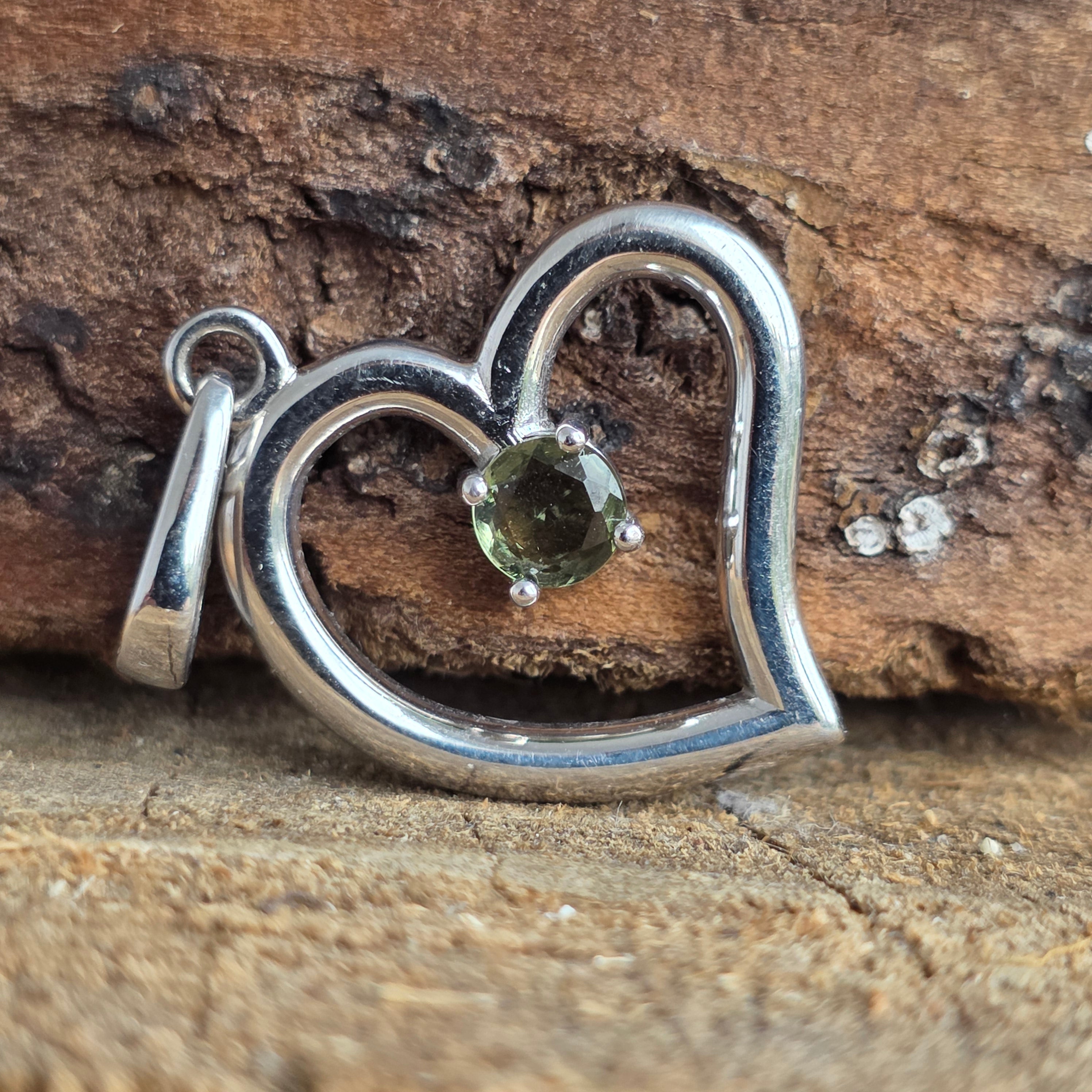Ce pendentif délicat, composé de 925 argent, combine le symbole intemporel du cœur avec la mystérieuse luminosité du Moldavit naturel. Central monté, le Moldavit à facettes attire la lumière et ajoute une note subtile de vert profond, qui contraste élégamment avec de l'argent brillant.