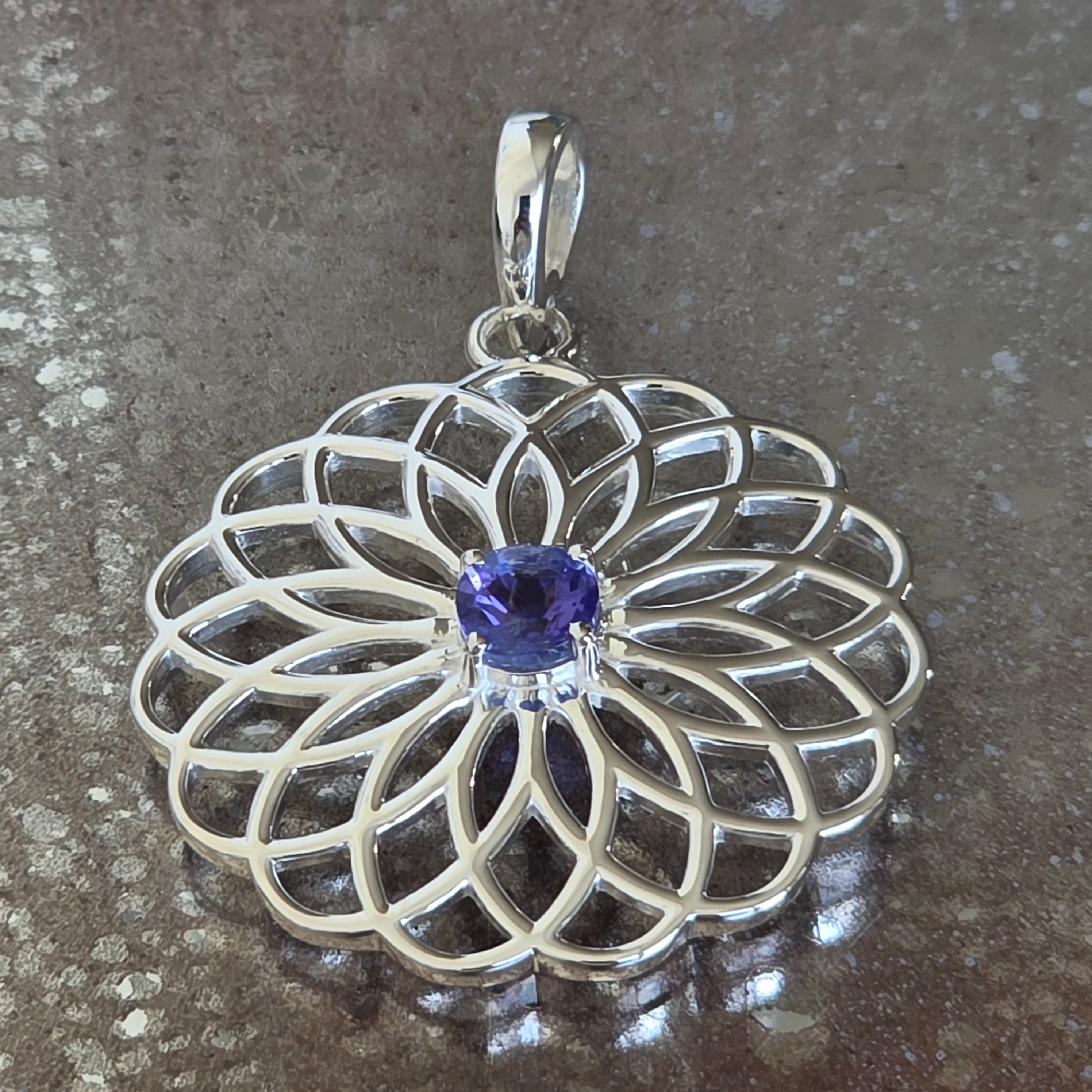 Description - Pendentif argent 925 tanzanite | Fleur de la Vie