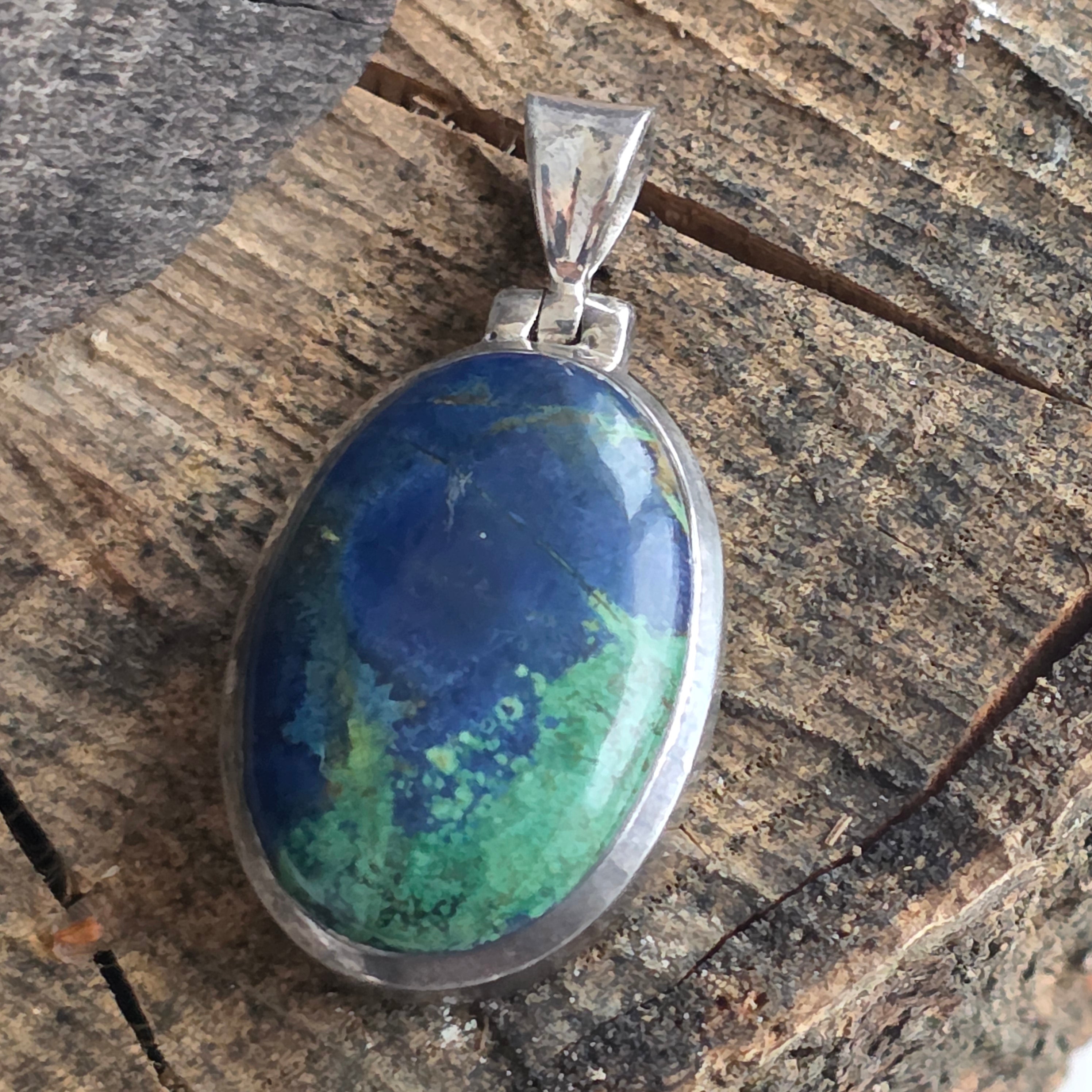 Pendentif azurite-malachite en argent | Modèle 2