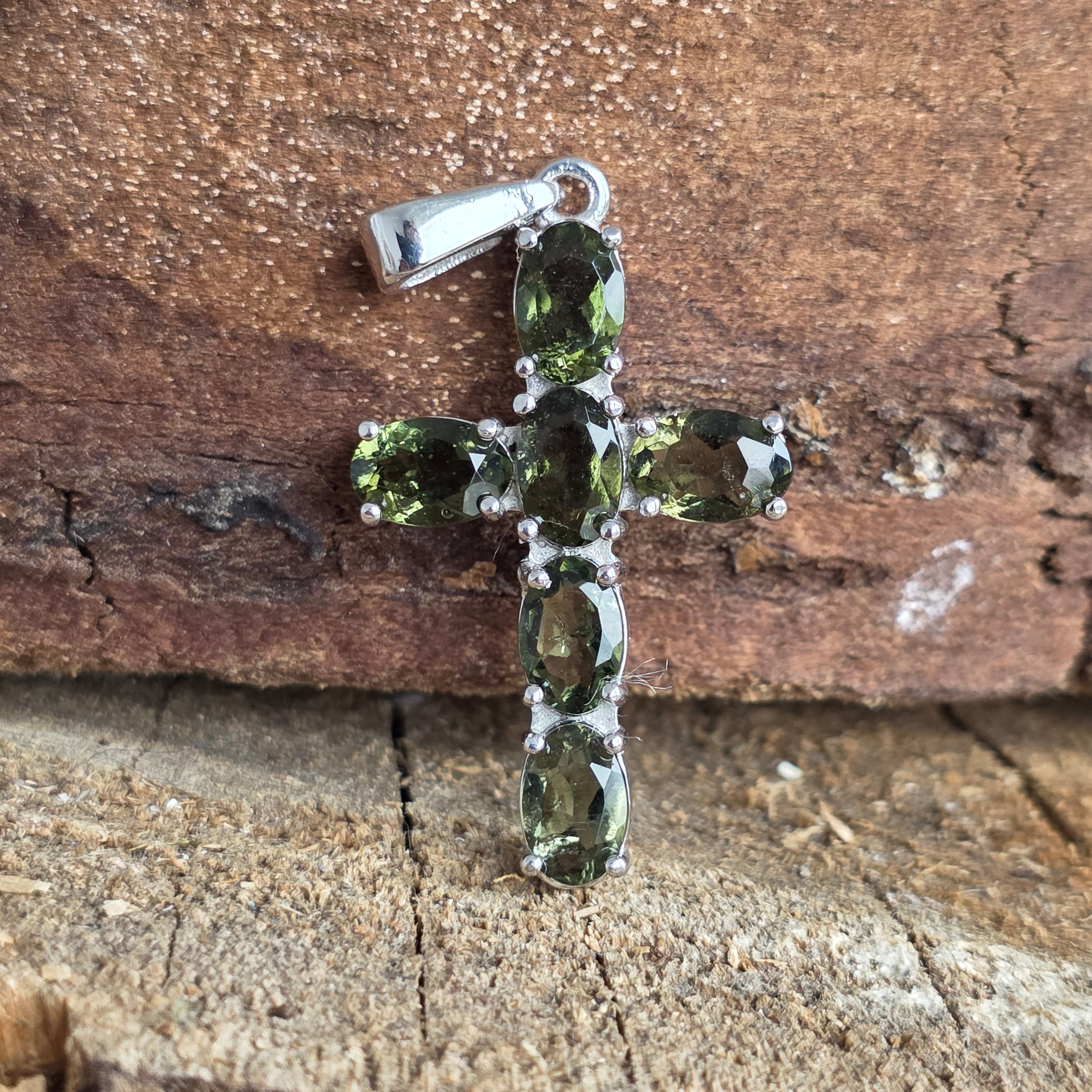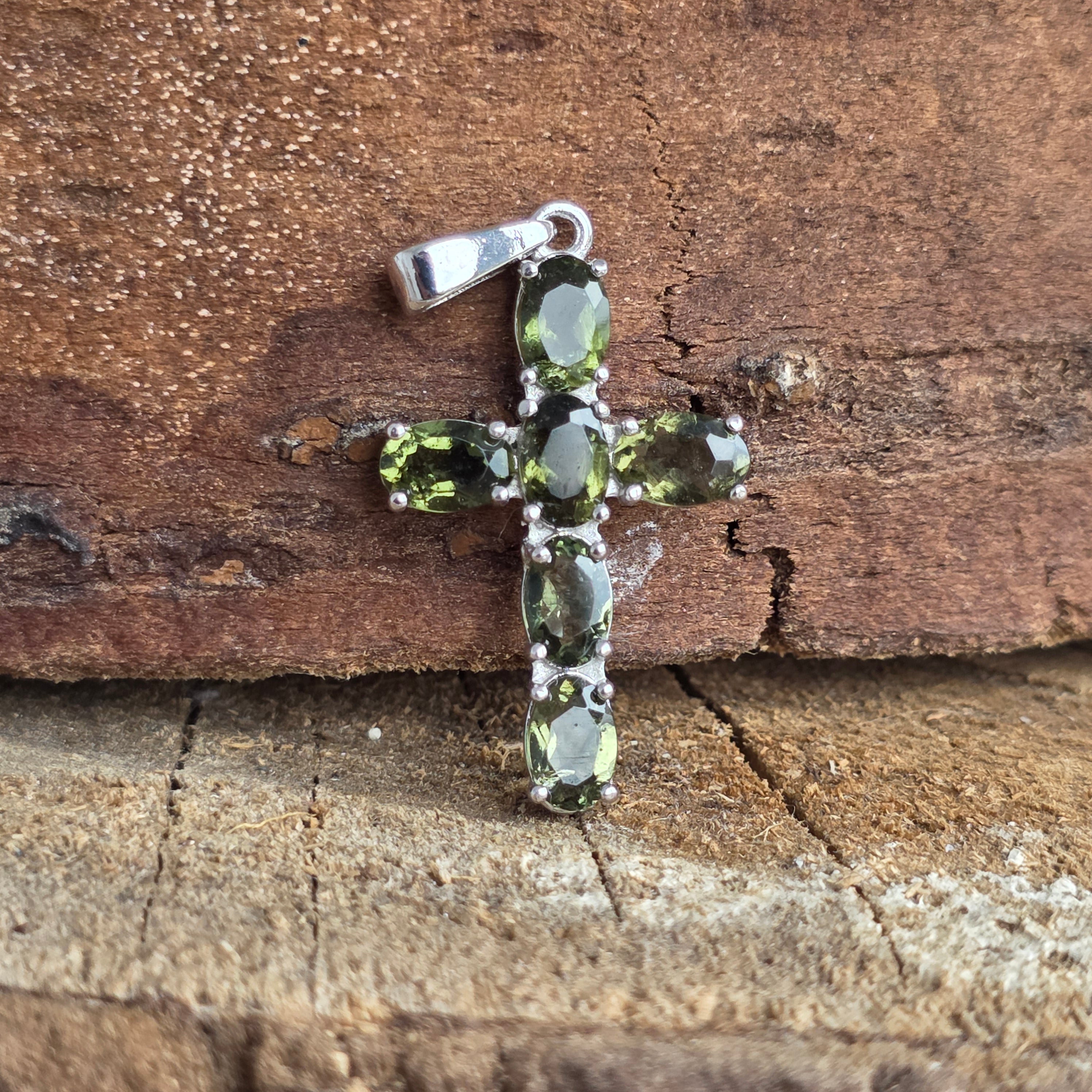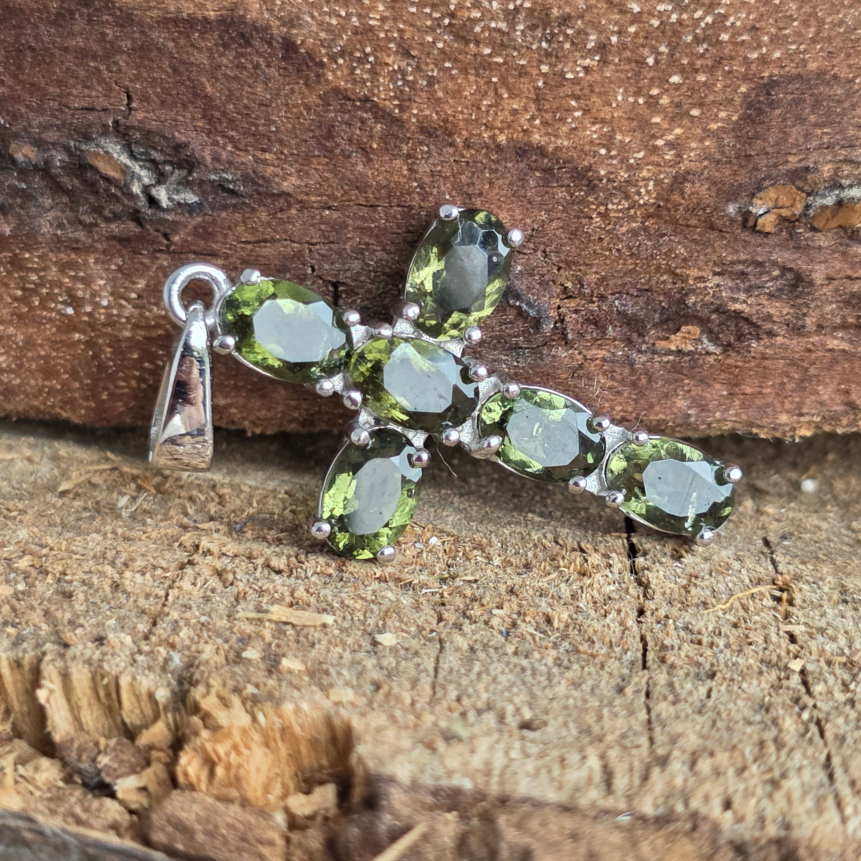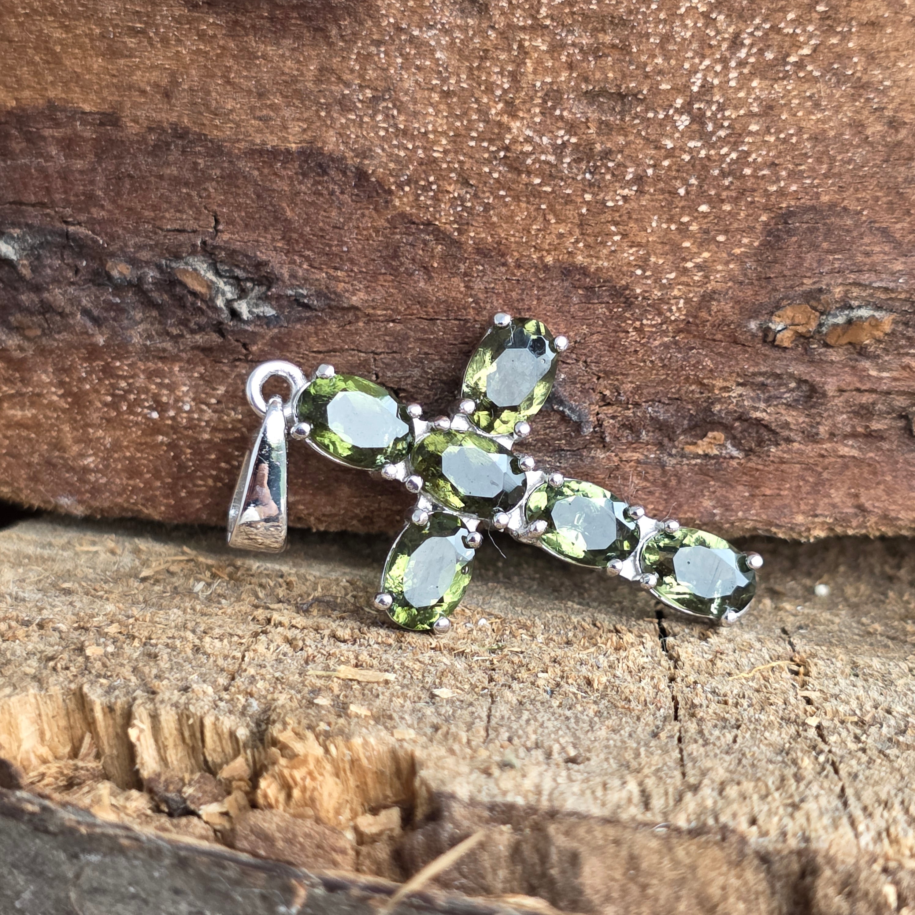 Taille du pendentif : 2,8 cm * 1,6 cm * 0,4 cm, contient 6 morceaux de moldavite ovale de taille 6 * 4 mm/chacun.