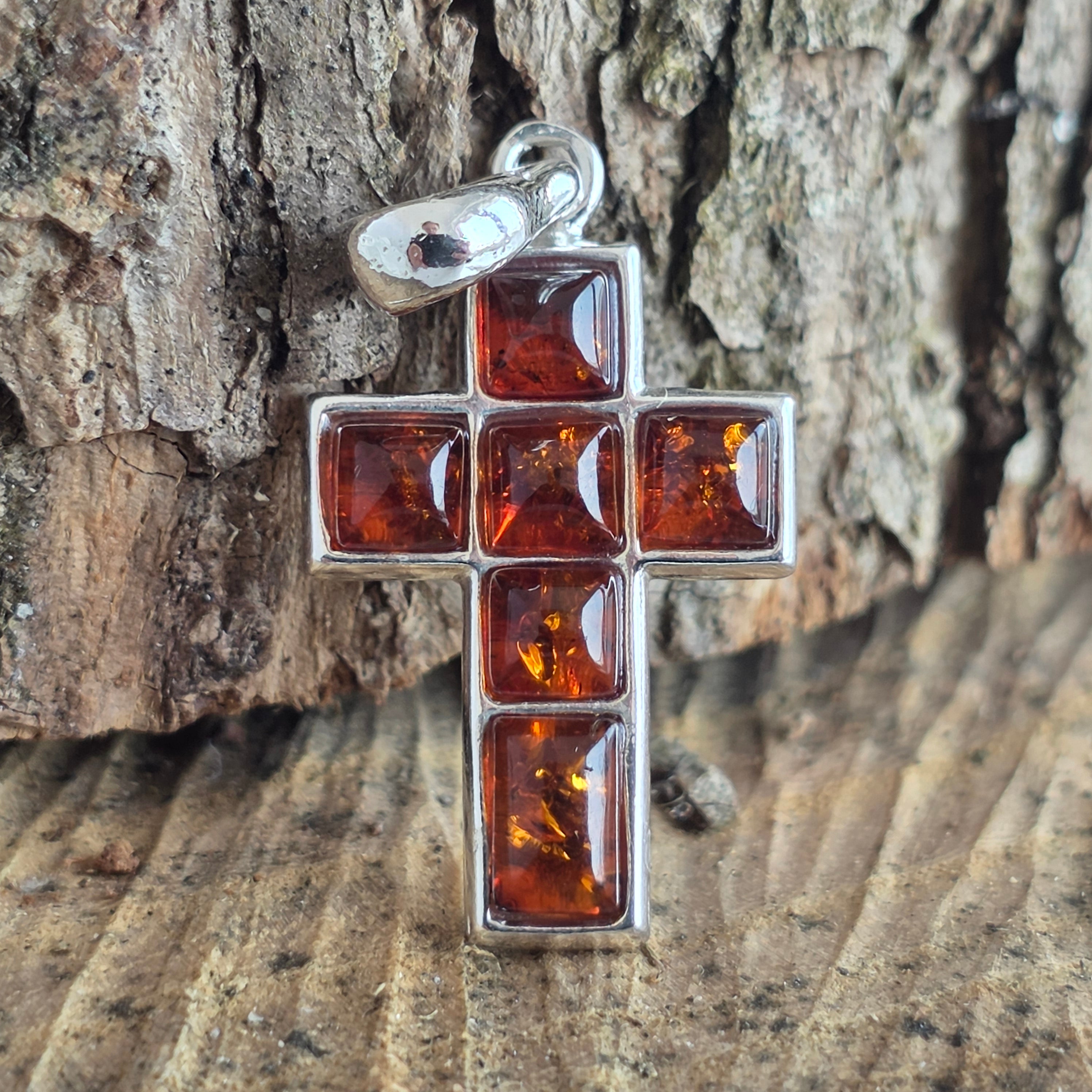 Pendentif en argent avec croix ambrée en forme d’Amber30