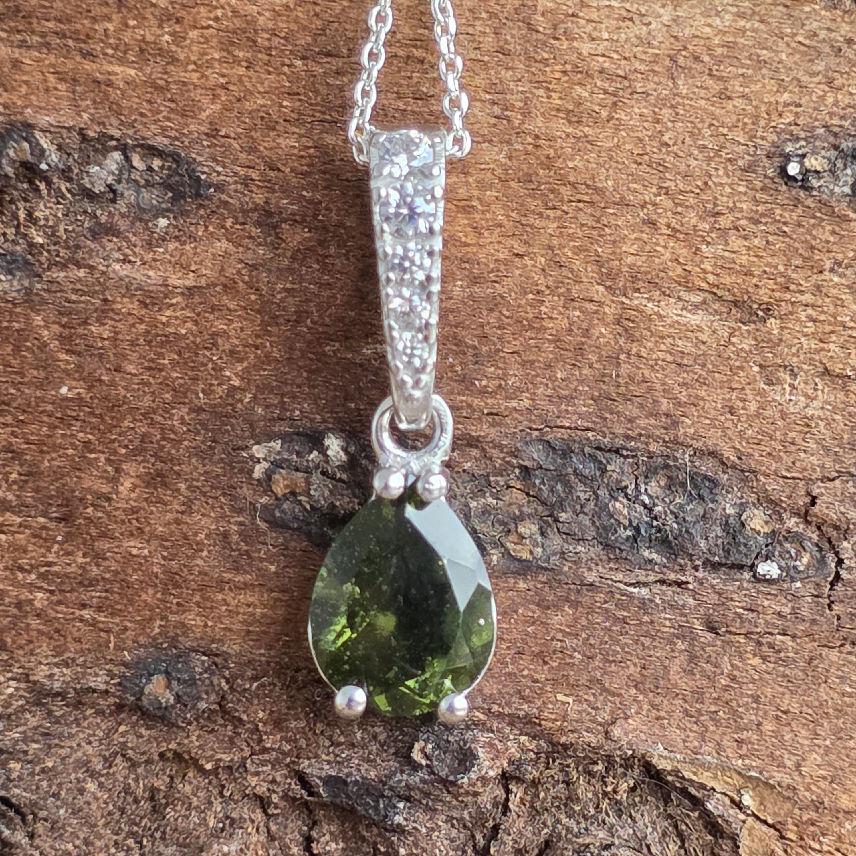 Matériaux du pendentif : moldavite, zircone cubique, argent