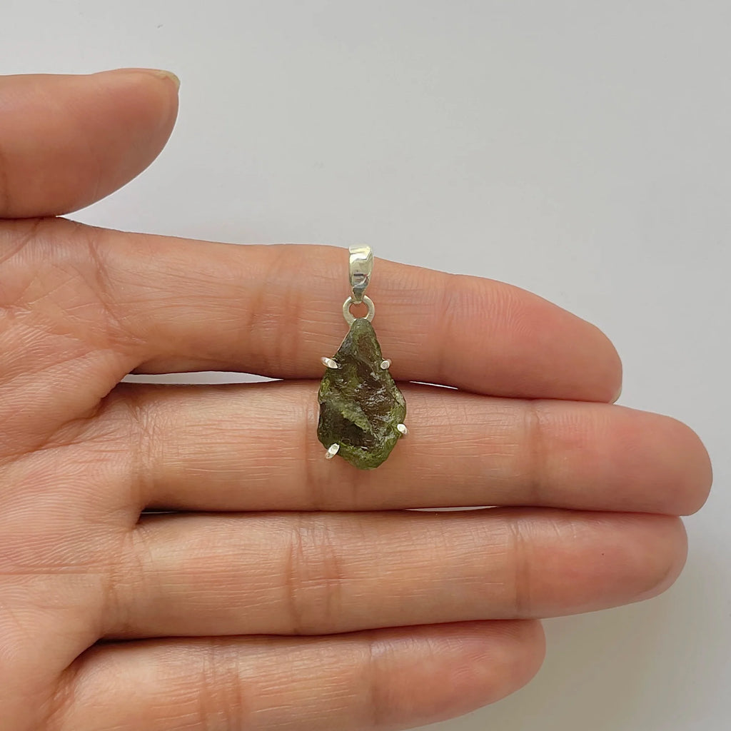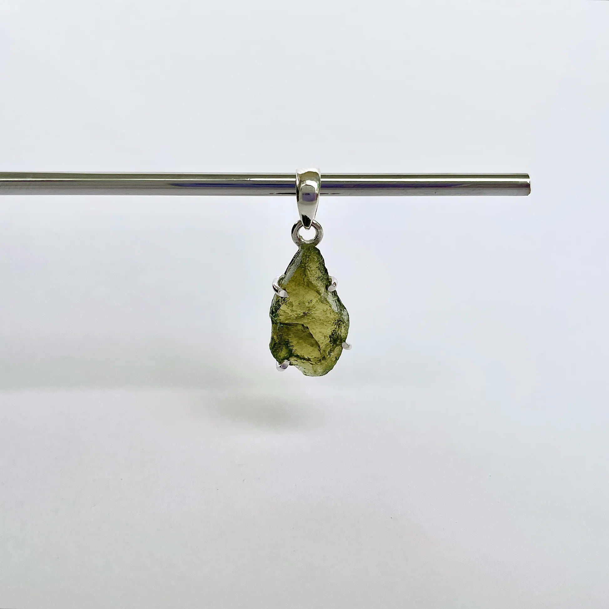 Un pendentif rare et authentique, avec Moldavit Brut, monté de manière minimaliste Argent 925 pour mettre en valeur sa forme naturelle.