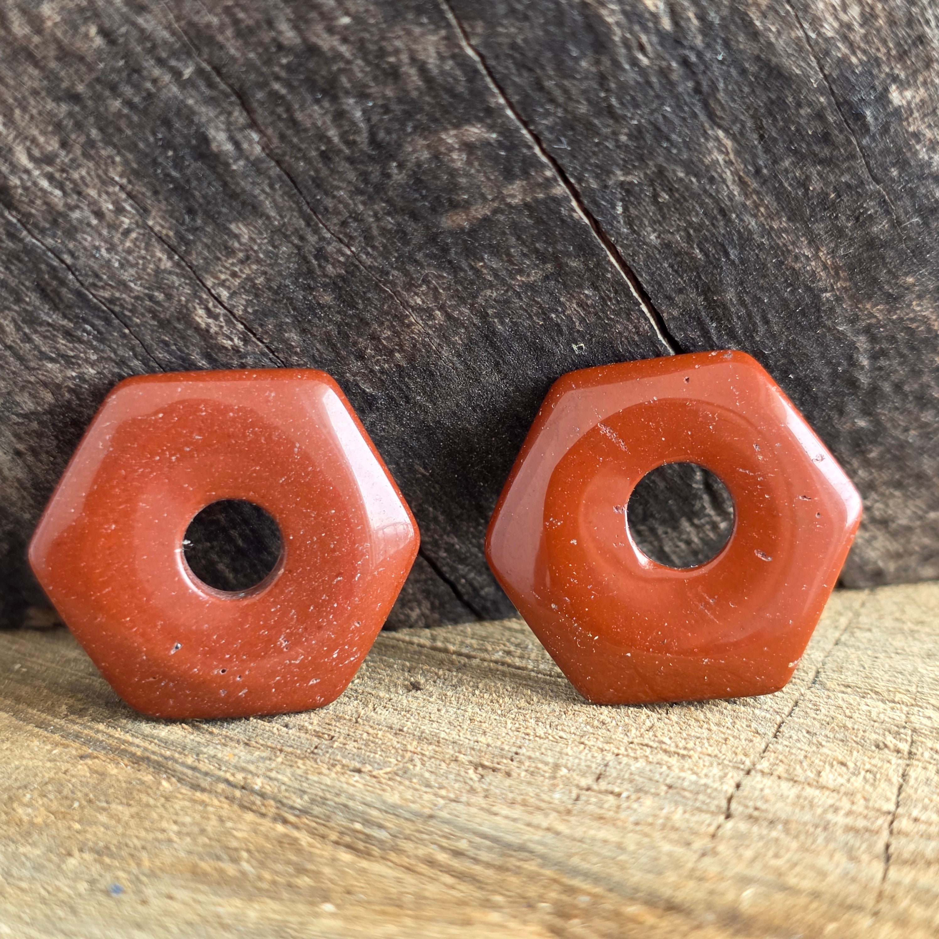 Pendentif en pierre donut pi hexagone jaspe rouge