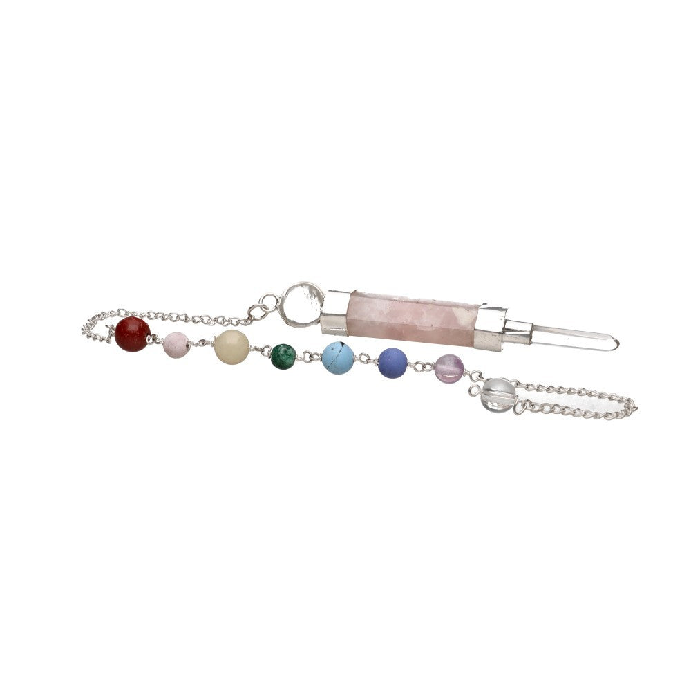 Description - Pendul indian cuart roz cu snur 7 chakre