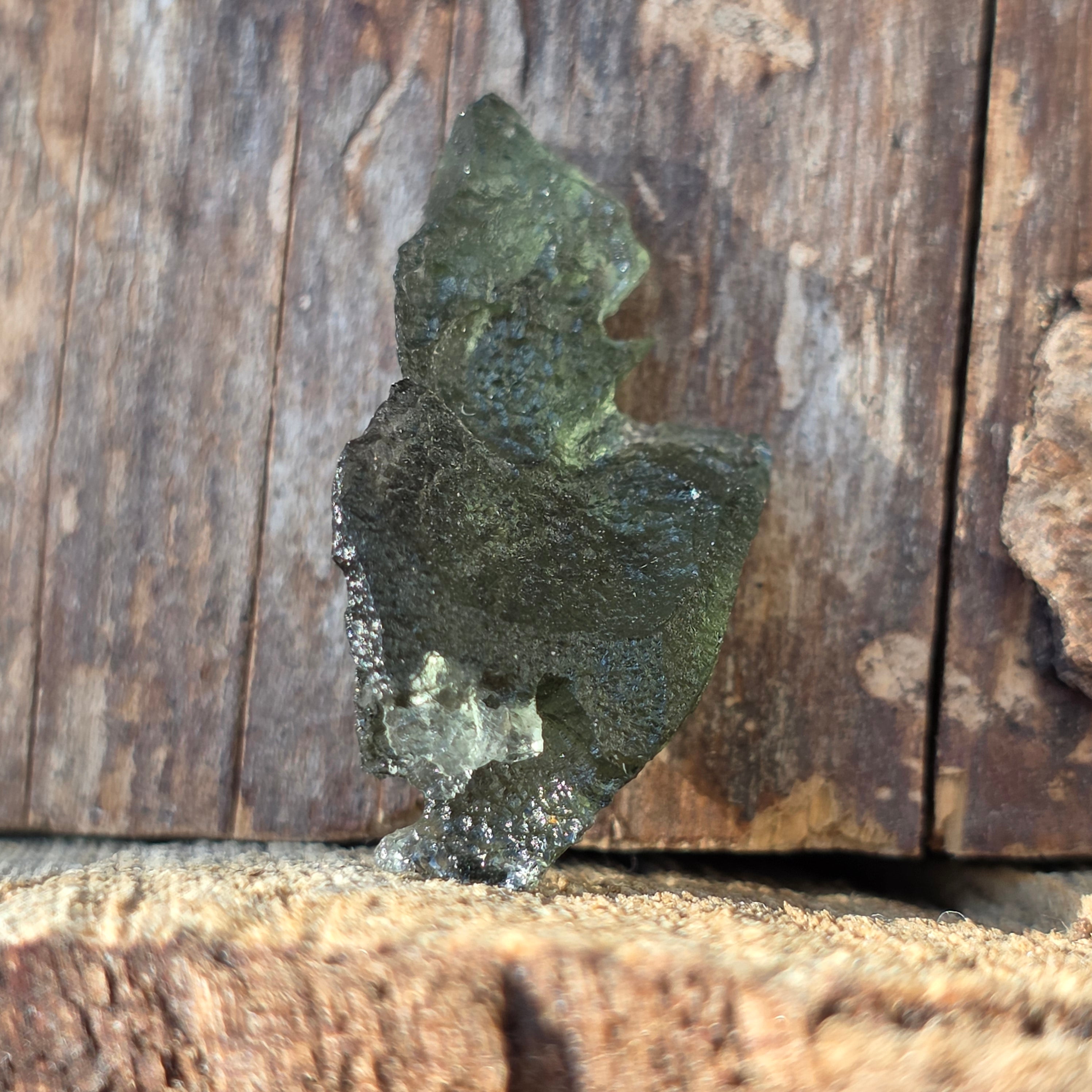 Moldavite est une pierre née de la fusion de la Terre avec le ciel, formée il y a 15 millions d'années lors de l'impact d'une météorite en Bohême. Son vert translucide et ses formes sculptées par le feu cosmique en font non seulement un cristal rare, mais également une véritable relique stellaire.