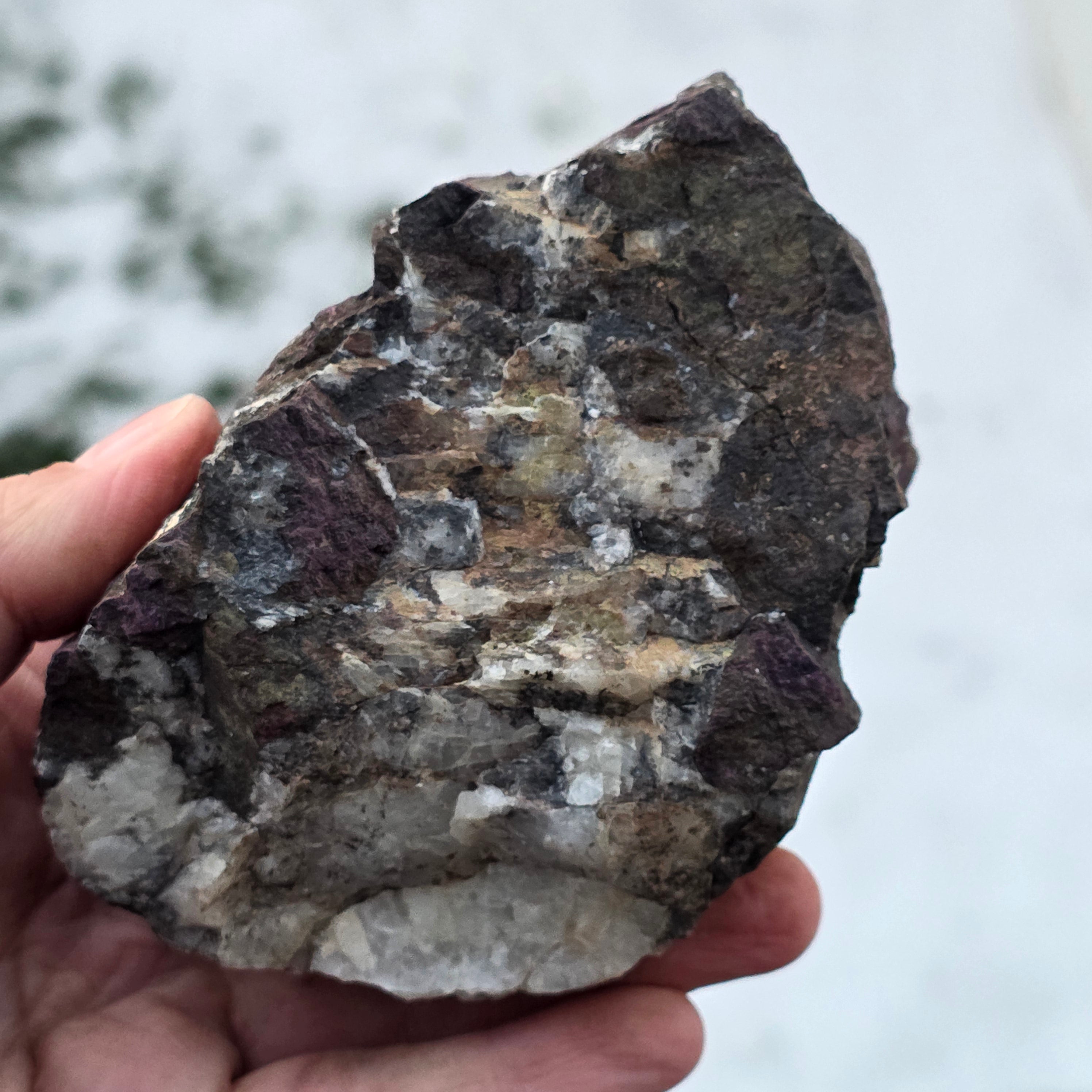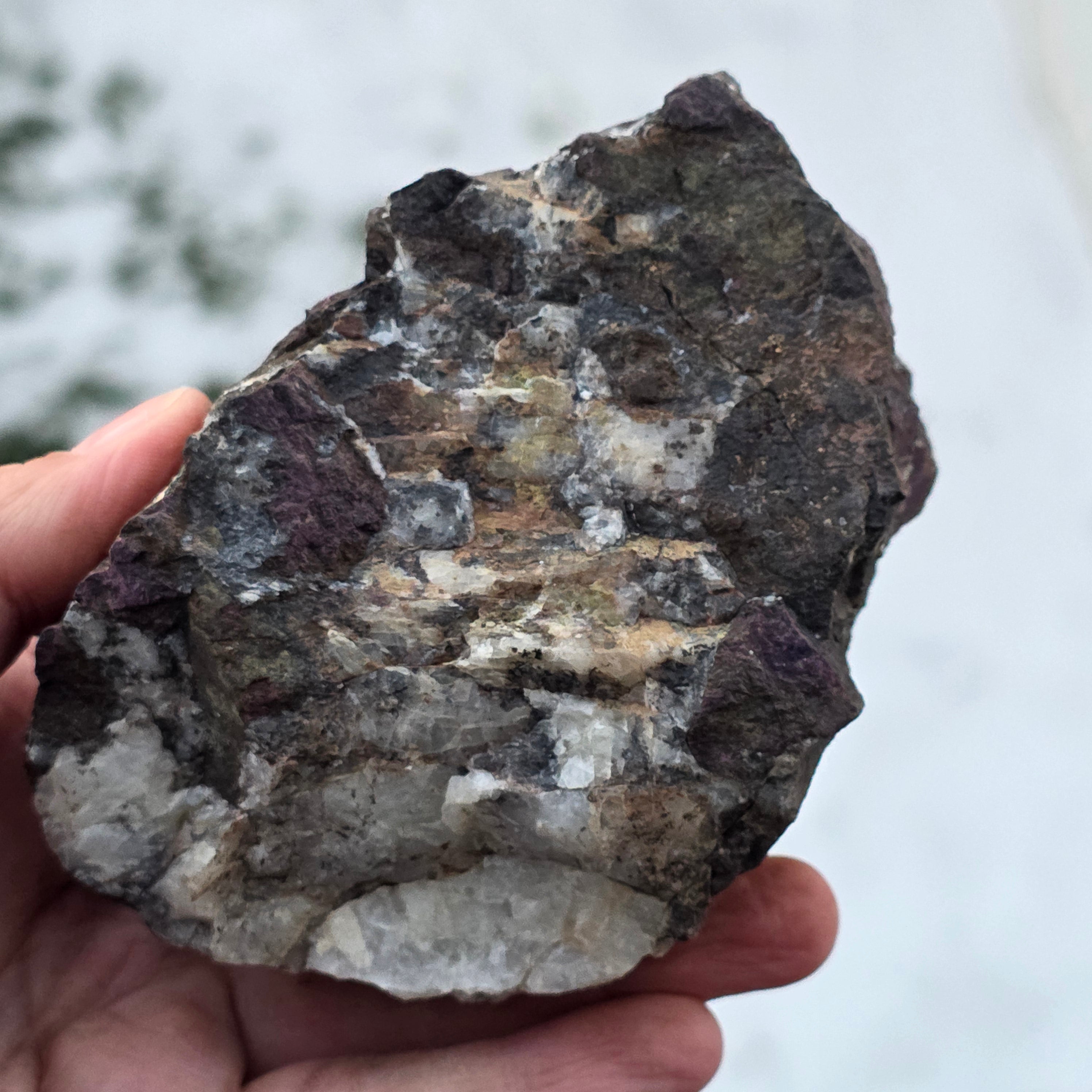 La purpurite se compose d'un minéral appelé "violet", qui est un manganèse et un phosphate de fer. La purpurite peut avoir une texture granulaire et peut varier dans l'intensité de sa couleur.