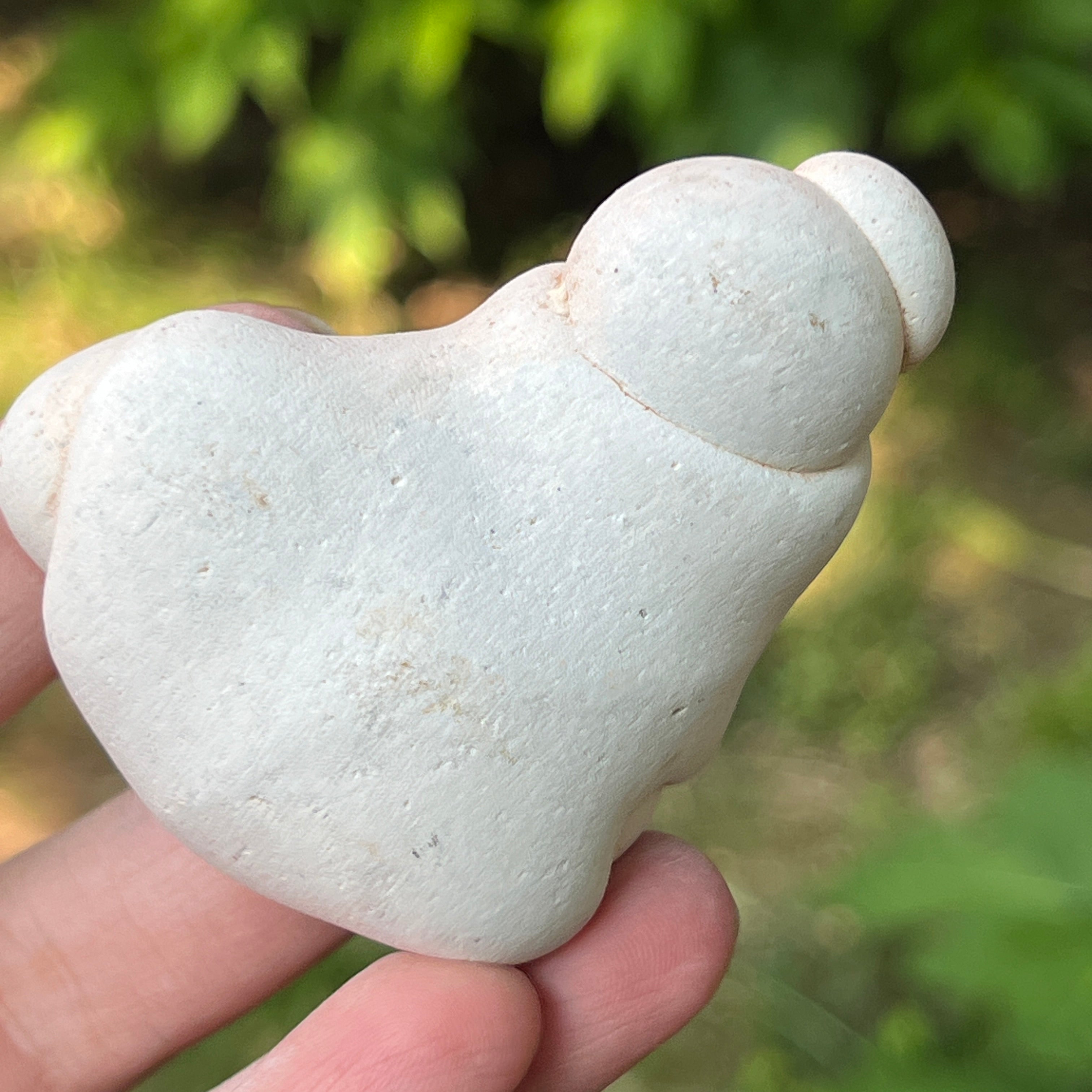 Ses formes douces et arrondies rappellent les statues préhistoriques de la déesse mère-déesse que Vénus de Willendorf.