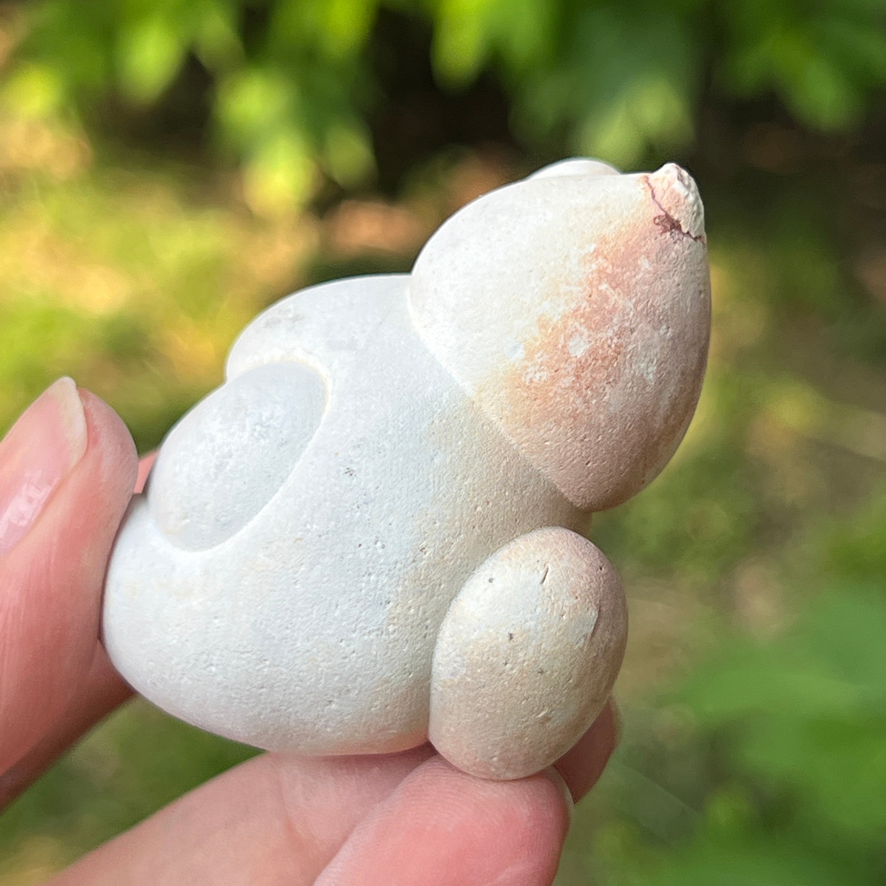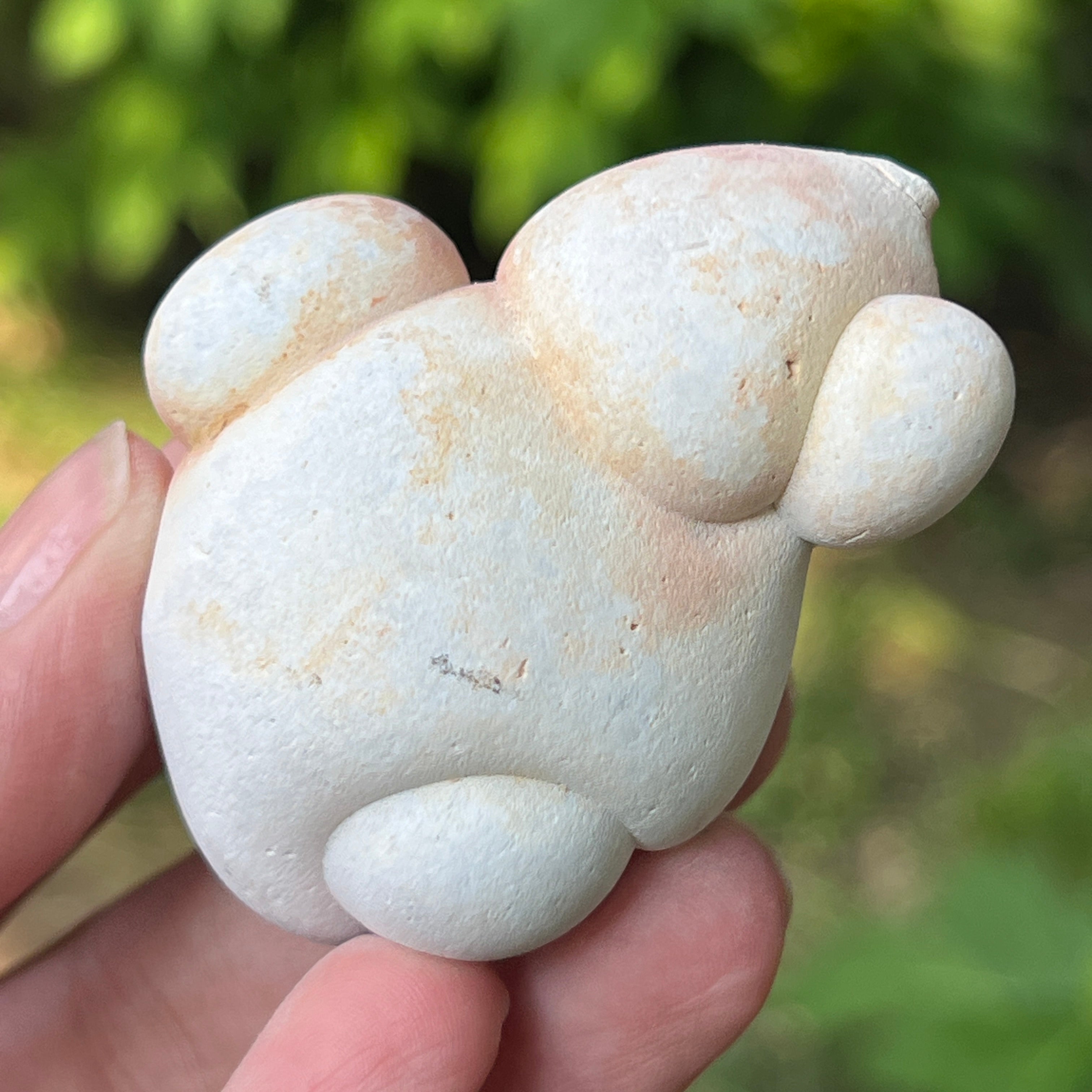 Ses formes douces et arrondies rappellent les statues préhistoriques de la déesse mère-déesse que Vénus de Willendorf.