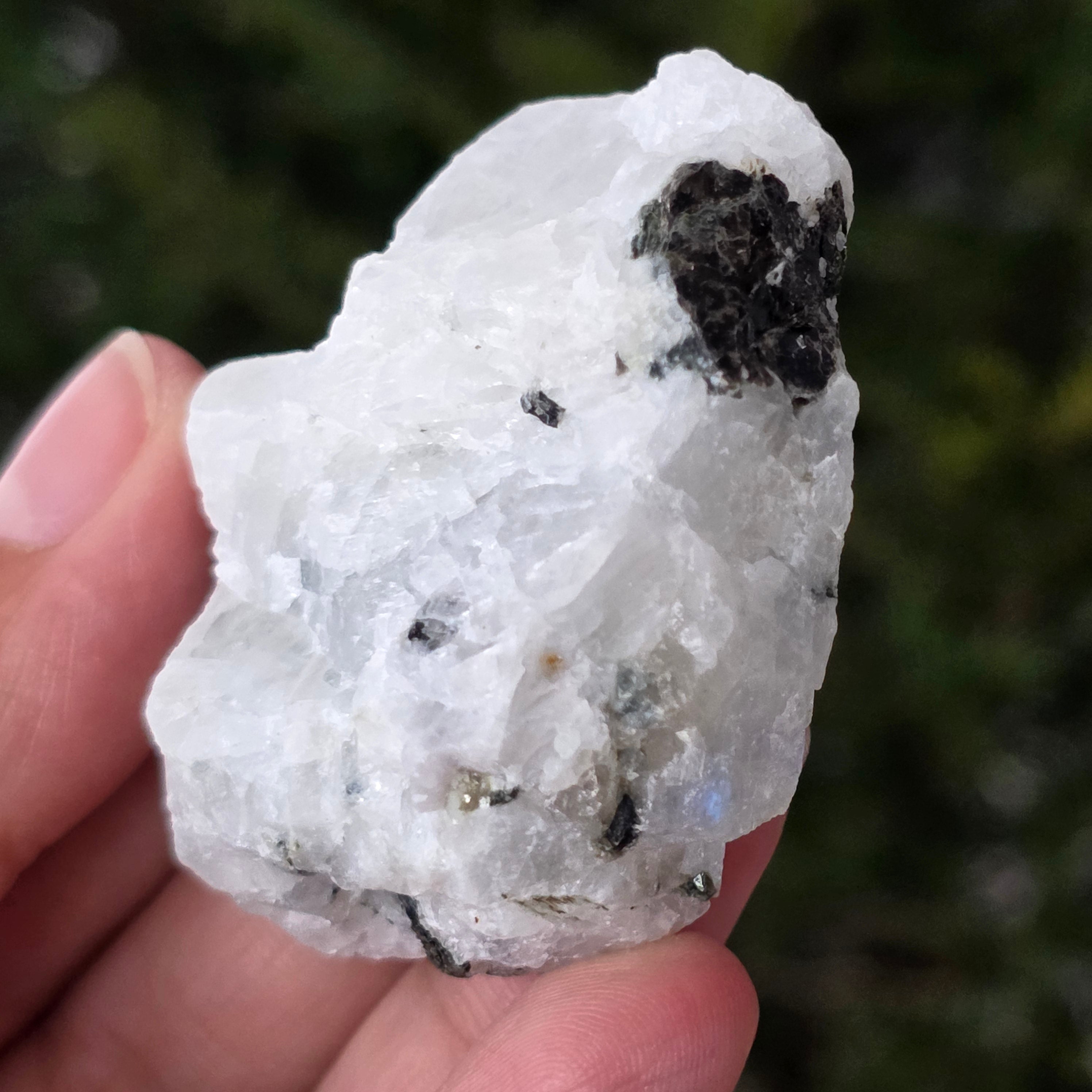 Description - Pierre de lune avec inserts de tourmaline - pierre brute m11