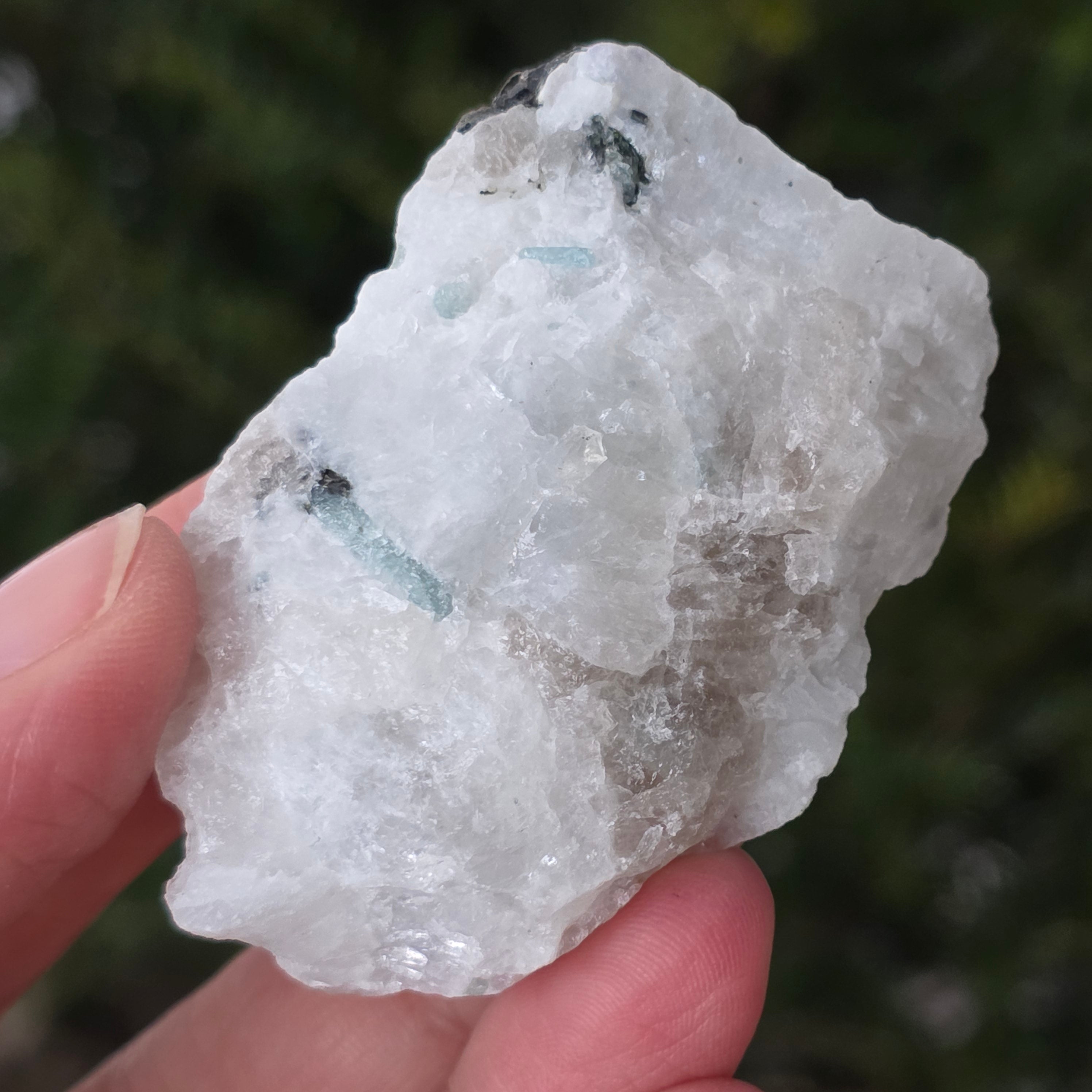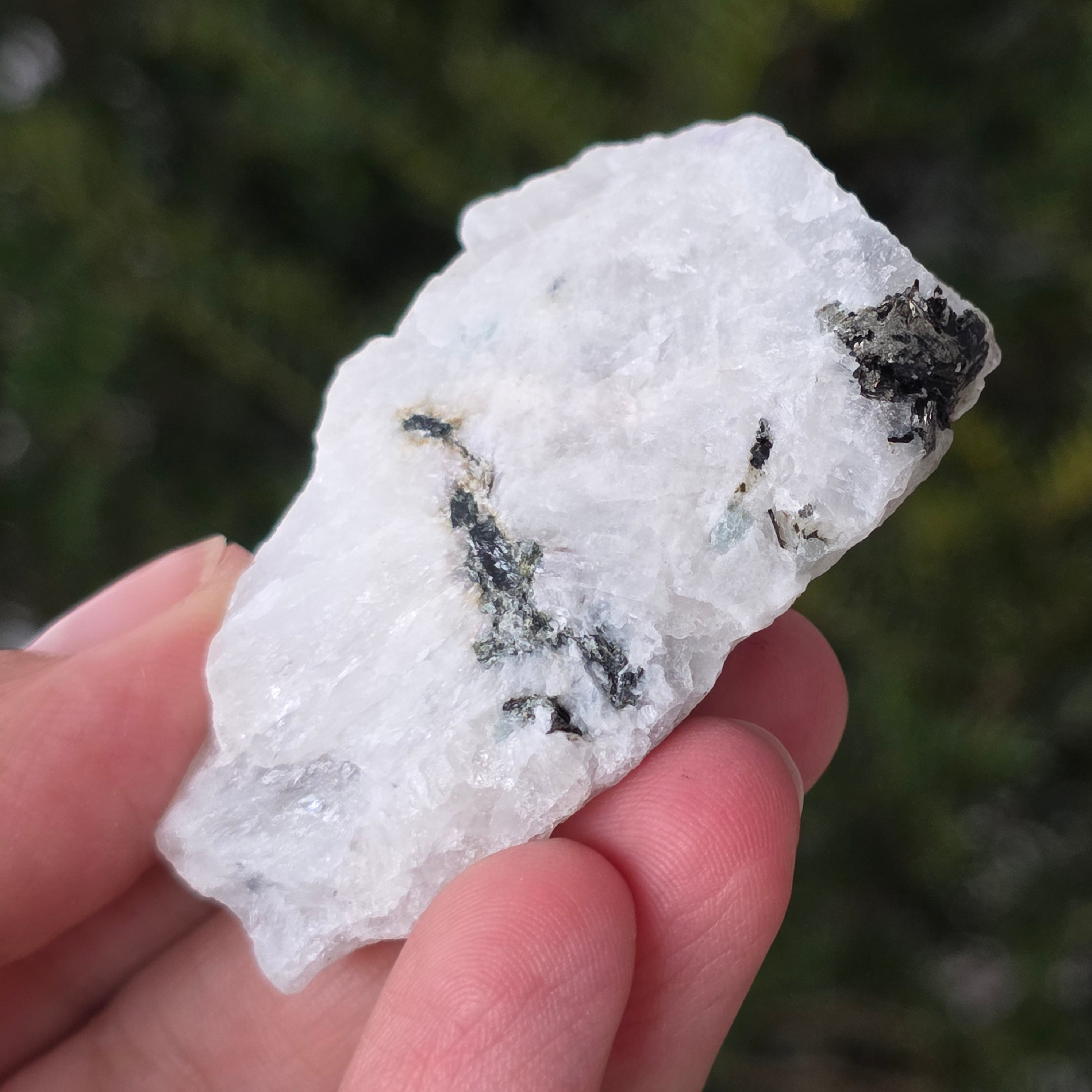 Pierre de lune avec inserts de tourmaline - pierre brute m7, taille : 5.5 * 3.5 * 1.8cm