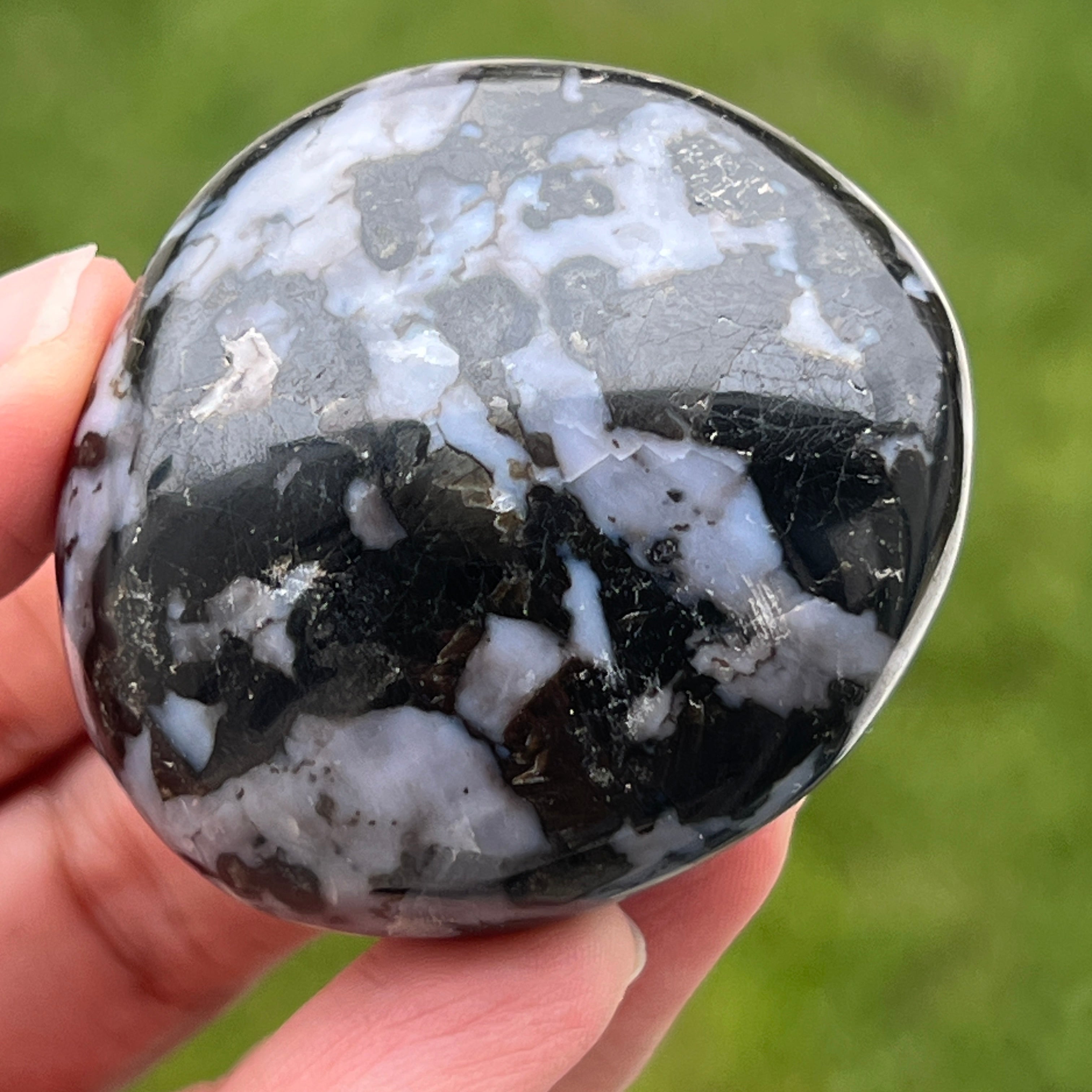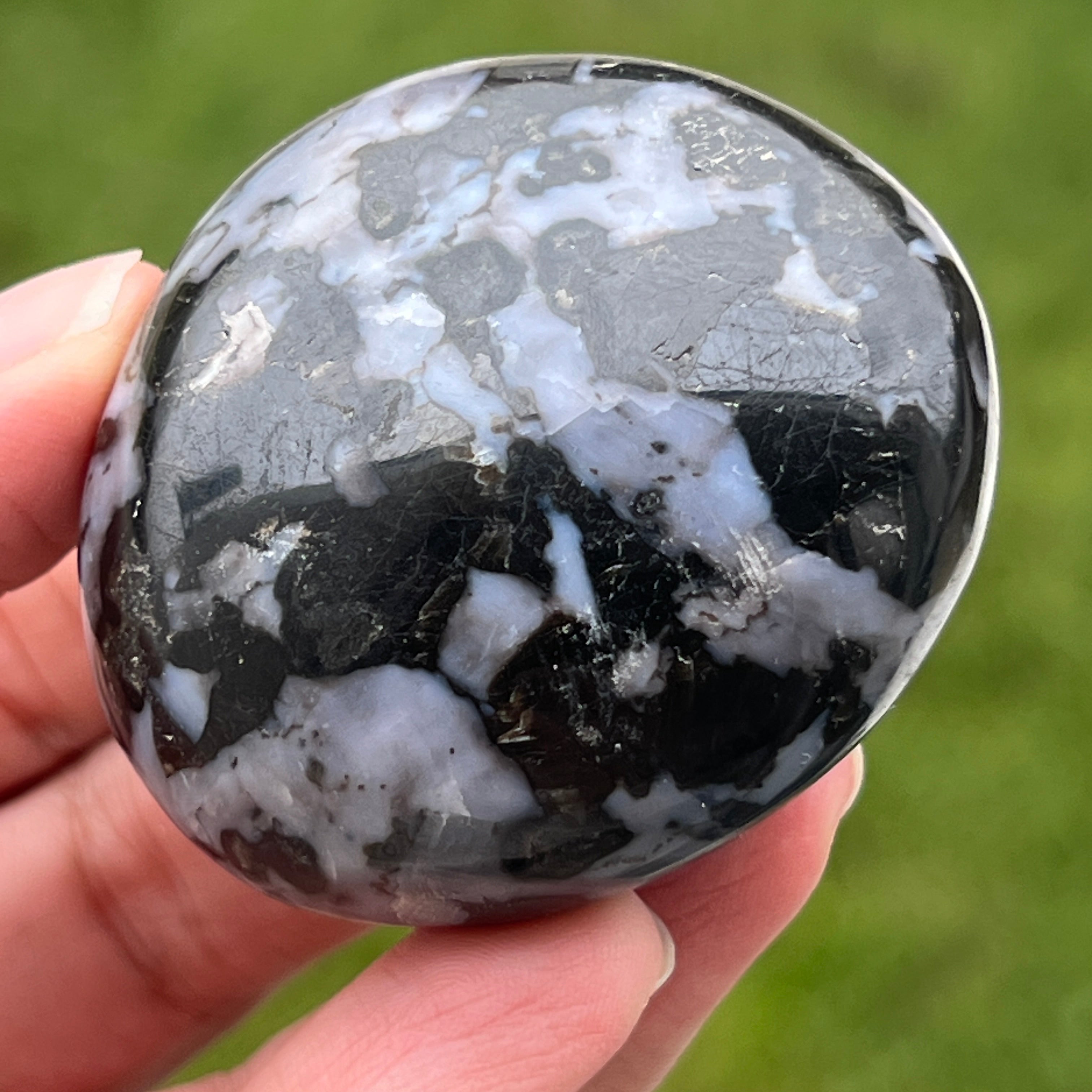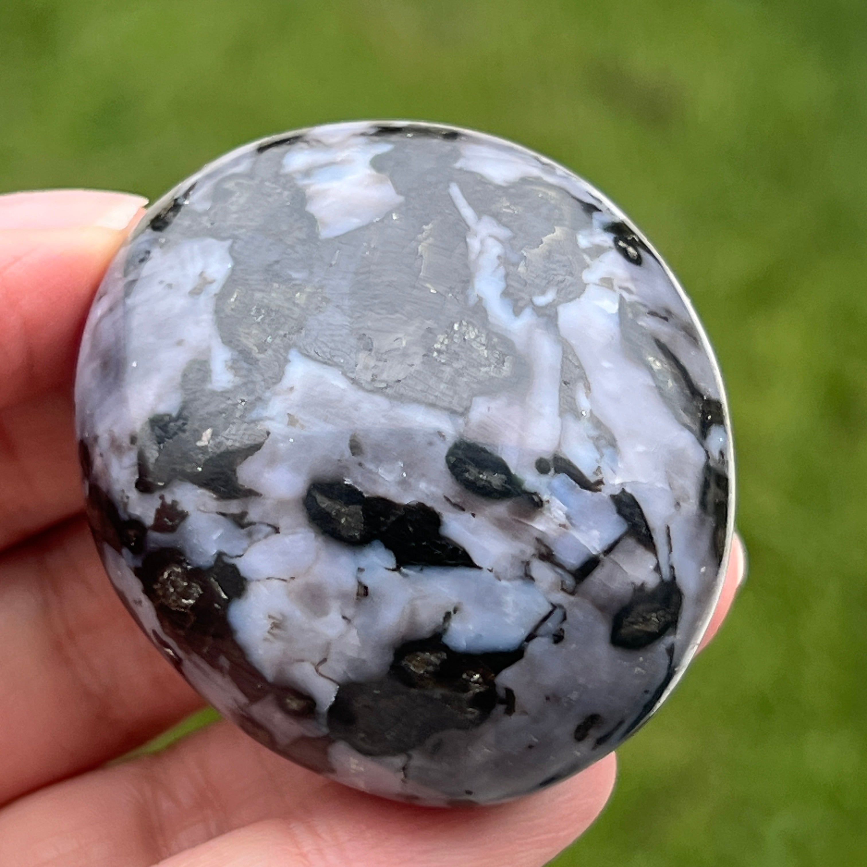 La merlinite est une pierre semi-précieuse rare et fascinante, reconnue pour sa combinaison de couleurs contrastées, noir et blanc, qui lui confère un aspect unique. Elle est considérée comme une variété d'opale dendritique ou un mélange de quartz et d'autres minéraux, et sa structure complexe la rend appréciée tant pour sa beauté que pour ses propriétés énergétiques présumées. La merlinite est connue dans le monde de la cristalothérapie pour ses énergies mystiques et son association avec l'intuition, la clairvoyance et la connaissance spirituelle.